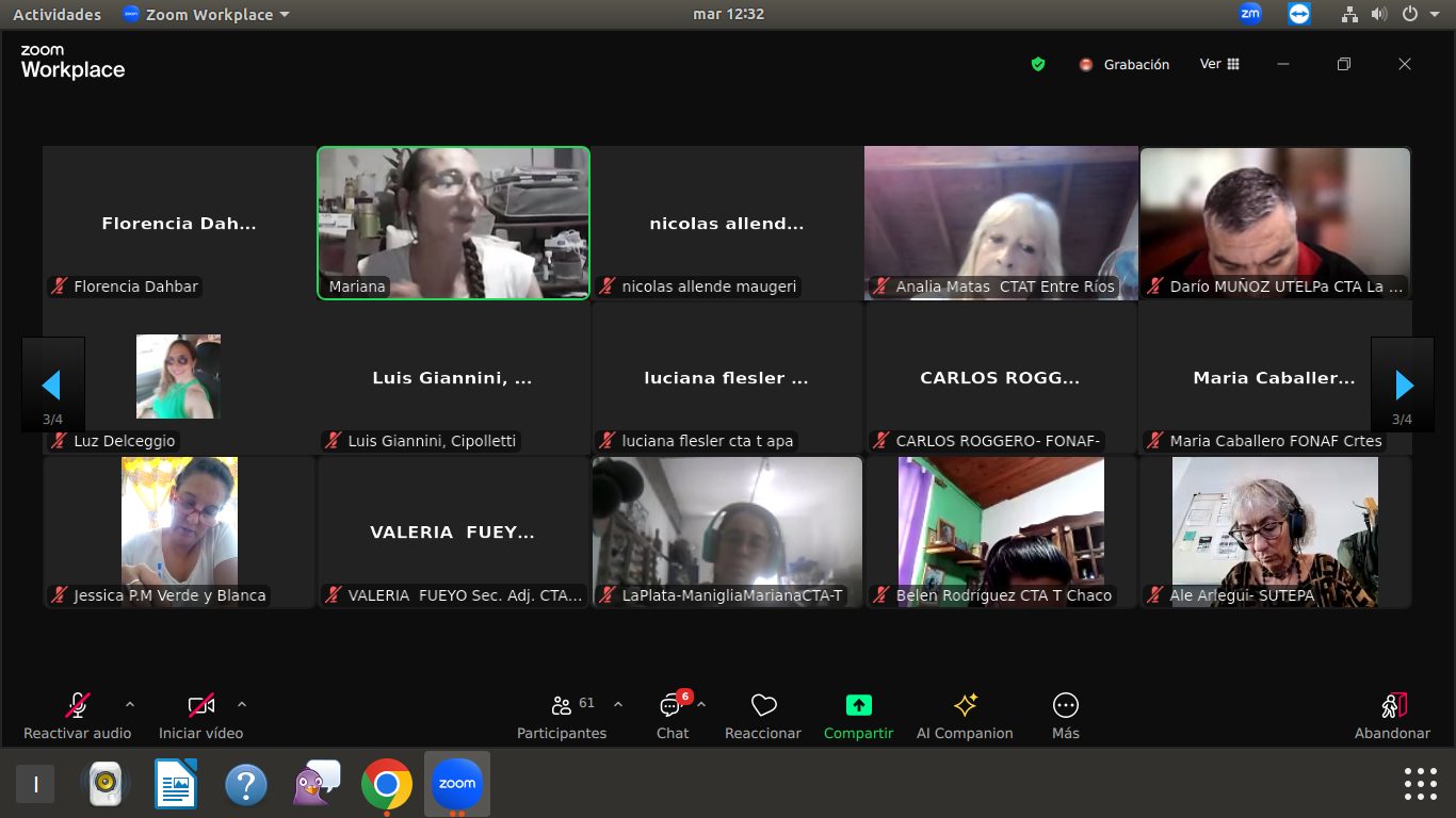 Luego, lxs presentes trabajaron en Comisiones por regionales de la CTA-T de todo el país; culminando el intercambio con una puesta en común para avanzar en la construcción de herramientas colectivas para la lucha por los derechos de lxs Trabajadorxs y por un país con justicia social, laboral y ambiental.