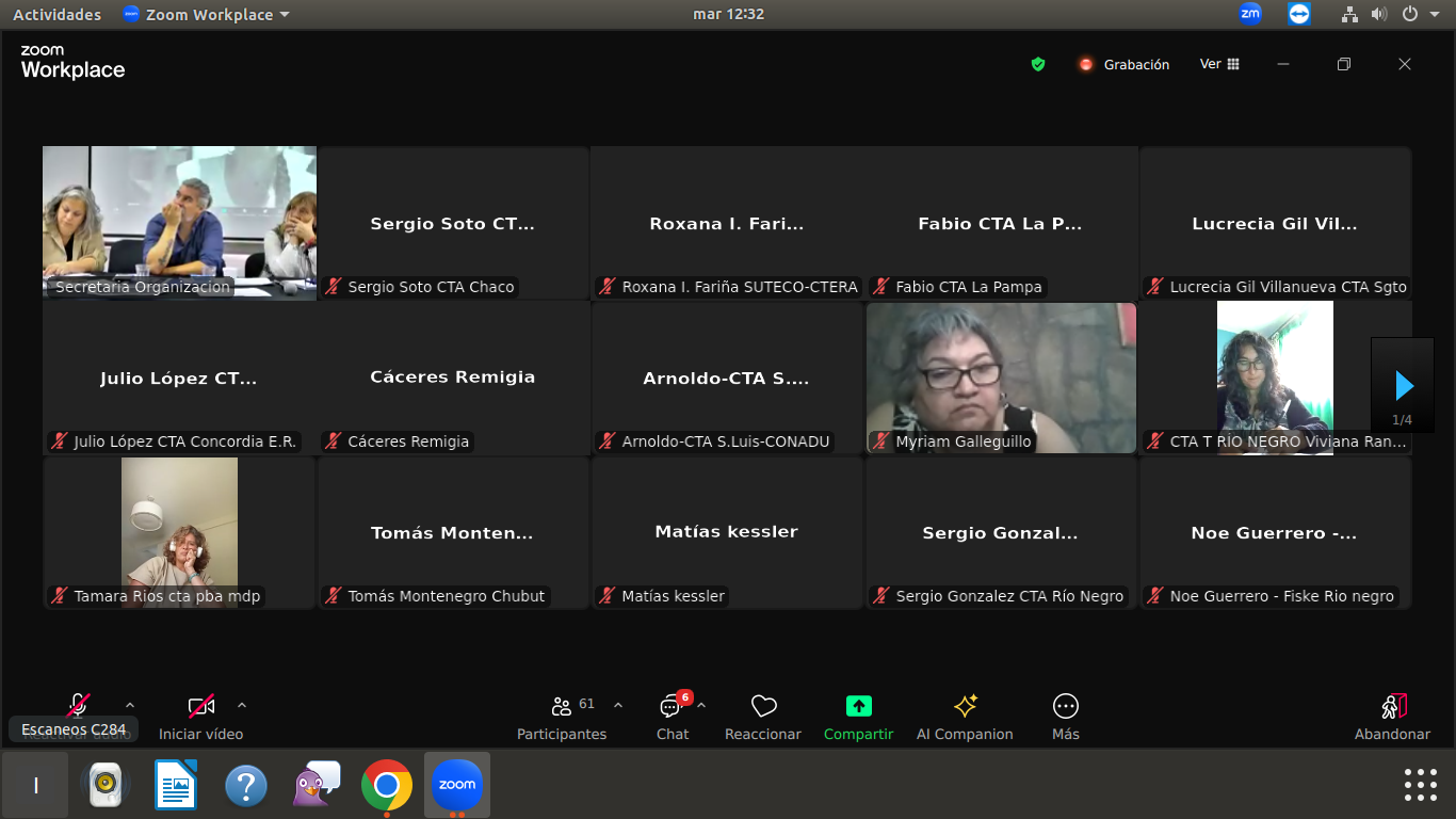 Luego, lxs presentes trabajaron en Comisiones por regionales de la CTA-T de todo el país; culminando el intercambio con una puesta en común para avanzar en la construcción de herramientas colectivas para la lucha por los derechos de lxs Trabajadorxs y por un país con justicia social, laboral y ambiental.