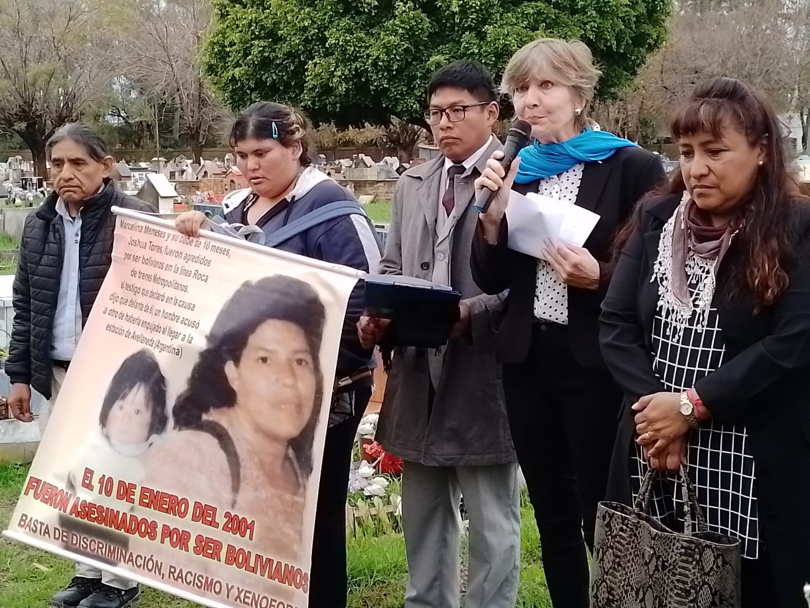 Marcelina Meneses fue una ciudadana boliviana víctima de un ataque racista y xenófobo en Argentina que provocó su muerte y la de su bebé de 10 meses, Alejandro Joshua Torres, al ser arrojadxs de un tren en marcha en el 2001.