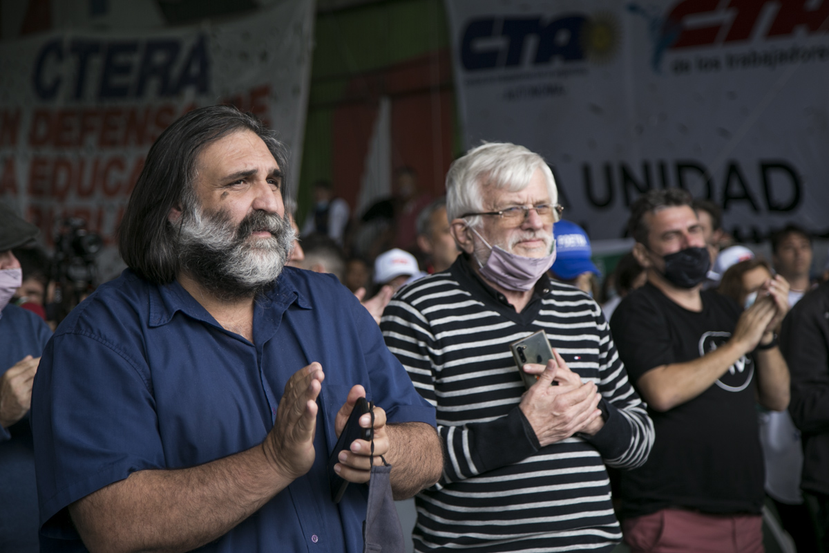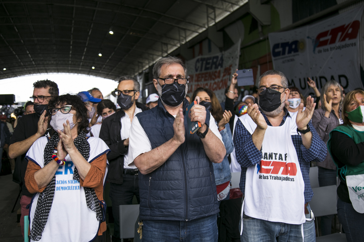 Tras unas palabras en homenaje a Agustín Tosco por parte de Pablo Carro, Secretario General de la CTA de Córdoba y Diputado nacional; y de Leandro Pozzi, de la CTA de Entre Ríos; hicieron uso de la palabra Daniel Catalano, Secretario General Adjunto de la CTA y Secretario General de ATE Capital; Edgardo Llano, Secretario General Adjunto de la CTA y Secretario General de la Asociación del Personal Aeronáutico; Roberto Baradel, Secretario General del SUTEBA y de la CTA de la provincia de Buenos Aires y Secretario de Relaciones Internacionales de la CTA de lxs Trabajadorxs; Sonia Alesso, Secretaria General de la CTERA y de AMSAFE; Eduardo López, Secretario General de la CTA de CABA y Adjunto de UTE; y Claudio Marín, Secretario Gremial de la CTA y Adjunto de FOETRA Buenos Aires.