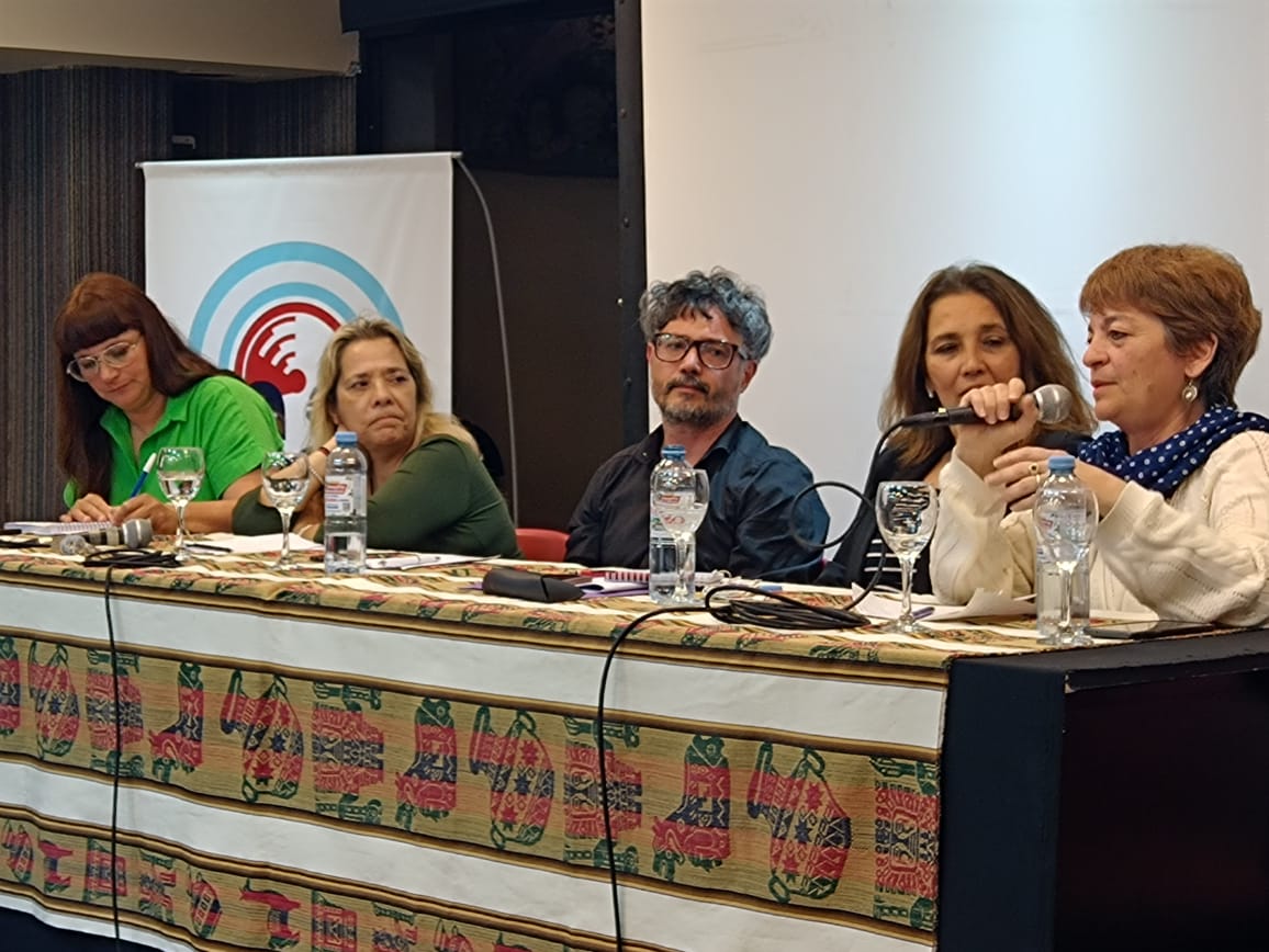 María Laura Torre, Secretaria General Adjunta, fue una de las representantes de nuestra Organización Sindical en la realización de este panel y expresó: "Reinvindicamos este espacio que nació como una necesidad en un momento difícil, por 2016, frente a los ataques constantes a las Organizaciones Sindicales y lxs Trabajadorxs. Recordamos que la historia no empieza cuando unx llega, se escribe todo el tiempo. Lo que vivimos esos años también lo asociamos a los ataques a los Sindicatos en los ‘90, donde la construcción de sentido común fue muy fuerte y estuvo ligada al disciplinamiento social, incluso en las Escuelas, donde reciclaron cuestiones de la dictadura. Hay muchas discusiones internas que dar desde la Educación, donde la unidad es fundamental y debemos mantenerla en alto. Desde esa construcción, sabiendo el aporte de cada organización, debemos encarar los próximos desafíos para seguir adelante y construir nuestro futuro".