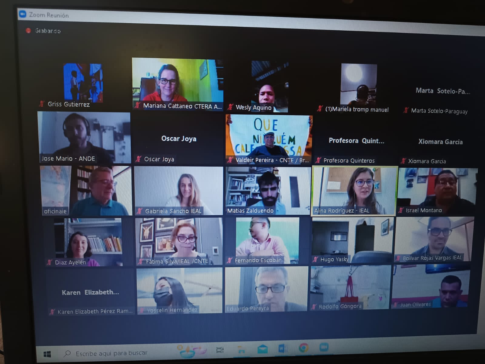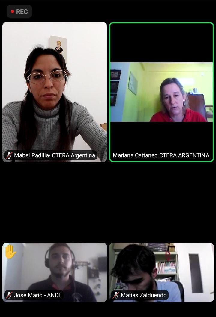 El lunes 24 de octubre, se realizó un Encuentro de Docentes Jóvenes en el marco de la IEAL. En el mismo, estuvieron presentes por nuestra Organización Sindical: Mariana Cattaneo, Secretaria de Formación Político Sindical, y Docentes Jóvenes con responsabilidad de conducción en diferentes Consejos Ejecutivos de Seccional con representaciones de Latinoamérica.