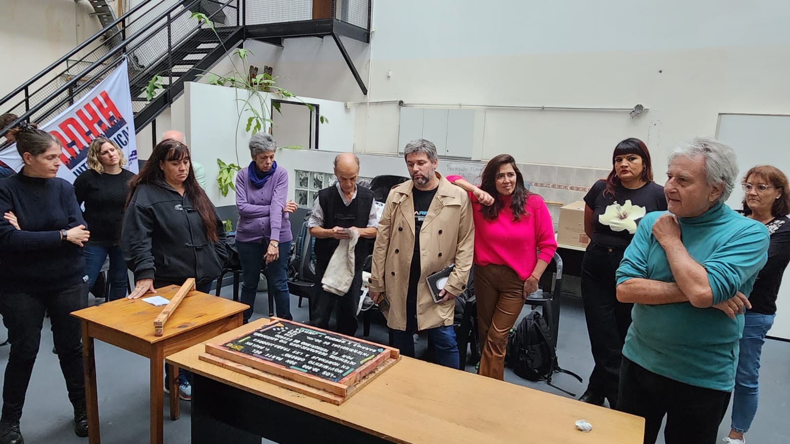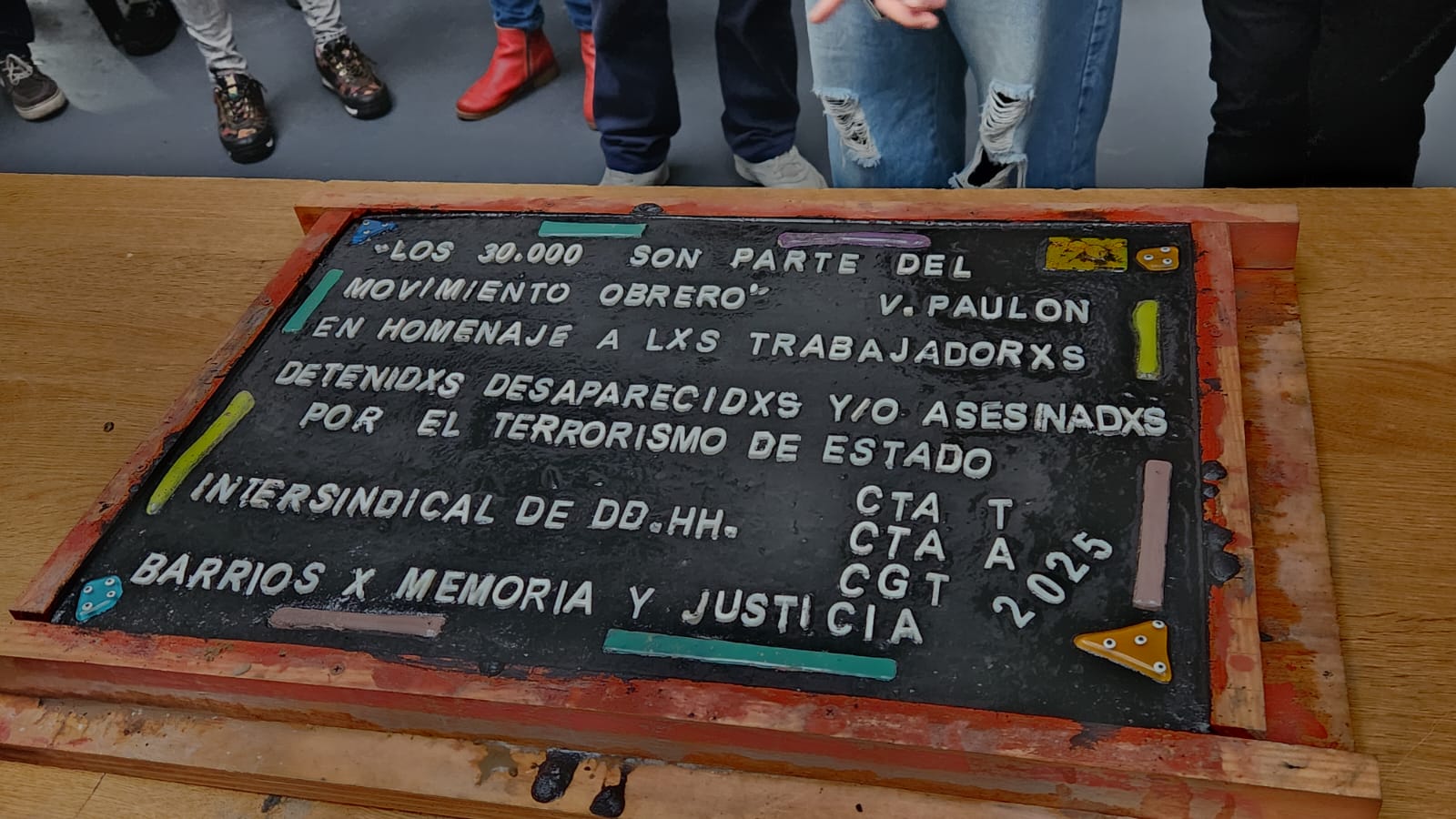 En esta emotiva jornada, que contó con la presencia del Secretario de Derechos Humanos de la CTA Ciudad, Carlos Monestes, de la legisladora porteña de Unión por la Patria, Victoria Montenegro, y de la Secretaria General de lxs Trabajadorxs Sexuales de AMMAR, Georgina Orellano, entre otrxs referentes sindicales; se construyó una baldosa, junto a la organización Barrios por Memoria y Justicia, que será colocada en el Ministerio de Trabajo de la Nación, y que recupera aquella frase de Victorio: