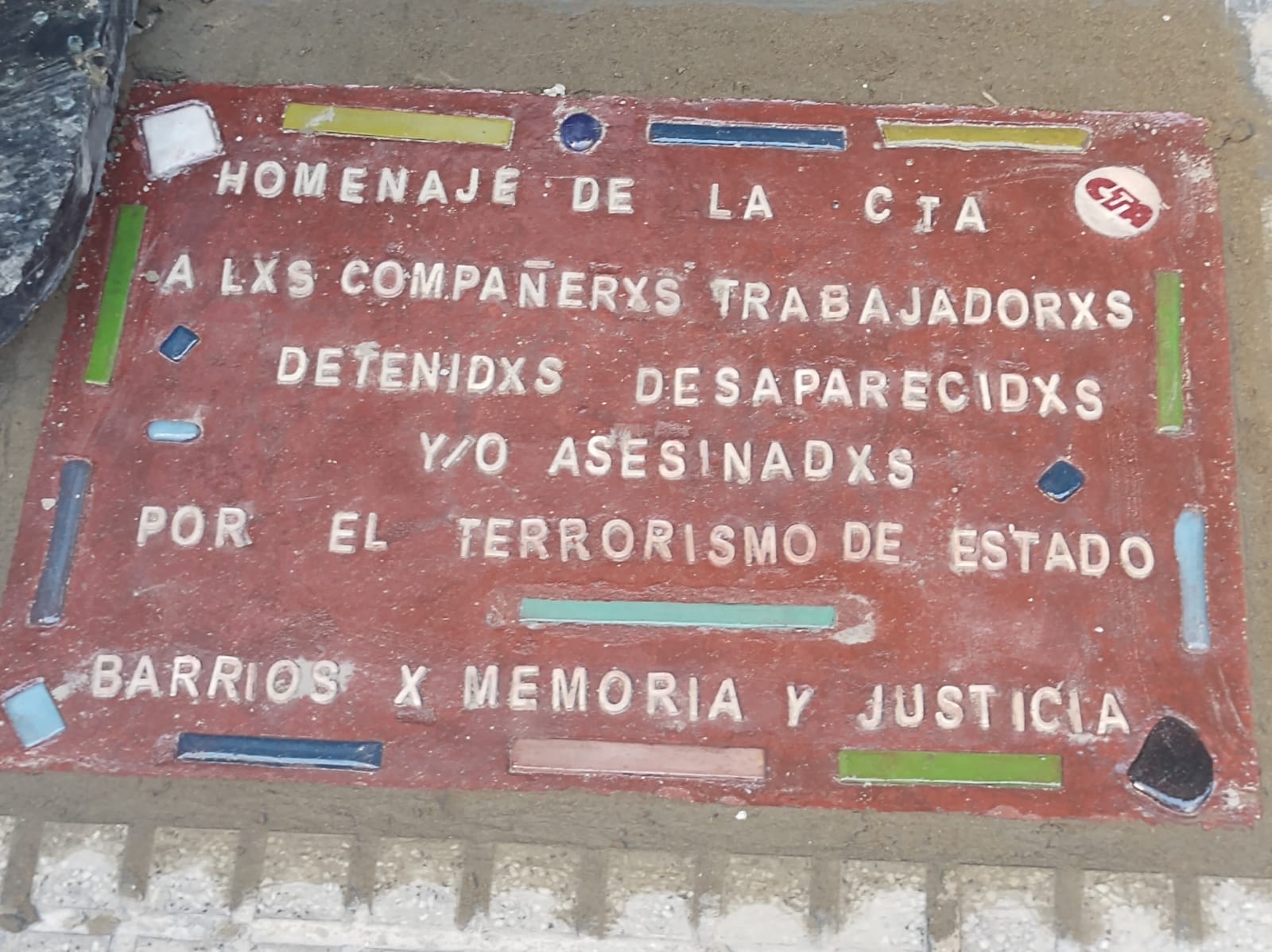 La jornada se realizó junto al colectivo Barrios x Memoria y Justicia, organización que construye estas placas para ser emplazadas en la vía pública en los lugares donde vivieron, estudiaron, trabajaron, militaron o donde fueron secuestradas o asesinadas las víctimas del terrorismo de Estado.