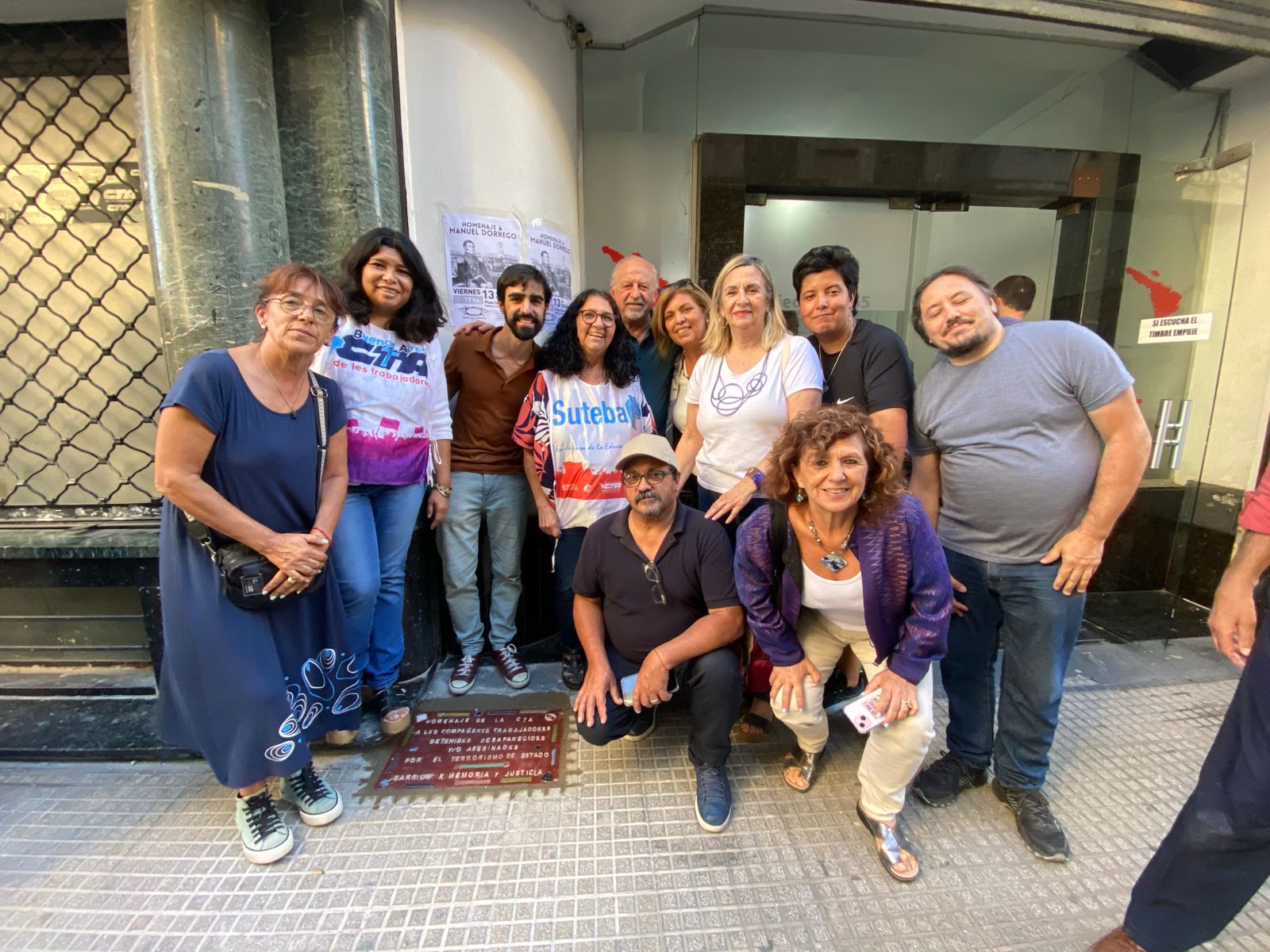 El lunes 16 de diciembre se realizó frente a la CTA-T Nacional el acto de colocación de una baldosa en homenaje a lxs Trabajadorxs detenidxs, desaparecidxs y asesinadxs por la última dictadura cívico militar, para recordar y traer al presente sus historias de vida, sus luchas y sueños de un país soberano, libre y con justicia social.