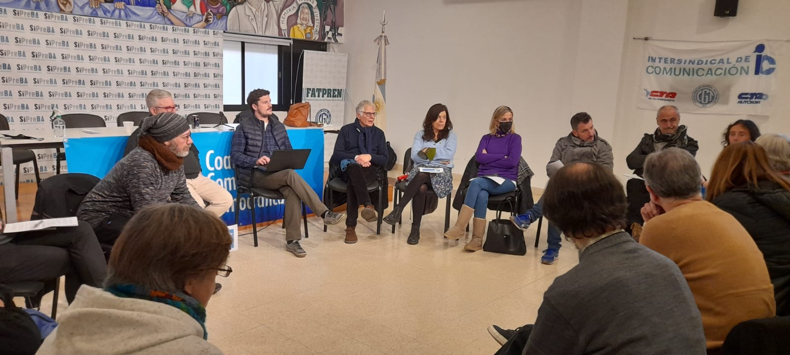 En un primer momento, se conformó una Mesa de la que participaron: Luis Lázzaro, Periodista y Profesor de la UBA; Larisa Kejval, Directora de la Carrera de Ciencias de la Comunicación de la UBA; Irene Haimovichi de SIPREBA; Marcelo Valente, Periodista; y Alejo Demichelis por la CTERA. Haimovichi leyó un documento puesto a debate desde la Coalición, con el objetivo de enriquecer y discutir las líneas de acción conjuntas con todxs lxs presentes.