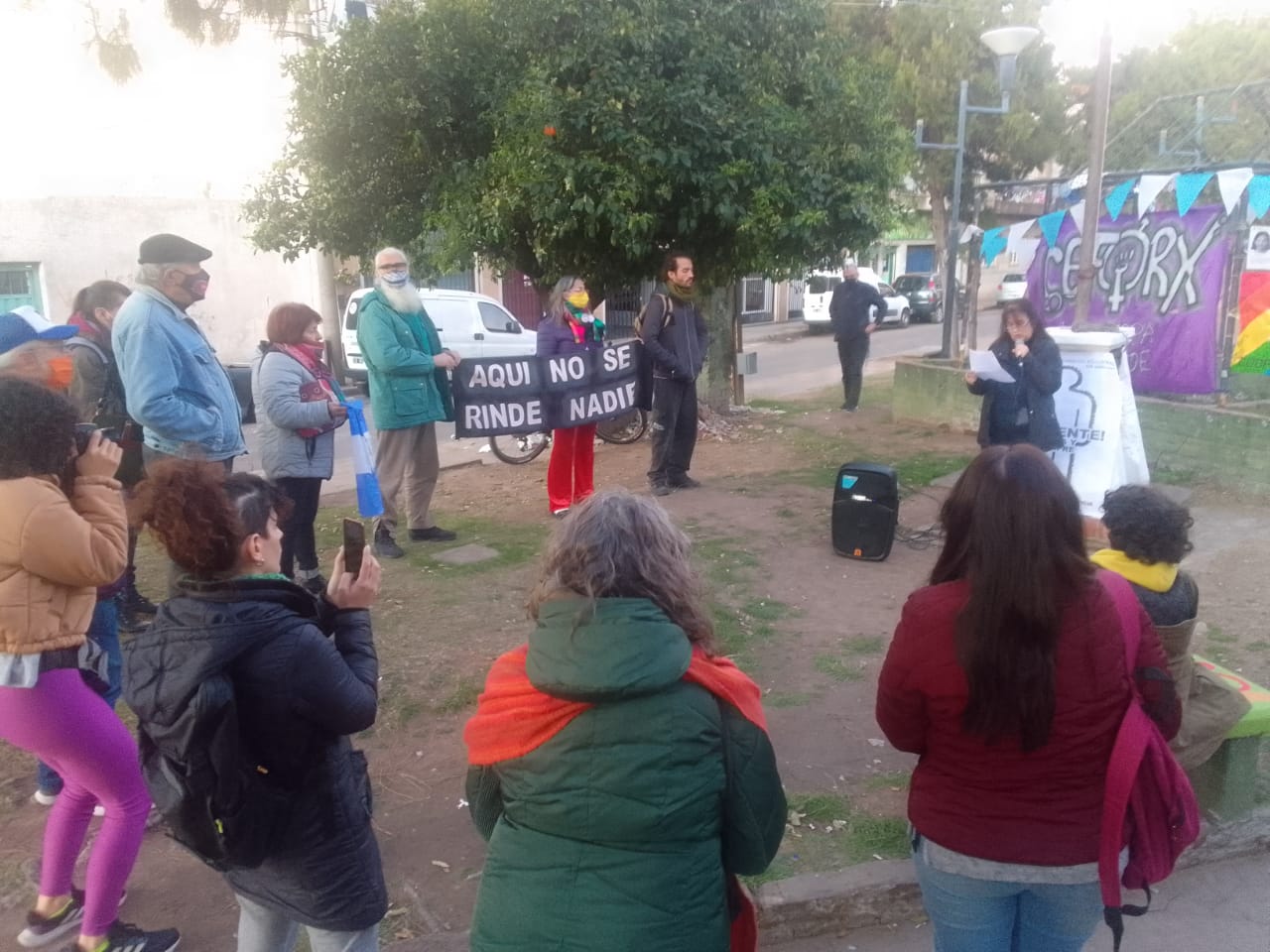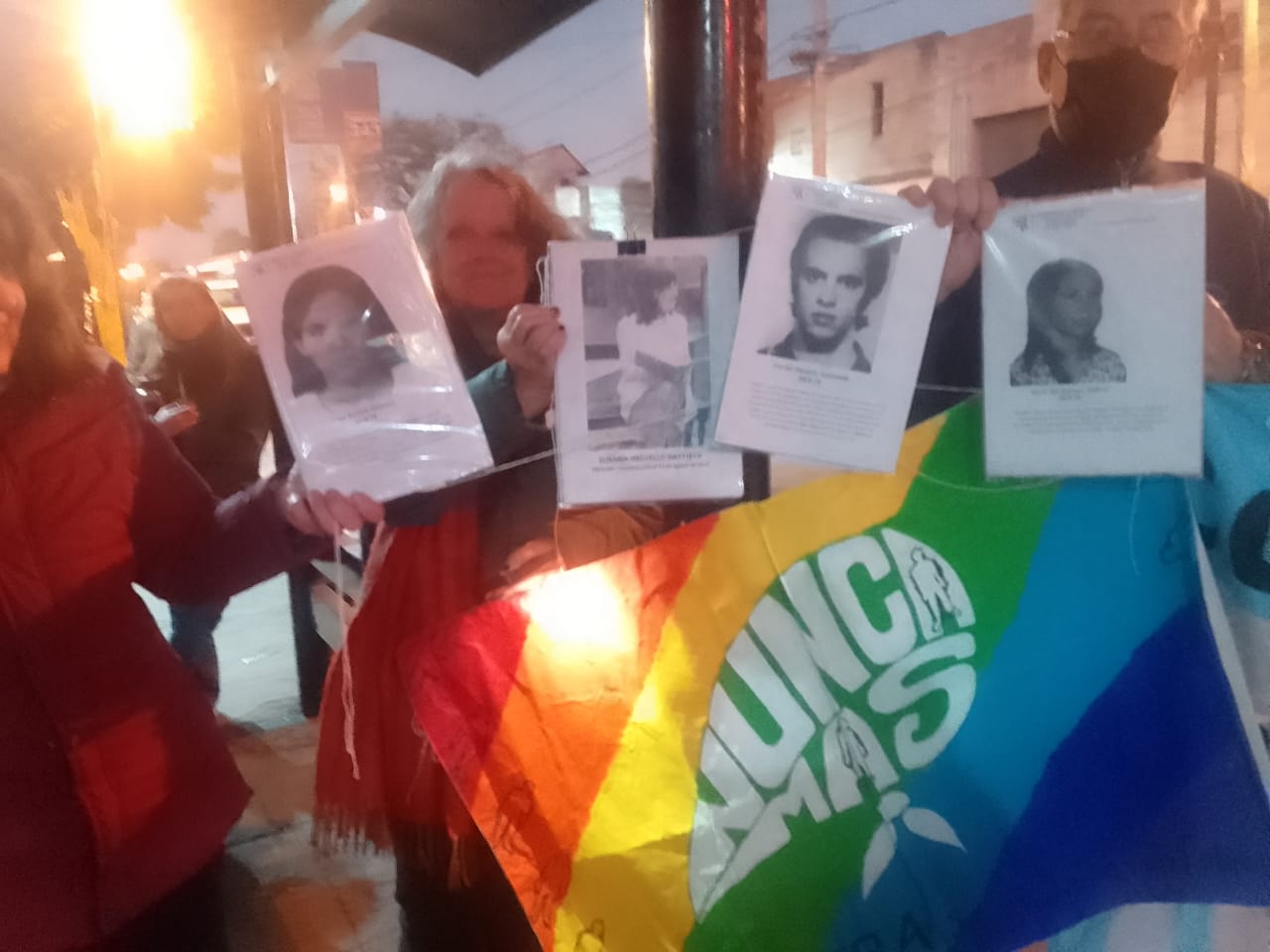 A continuación, se marchó hasta la esquina donde sucedieron los secuestros de lxs compañerxs, para recordarlos en la baldosa en su homenaje, la cual fue colocada antes de la pandemia.