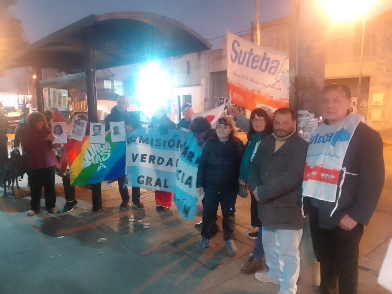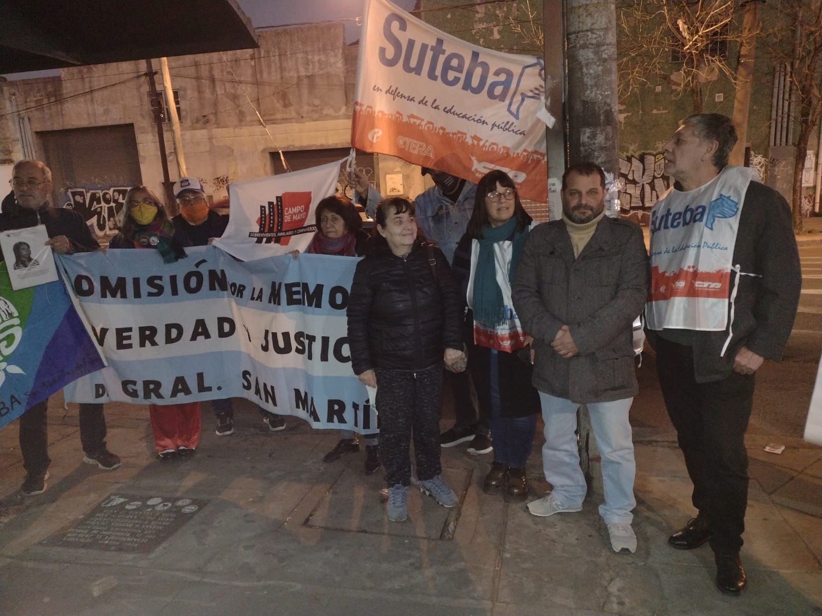 El SUTEBA se hizo presente a través de la Subsecretaria de DDHH, Analía Meaurio; la Secretaria de DDHH de San Martín, Mabel Hicks; el Secretario General de Tres de Febrero, Juan Manuel Correa; la Comisión Ejecutiva Seccional de San Martín y Tres de Febrero; y el Secretario General del SUTEBA José C. Paz, Daniel Martínez.