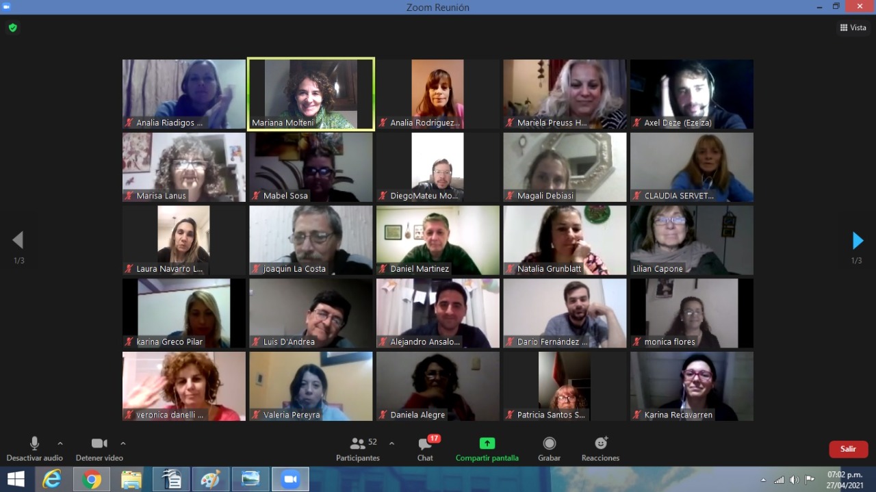 El miércoles 28 de abril se llevó adelante la primera reunión anual de cursantes y tutorxs de la Especialización en Gestión de la Salud y la Seguridad en el Trabajo que dicta el Instituto Provincial para la Administración Pública (IPAP), encuentro que contó con la presencia de más de 50 compañerxs, Secretarixs Generales y la Conducción Provincial de la Secretaría de Salud del SUTEBA.