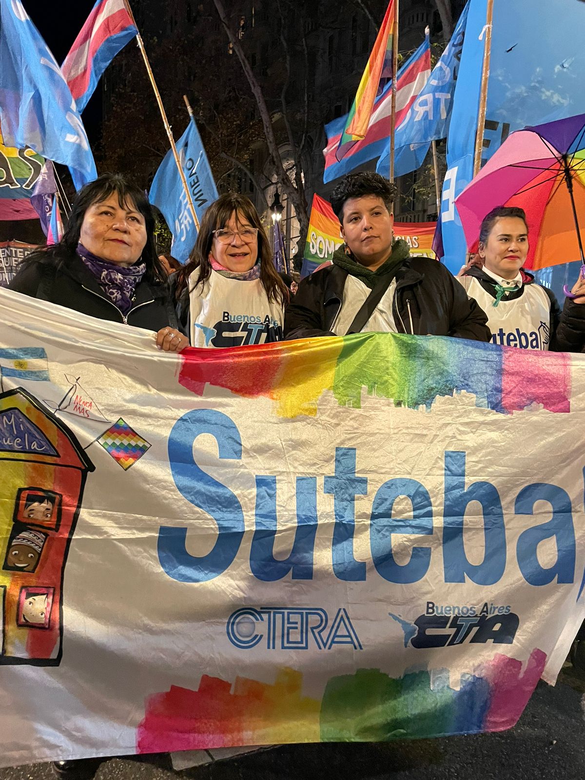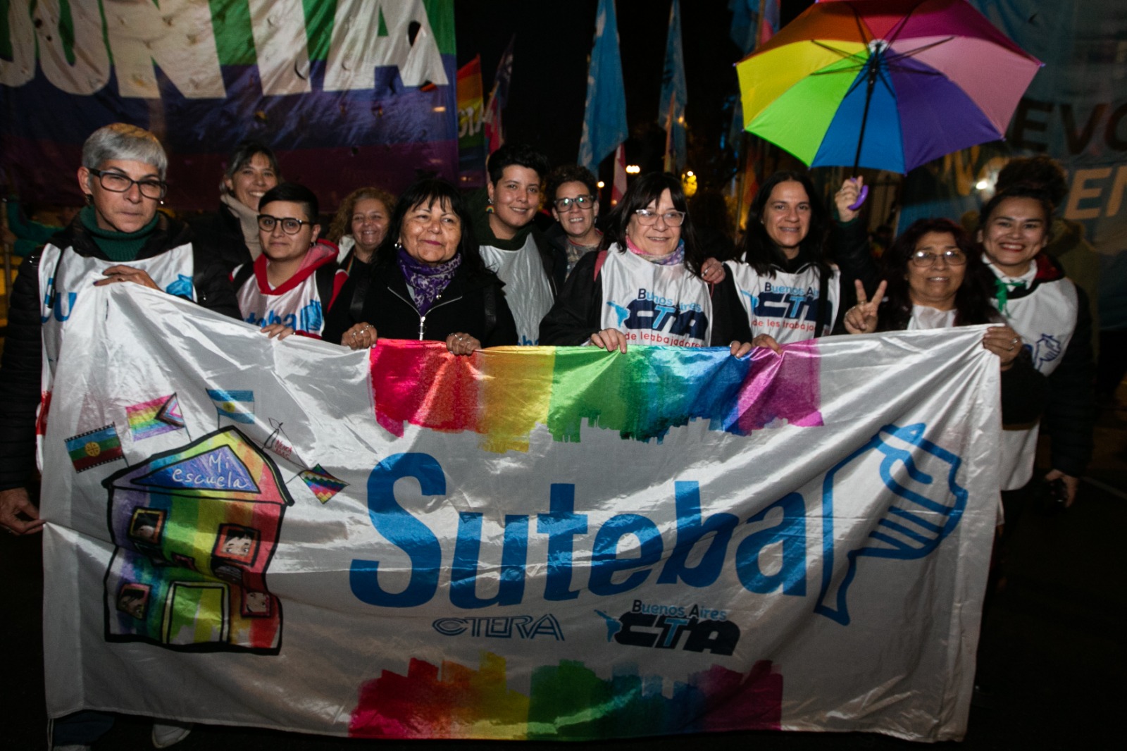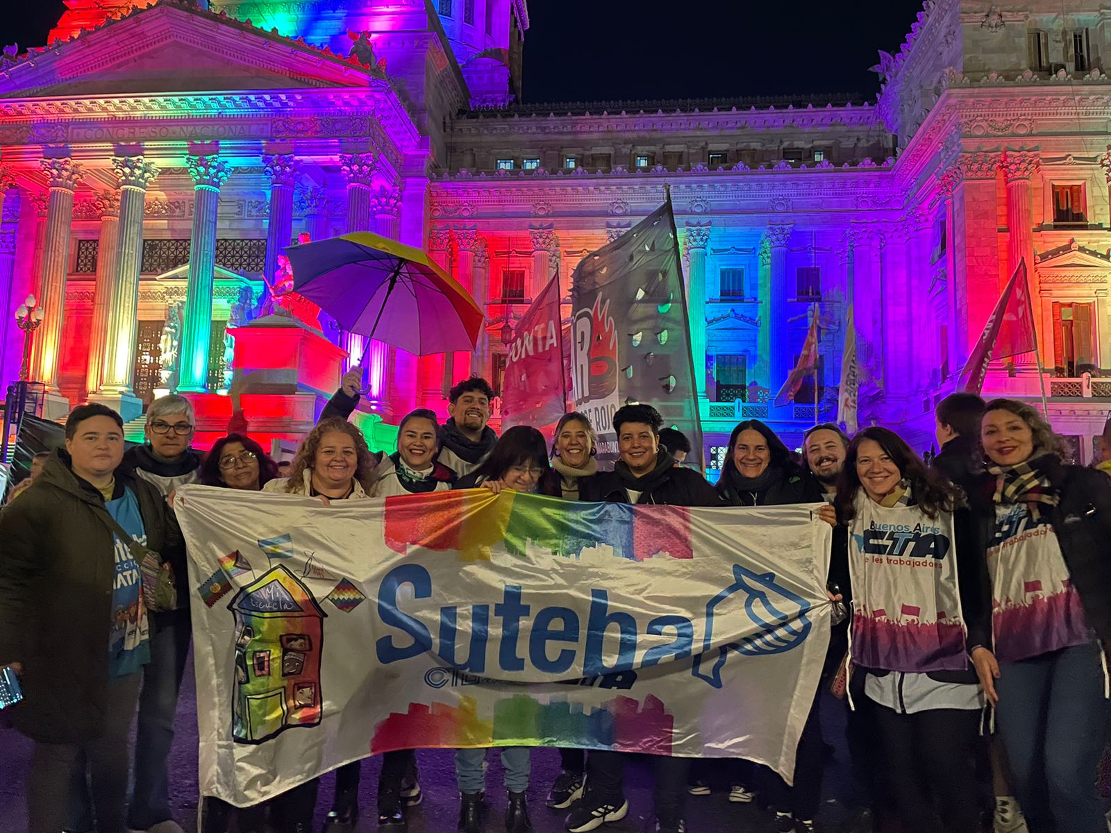 En el Día Internacional del Orgullo LGBTTTIQNB+, desde el SUTEBA marchamos junto a decenas de miles desde Plaza de Mayo al Congreso en defensa del derecho a una vida digna sin violencia ni persecución.