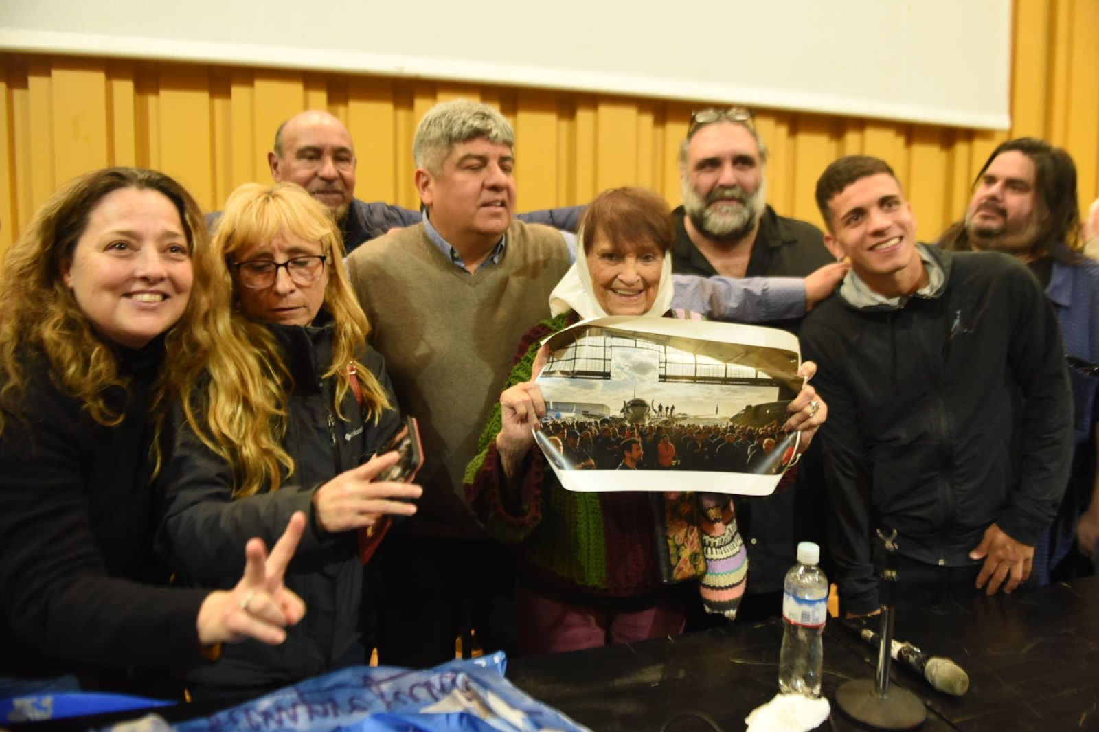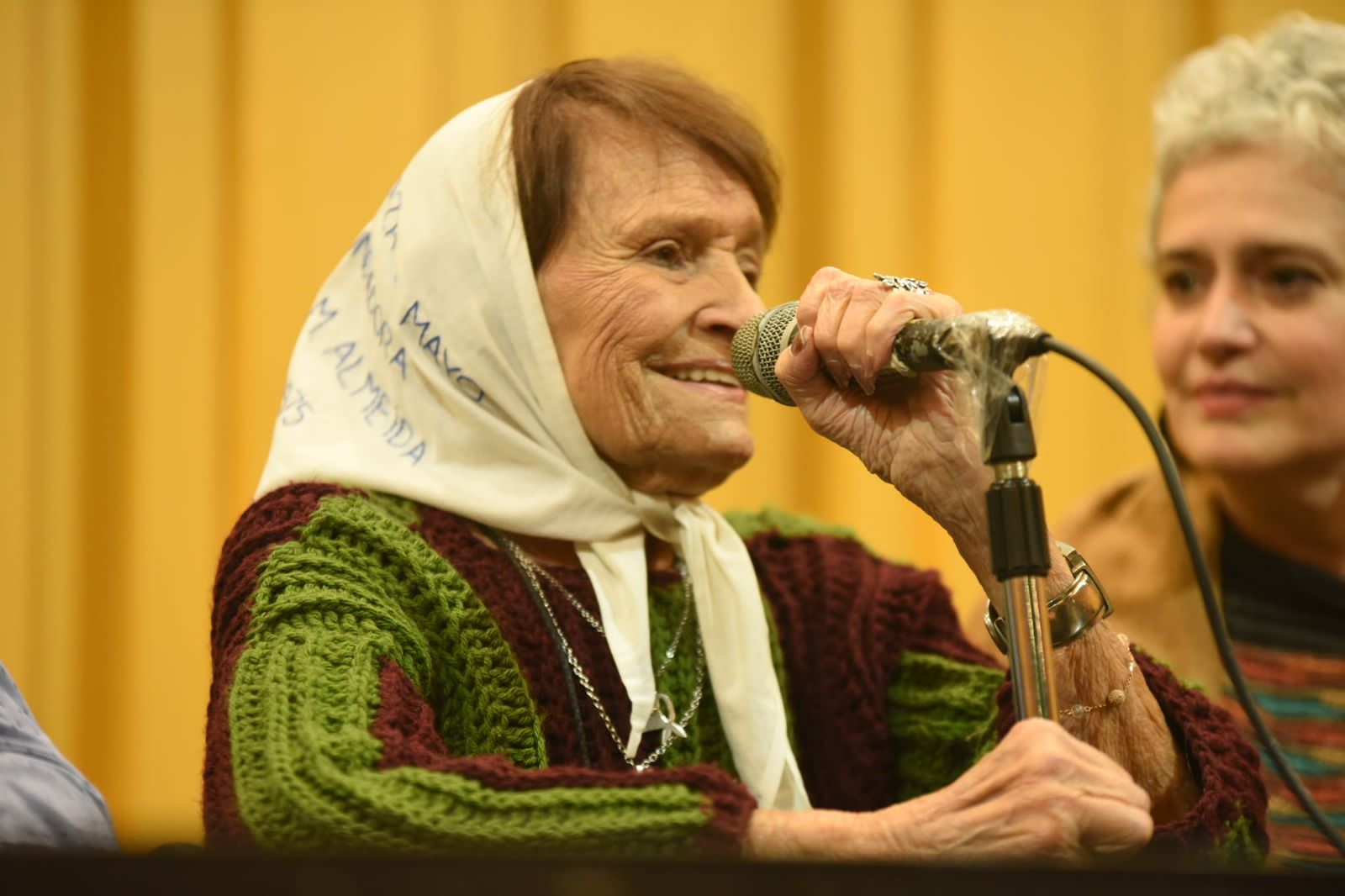 Para cerrar el encuentro, Taty Almeida -Madre de Plaza de Mayo Línea Fundadora - señaló también la importancia de la unidad de los Organismos de DDHH junto a las centrales obreras, para seguir luchando juntxs en la calle, recordando a lxs 30.000, como quedó demostrado en la masiva marcha por el aniversario del golpe militar de 1976, y culminó exclamando: "¡No nos han vencido!"