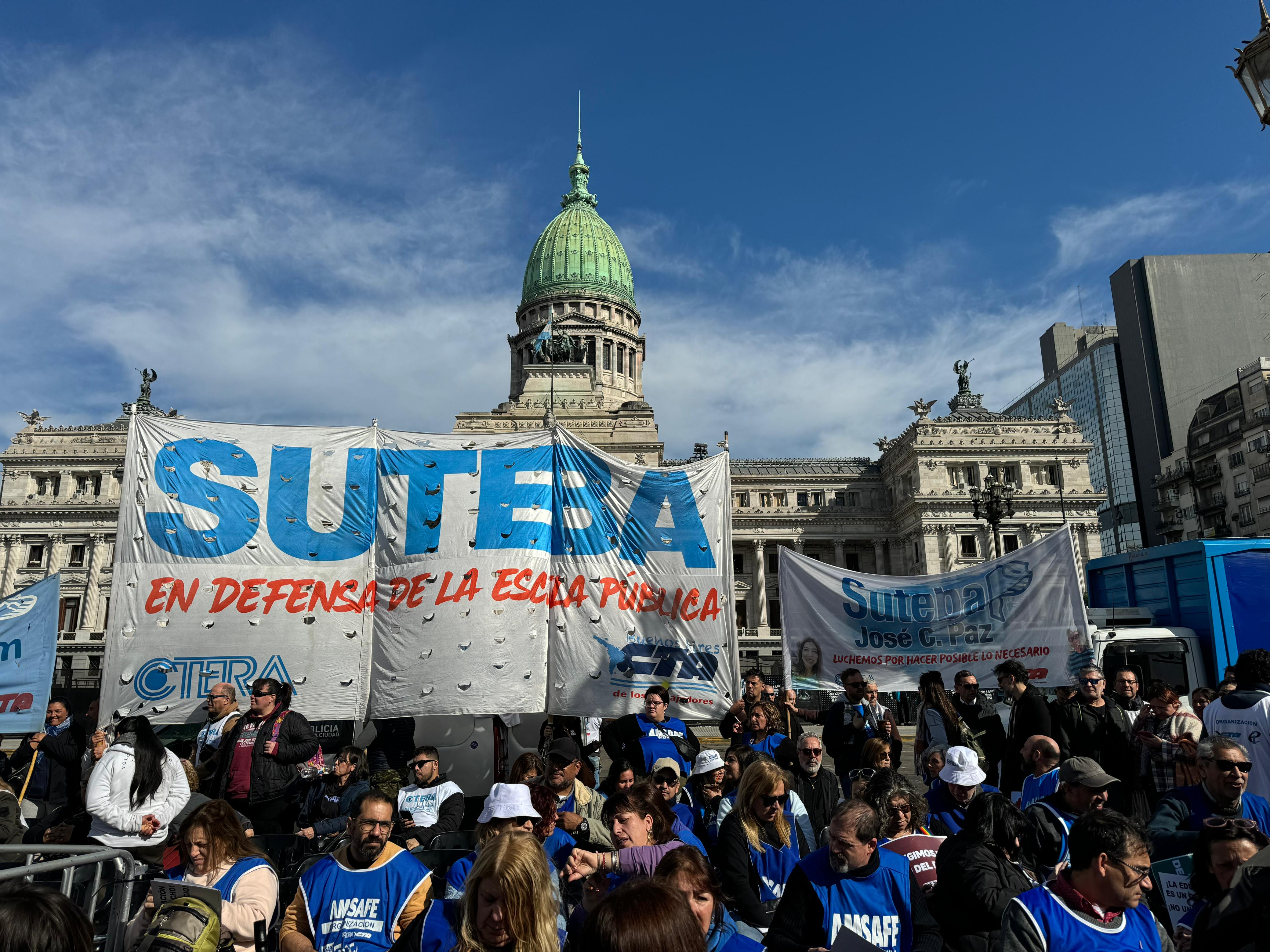 Este miércoles 14 de agosto, en el marco de la convocatoria de la CTERA, desde el SUTEBA nos concentramos frente al Congreso de la Nación para llevar adelante una Jornada Nacional de Lucha.
