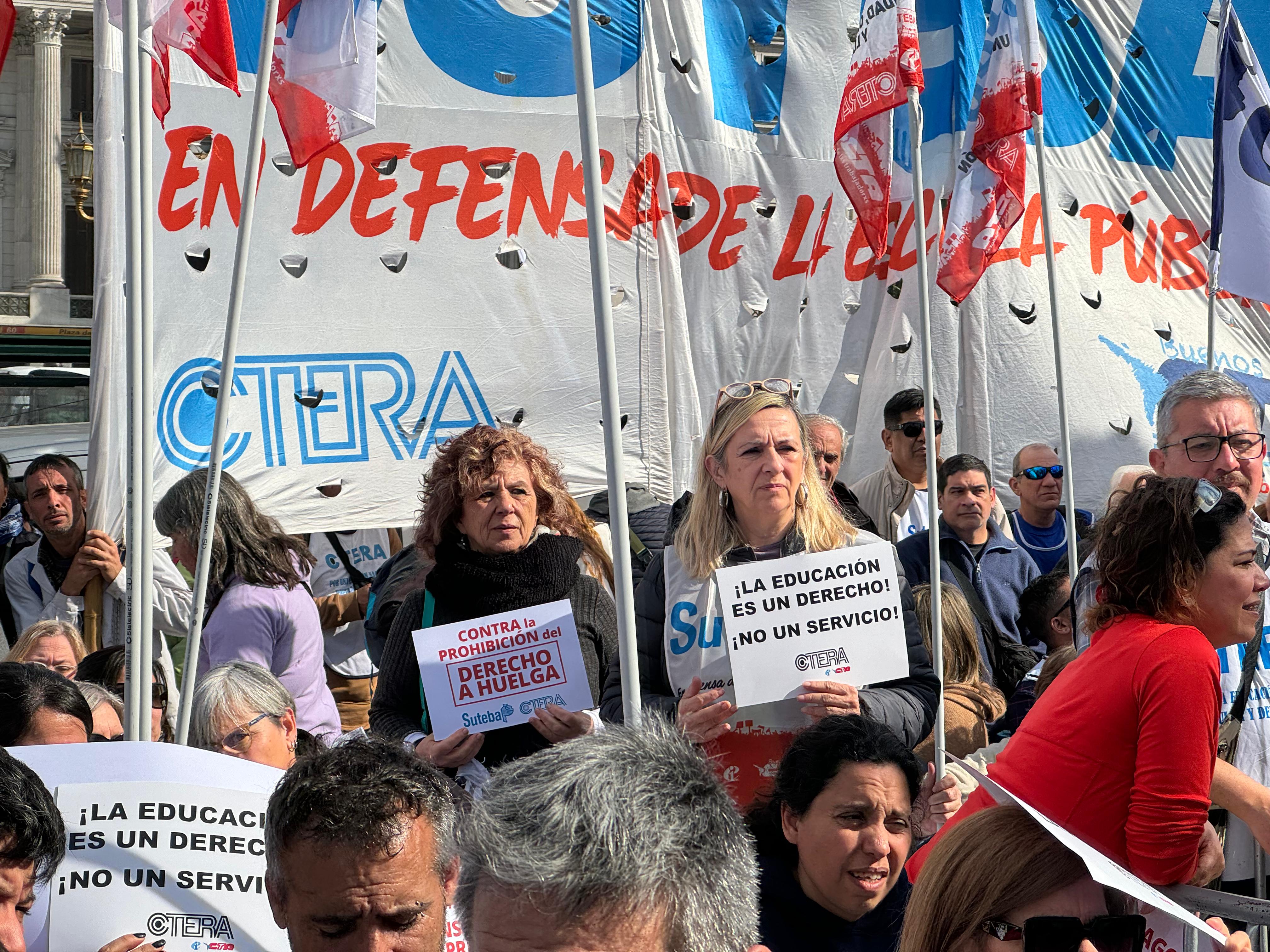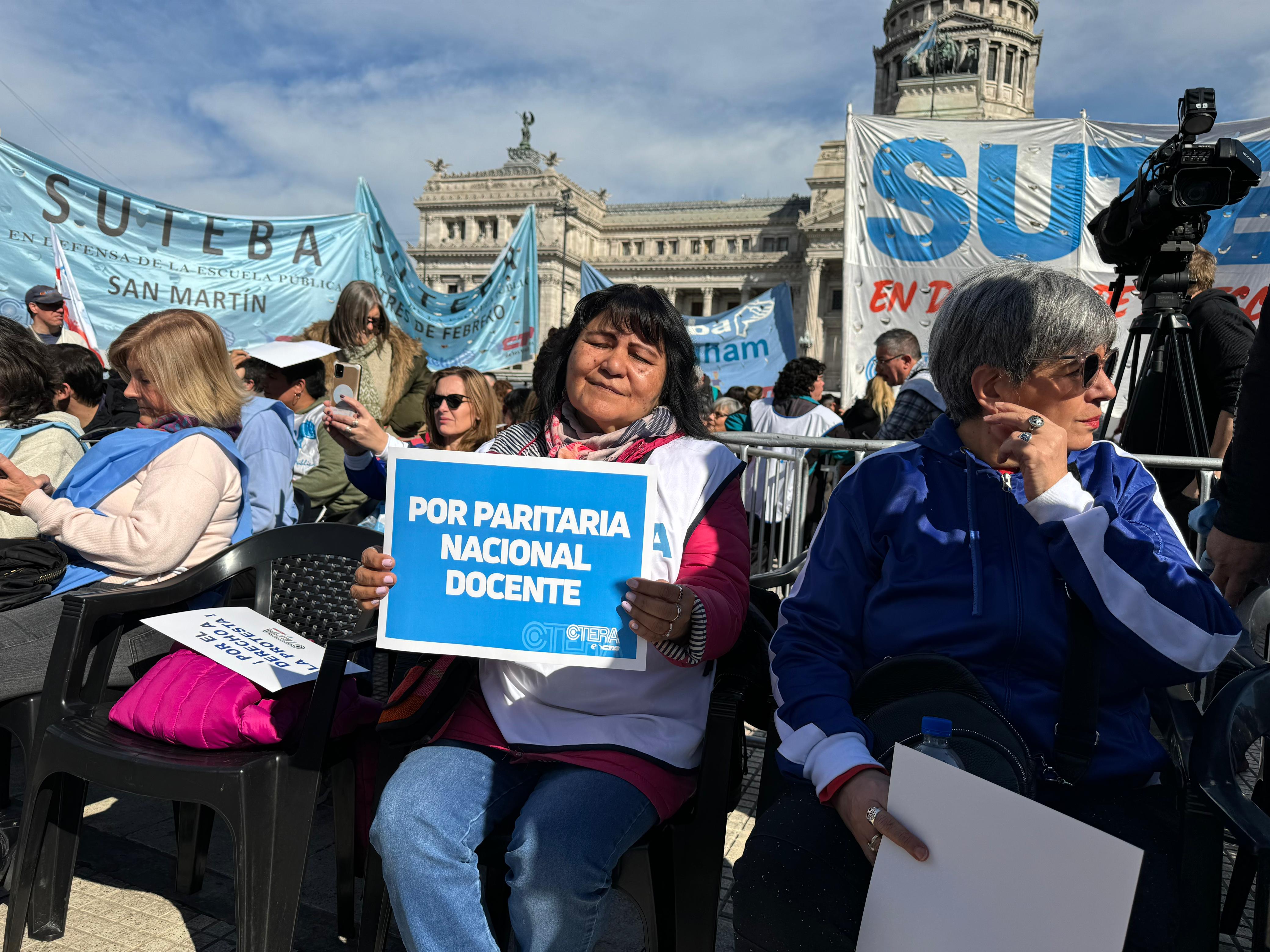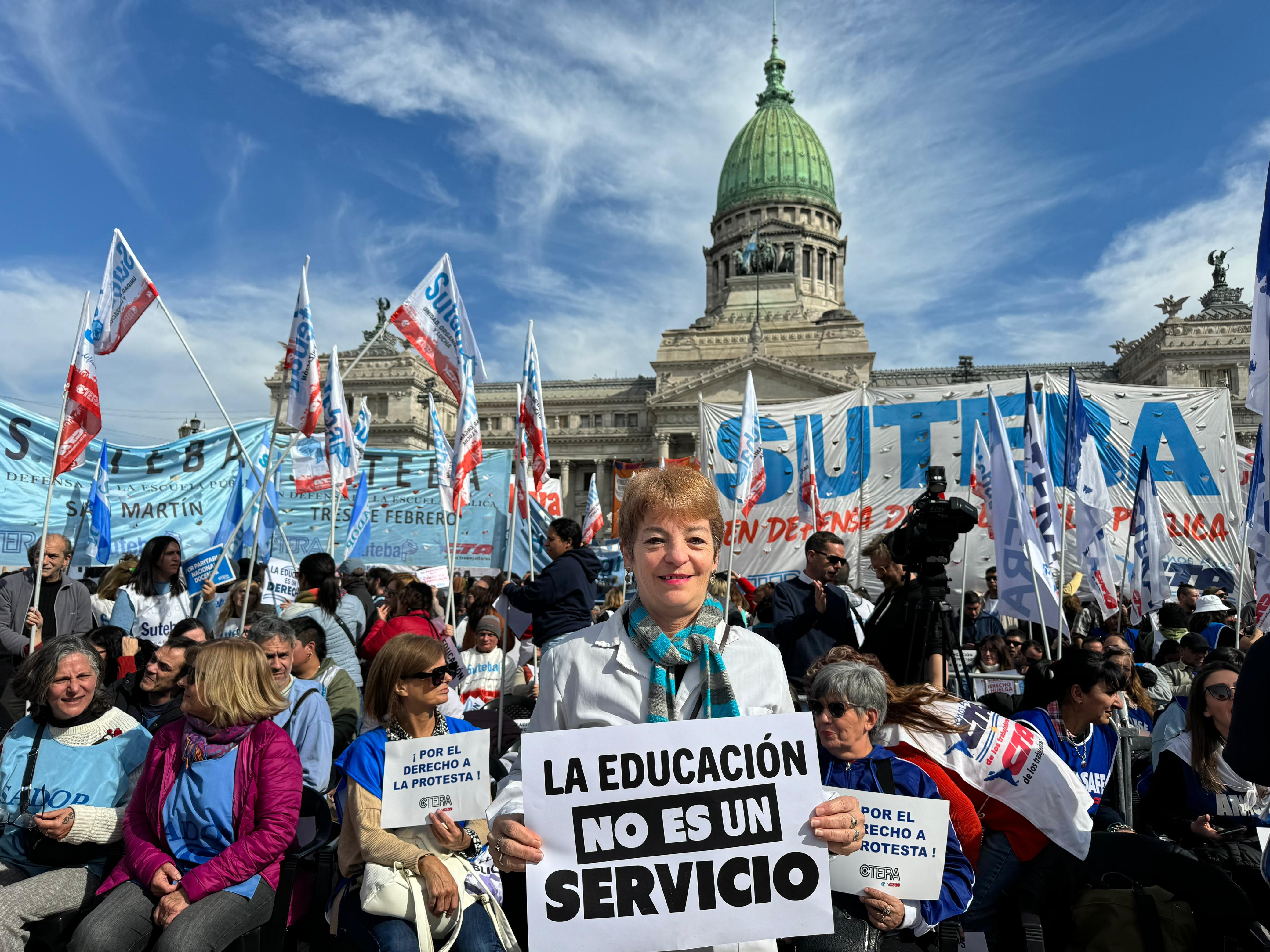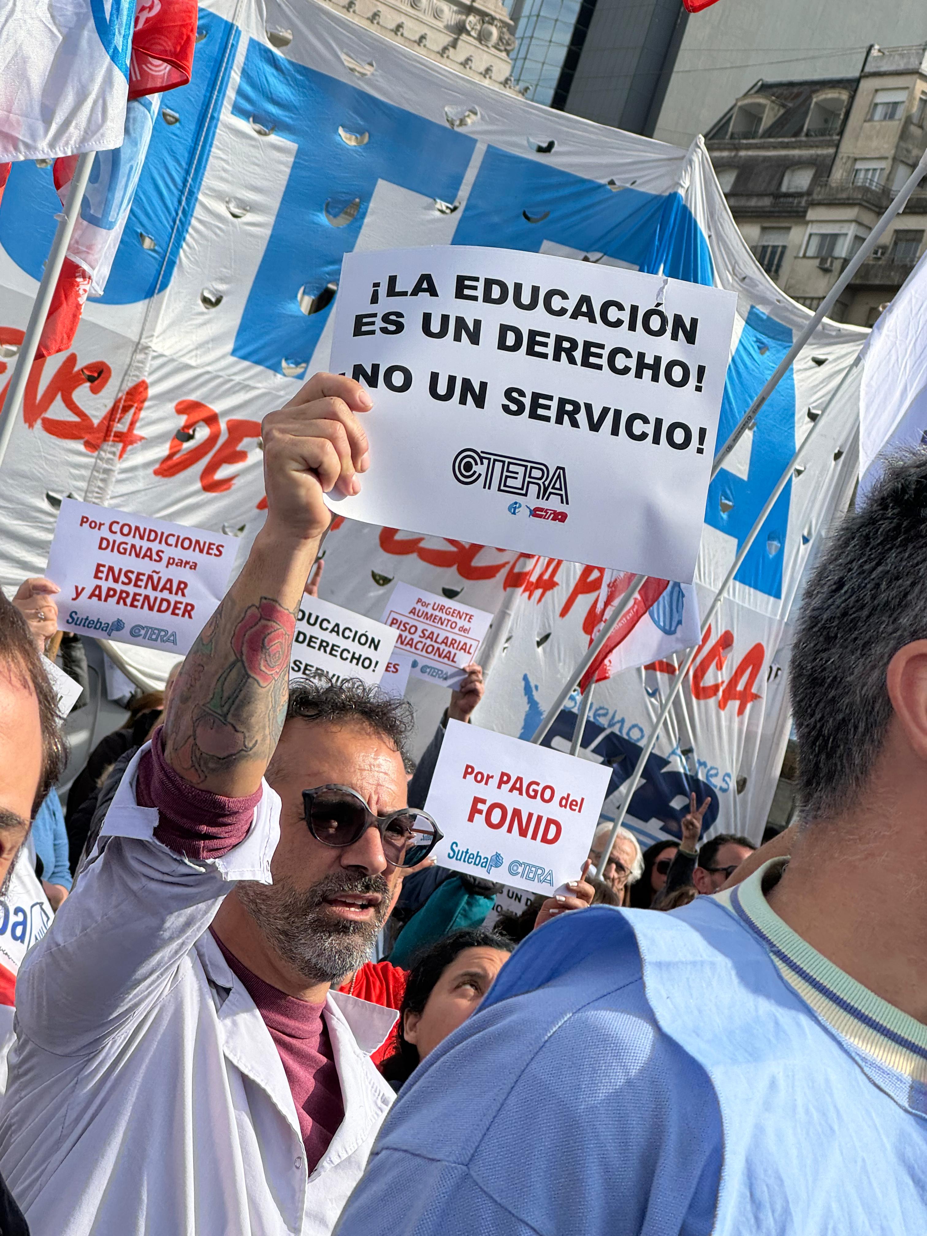 Sonia Alesso, Secretaria General de la CTERA, manifestó en el escenario: "El proyecto político del hambre, la miseria y la entrega del patrimonio nacional quiere convertir a la Educación en una mercancía. Para la CTERA, para los Sindicatos docentes de todo el país, para los gremios docentes que estamos en la Paritaria, para lxs universitarixs, la Educación, desde la más temprana infancia hasta la Universidad, es un derecho de todo el Pueblo argentino. Esta es una pelea de todas las Comunidades, de todo el país. Y es una pelea de unidad, de organización y de la construcción de la gran Marcha Federal Educativa".