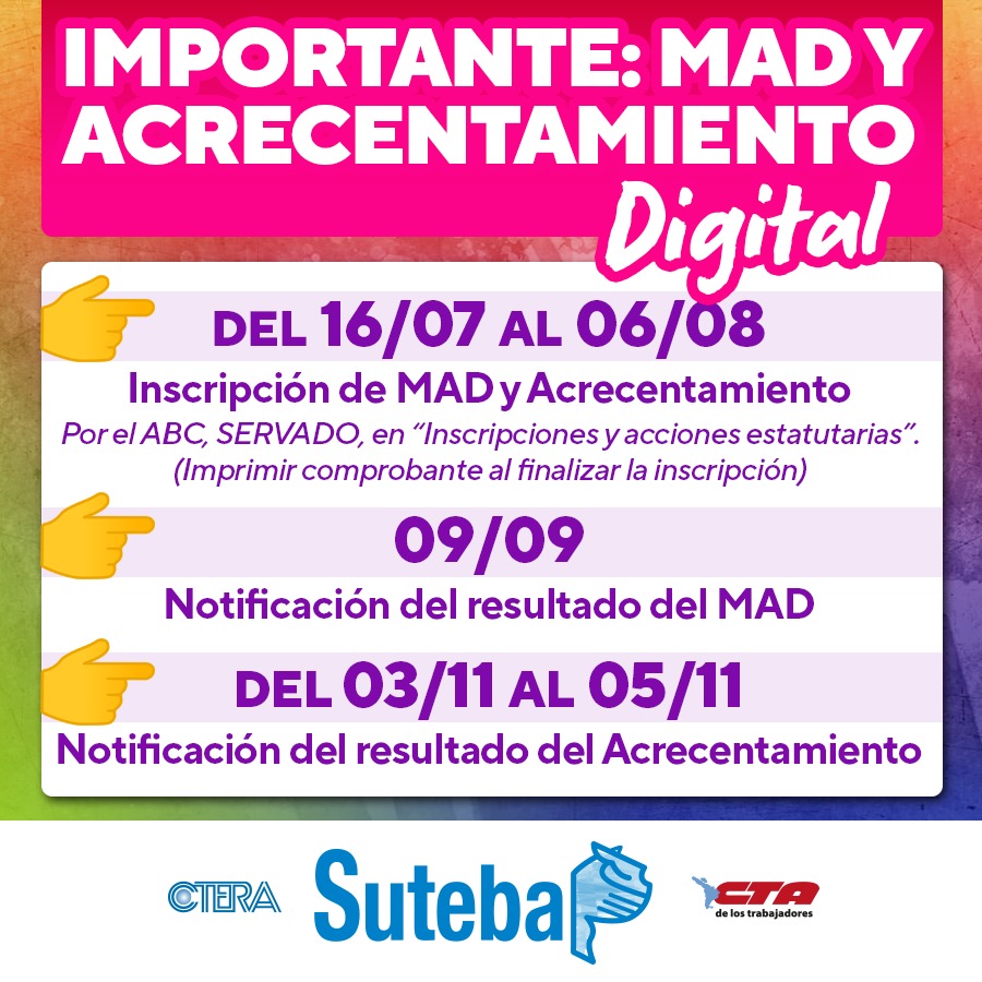 A la espera de que se oficialicen las disposiciones resueltas, desde nuestra Organización Sindical estaremos a disposición de todxs lxs afiliadxs ante cualquier duda que se presente al completar las planillas. Además, cabe destacar que tendremos representación de veedorxs sindicales en las Comisiones Distritales del tratamiento de MAD, tal como viene sucediendo desde hace varios años.