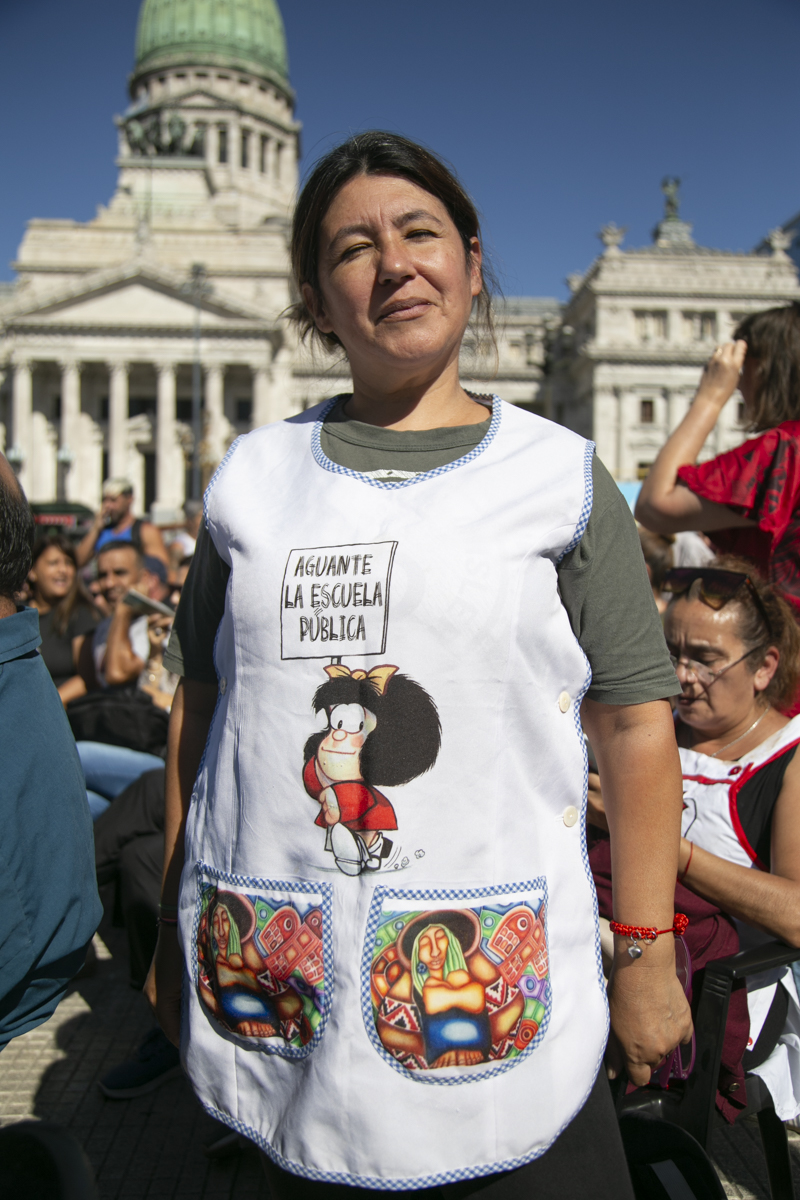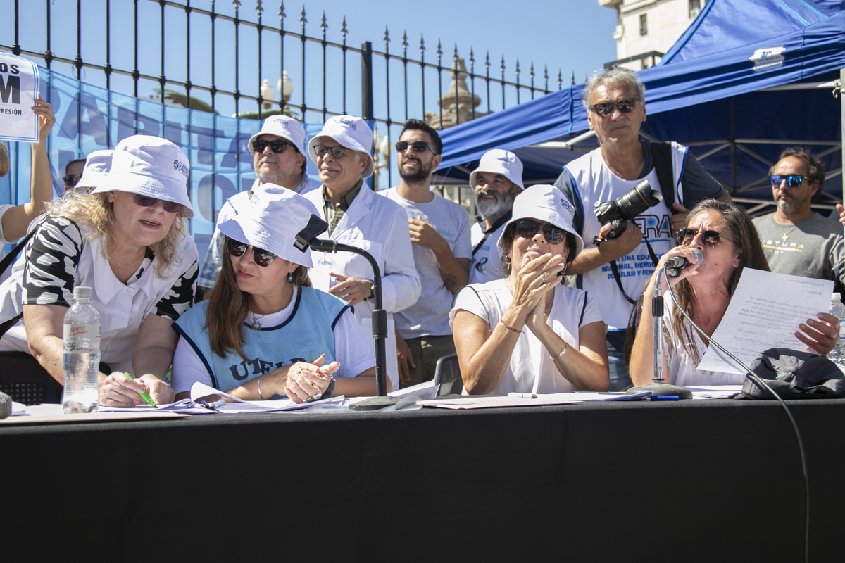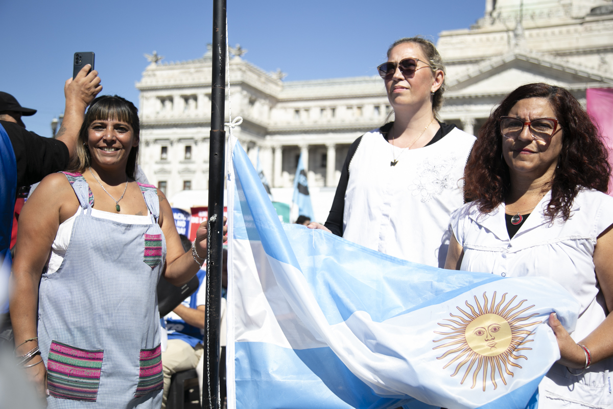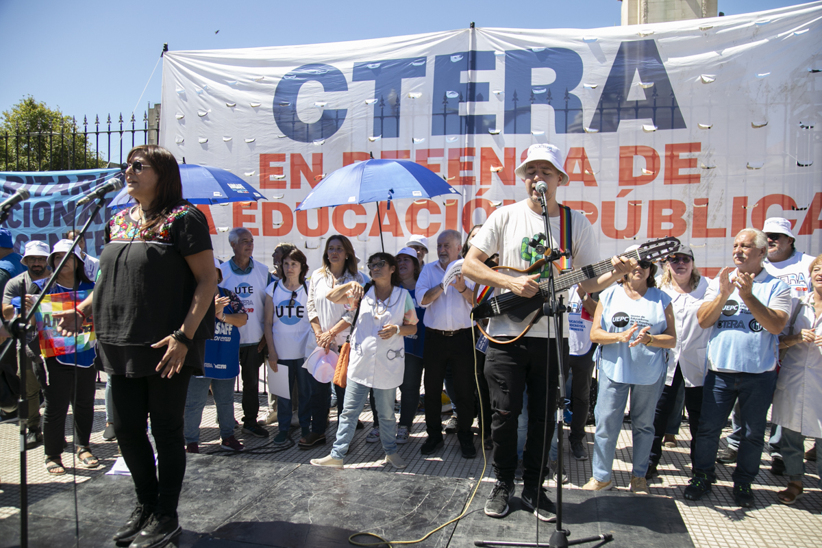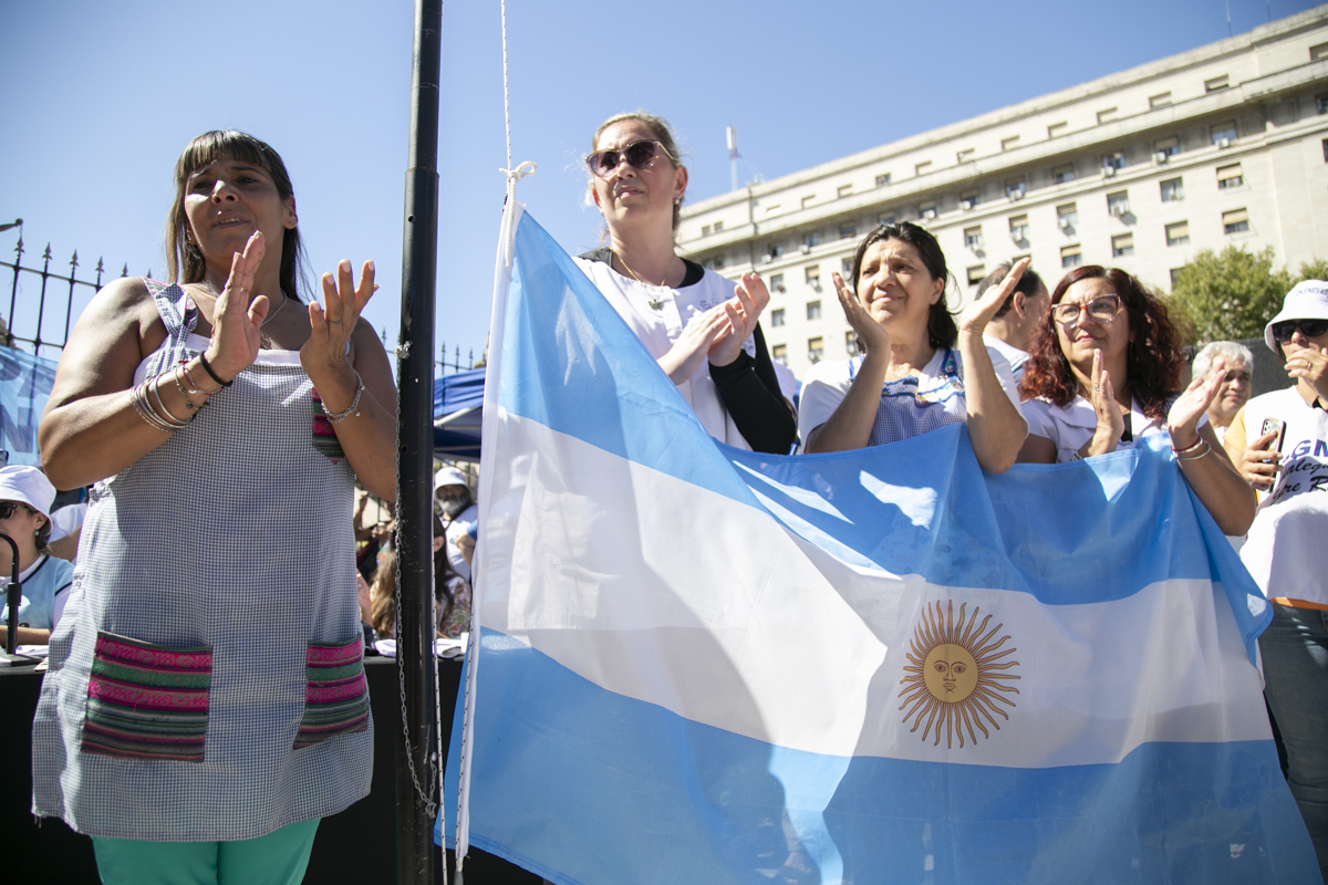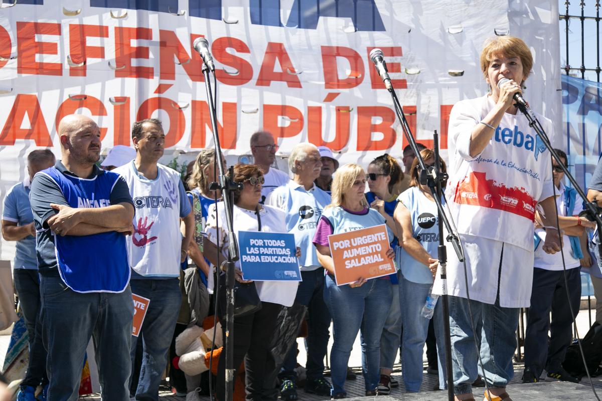 Cada día que izamos la Bandera Nacional estamos discutiendo el presente y el futuro de la Patria. No estamos acá solo por nuestro salario. Estamos por nuestrxs pibxs que hoy tienen hambre. No nos van a vencer. Vamos a recorrer cada pueblo de la Argentina pidiendo fondos para la Educación. Porque la Escuela Pública no se rinde y porque nunca nos van a ver de rodillas".