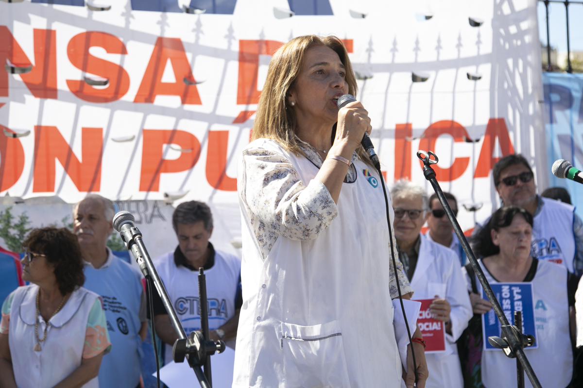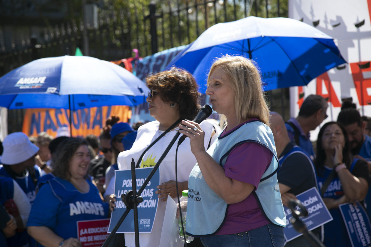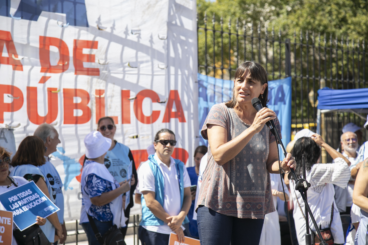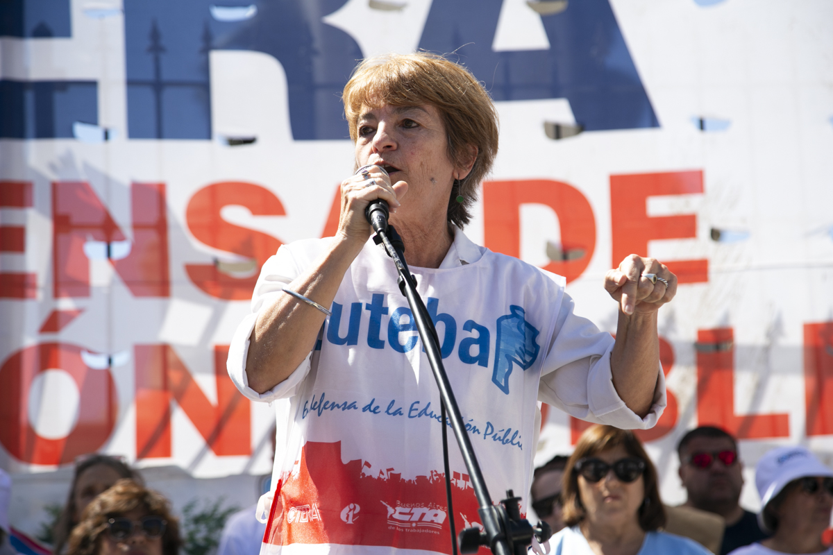 María Laura Torre, Secretaria General Adjunta del SUTEBA: "Hoy estamos acá exigiendo no solo al Gobierno que restituya el FONID, sino también a nuestrxs Legisladorxs que sancionen una nueva Ley de continuidad del Incentivo Docente".