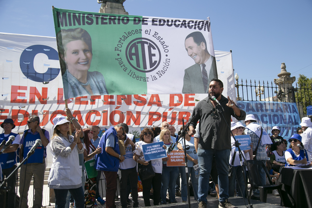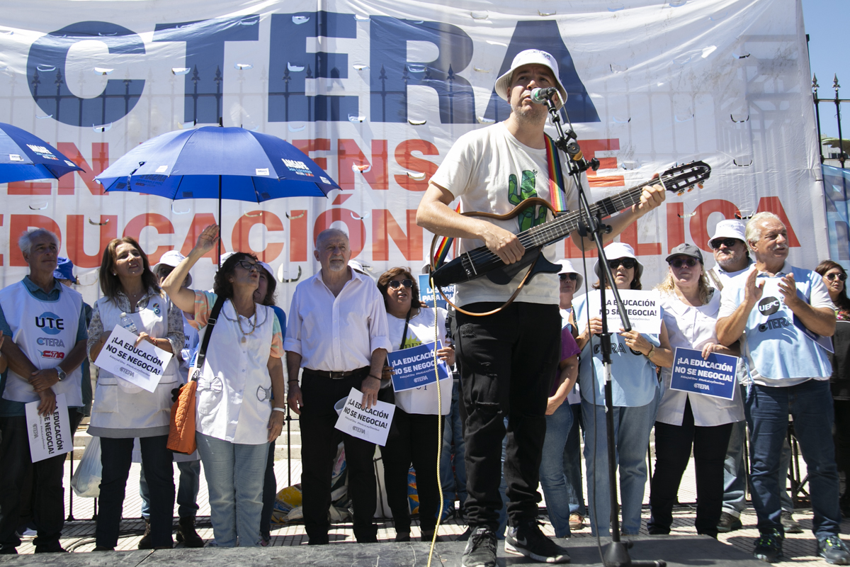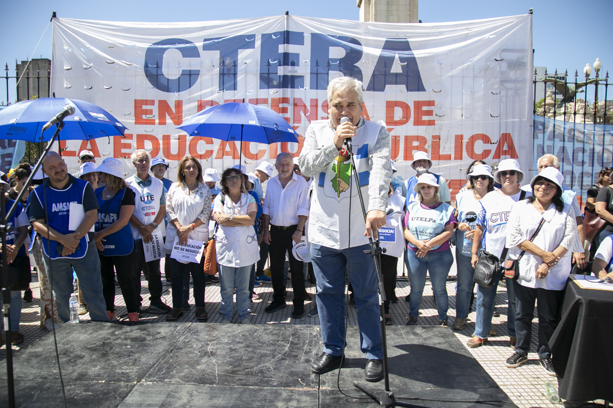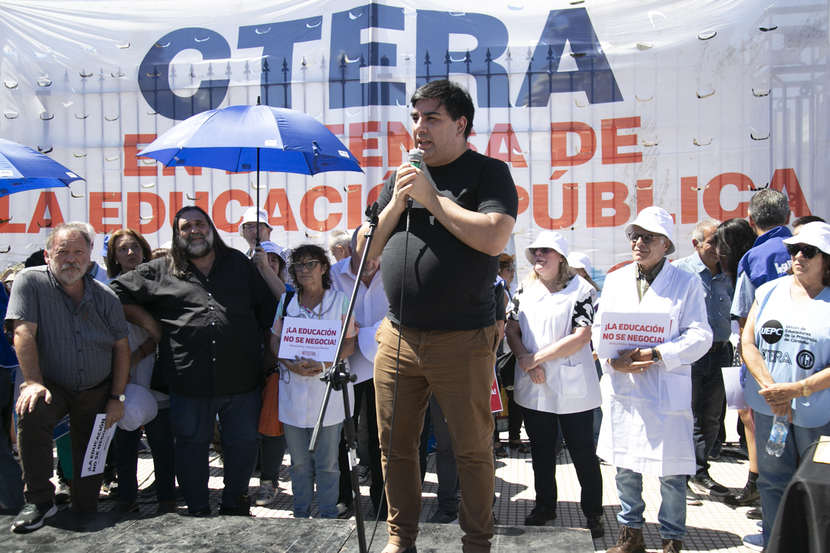 Hugo Yasky, Diputado Nacional y Secretario General de la CTA-T: "Buscan denigrar la tarea de lxs Docentes, la Educación Pública y demostrar que lxs pibxs son analfabetxs aunque vayan a la Escuela. Piensan como Macri, que si alguien quiere progresar no tiene que caer en la Escuela Pública. Esta lucha es muy importante. Hay que respetar a lxs Docentes, a la Escuela Pública y a lxs Estudiantes aunque seas Presidente. Hay que representar al Pueblo argentino con dignidad, no hay que tener miedo de reclamar por lo que es justo. Viva la Escuela Pública y la clase obrera argentina".
