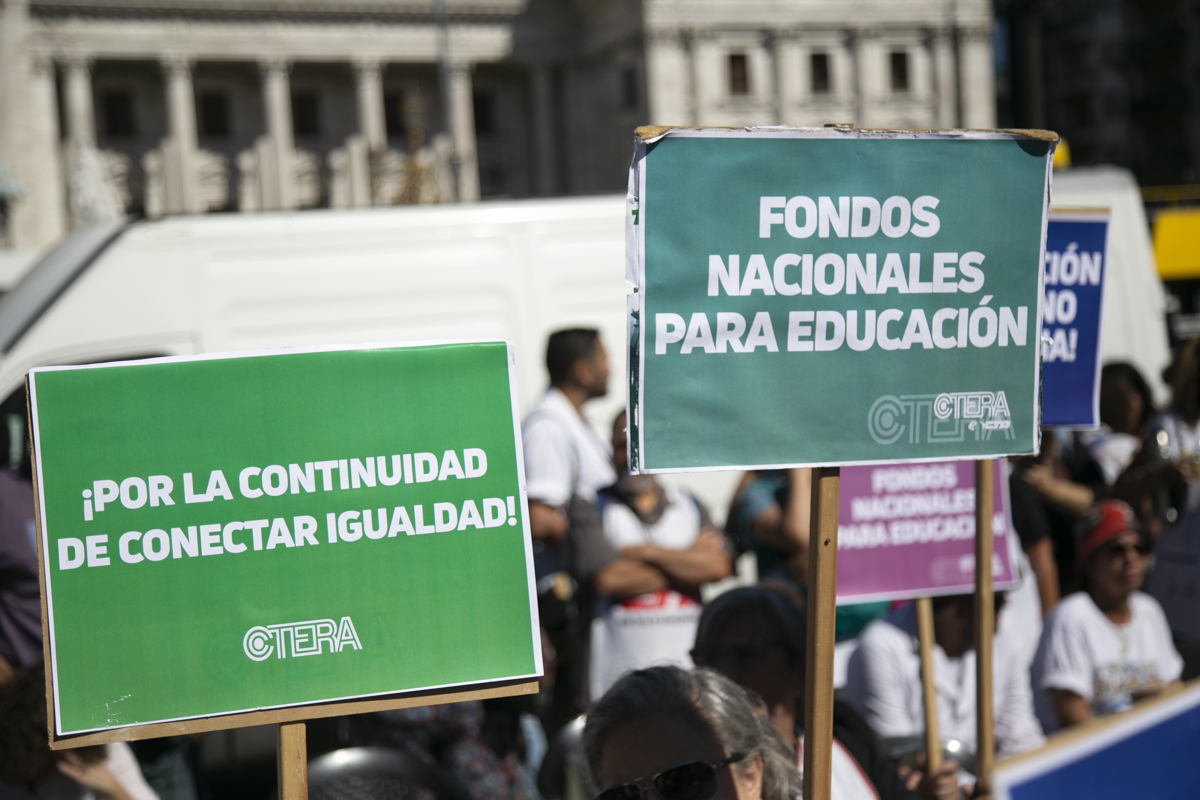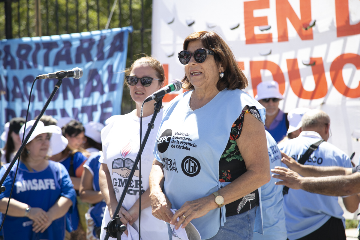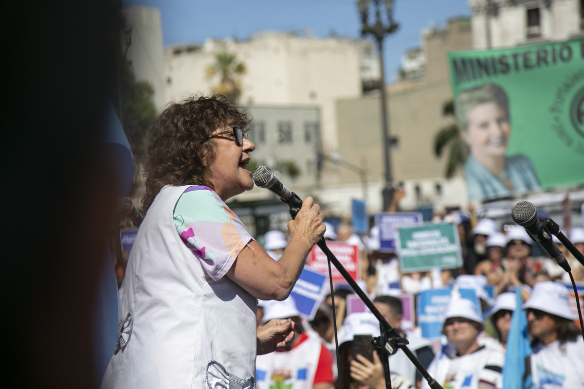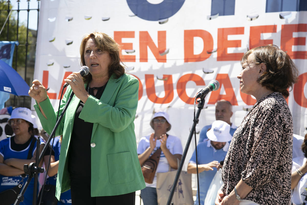 Sonia Alesso, Secretaria General de la CTERA: "La noticia de hoy es la del Decreto que sacaron reconociendo que van a enviar los fondos para la 5ta hora, la jornada extendida y la jornada completa. Van a mandar los fondos para Comedor y copa de leche que estaban pendientes, y que van a mandar el Fondo Compensador. Nos falta el FONID, que lo conseguimos acá, en este mismo lugar, donde estuvo la Carpa Blanca. Nos quieren arrebatar, no solo una parte de nuestro salario, sino una conquista histórica.