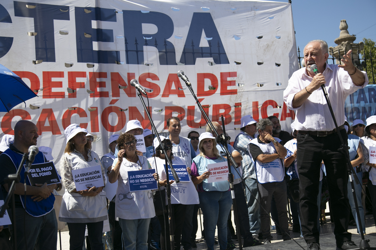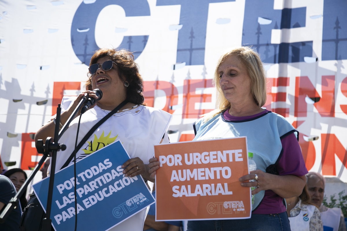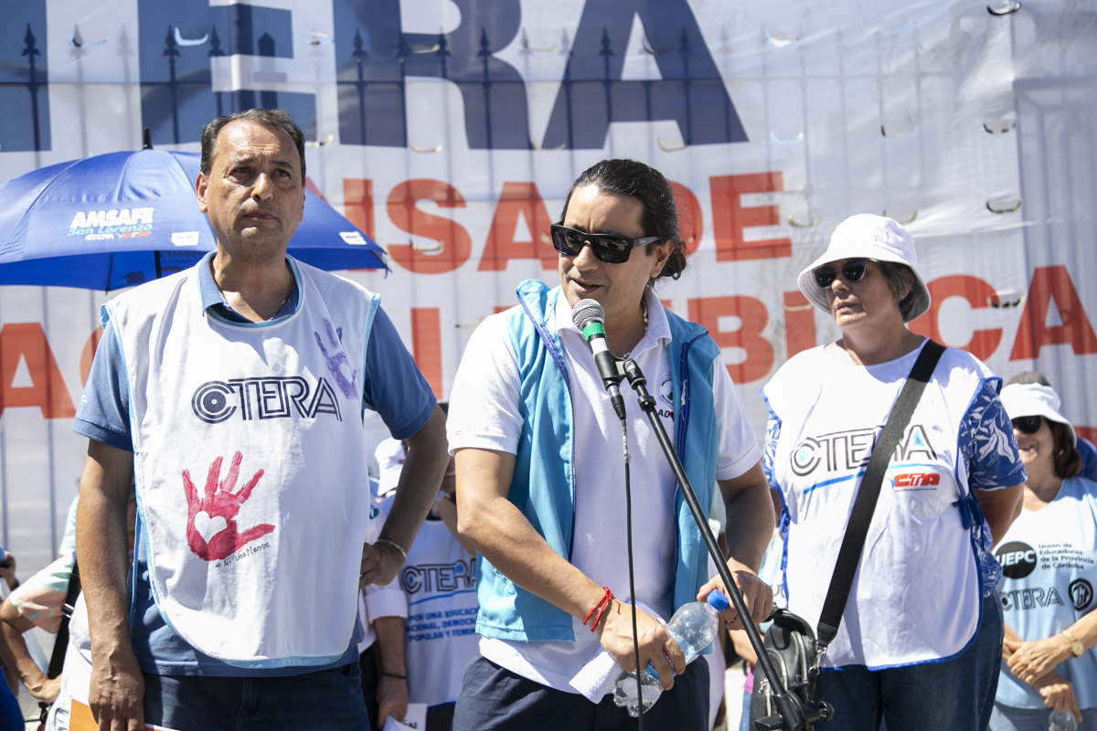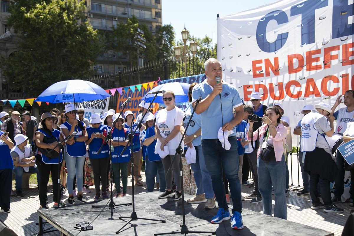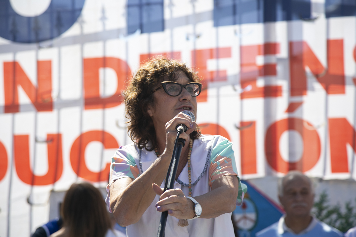 Cada día que izamos la Bandera Nacional estamos discutiendo el presente y el futuro de la Patria. No estamos acá solo por nuestro salario. Estamos por nuestrxs pibxs que hoy tienen hambre. No nos van a vencer. Vamos a recorrer cada pueblo de la Argentina pidiendo fondos para la Educación. Porque la Escuela Pública no se rinde y porque nunca nos van a ver de rodillas".
