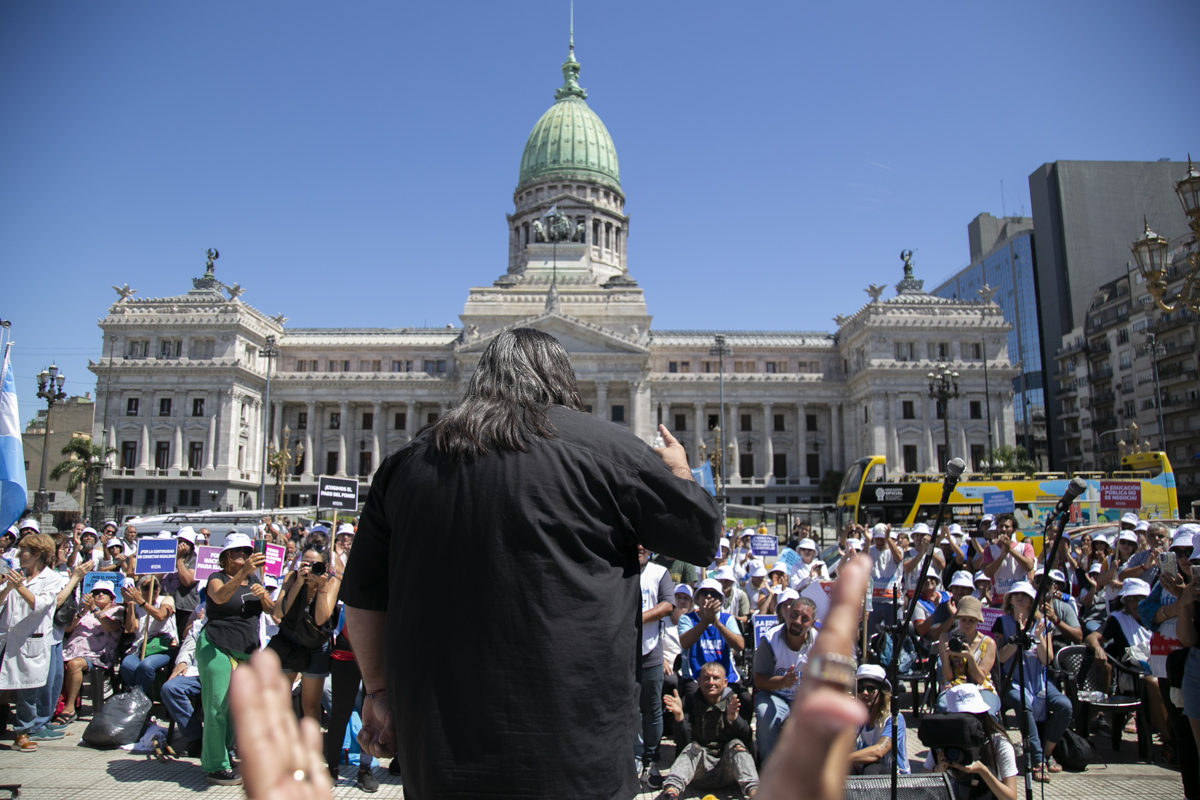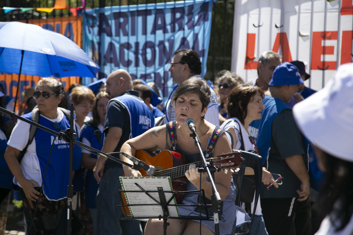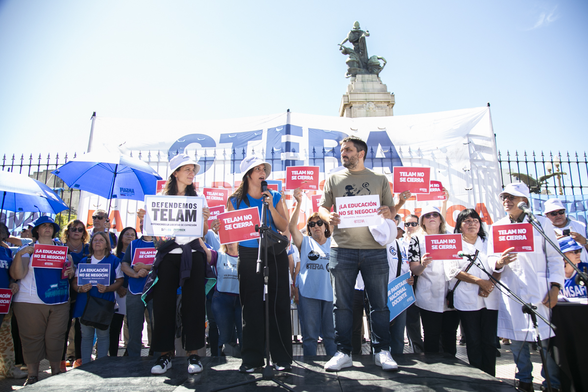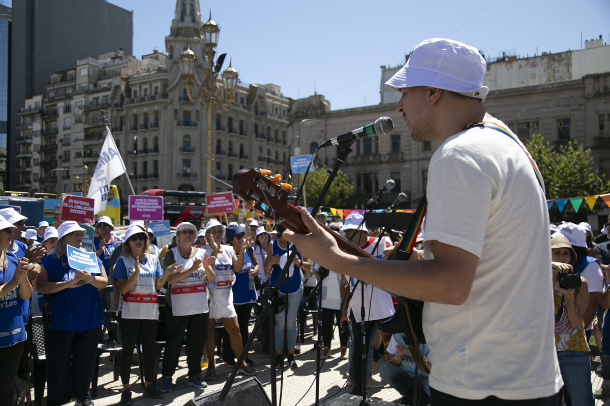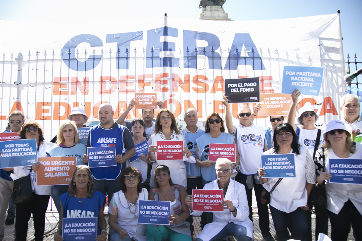 Cada día que izamos la Bandera Nacional estamos discutiendo el presente y el futuro de la Patria. No estamos acá solo por nuestro salario. Estamos por nuestrxs pibxs que hoy tienen hambre. No nos van a vencer. Vamos a recorrer cada pueblo de la Argentina pidiendo fondos para la Educación. Porque la Escuela Pública no se rinde y porque nunca nos van a ver de rodillas".