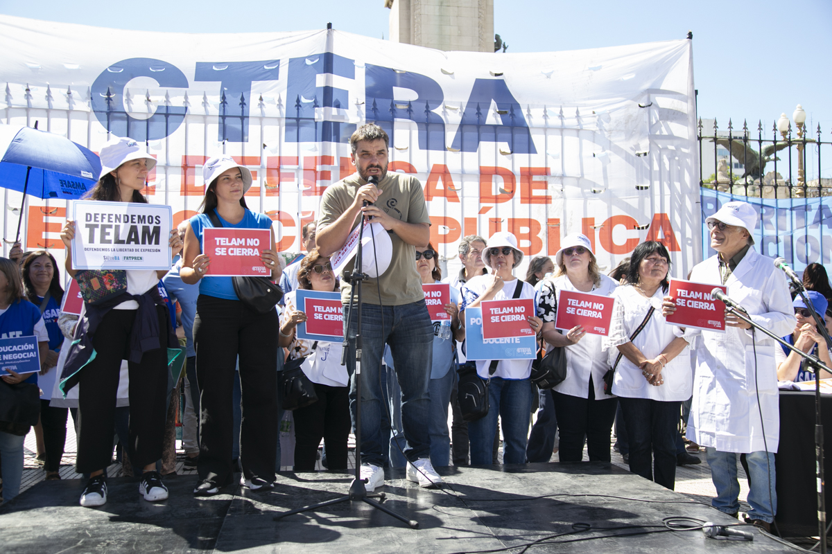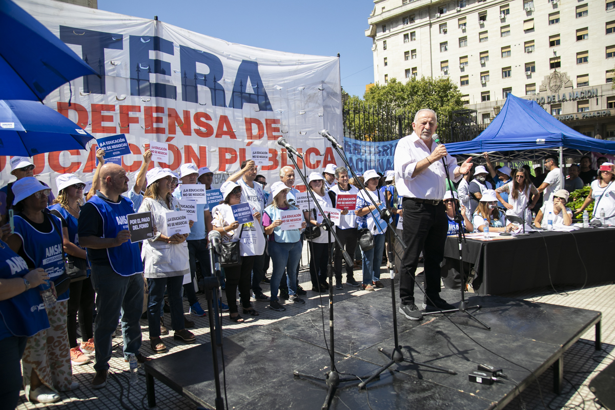 A continuación, se desarrolló una Radio Abierta, que contó con la participación de distintas provincias, que acercaron sus reclamos. También asistieron Legisladorxs que presentaron proyectos de Ley para financiar la Educación. Trabajadorxs de Télam, SiPreBA, medios públicos, del INADI y del Banco Nación (sectores perjudicados por las políticas de ajuste) tomaron la palabra y expresaron su apoyo a la lucha docente y a nuestro Secretario General, Roberto Baradel.