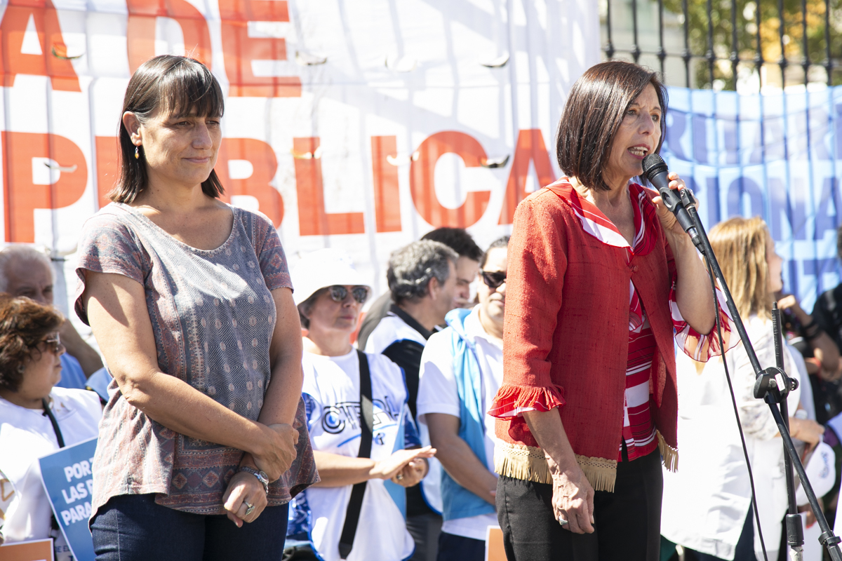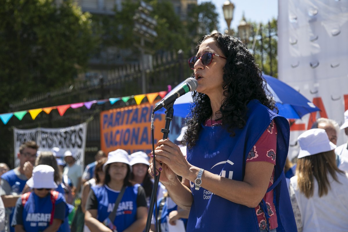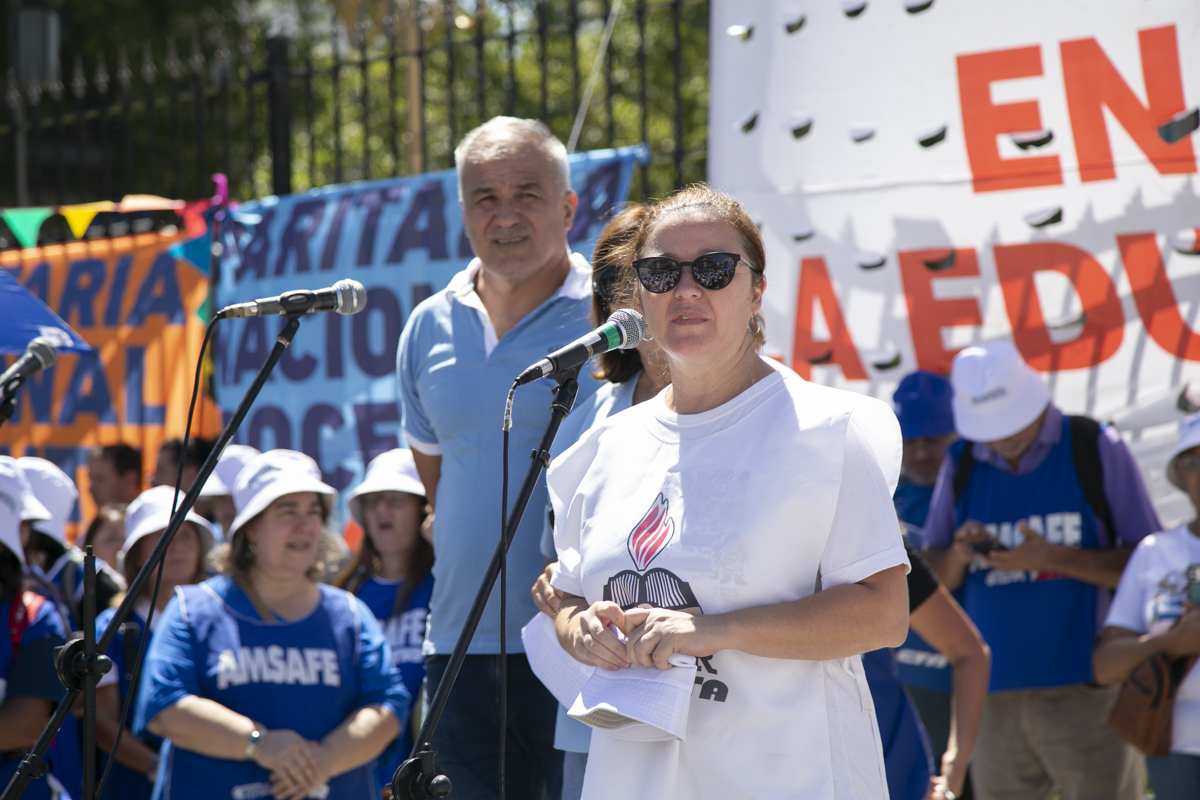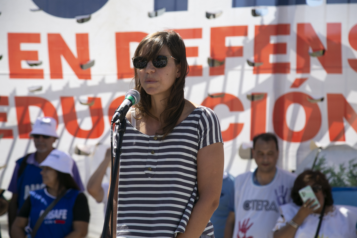 María Laura Torre, Secretaria General Adjunta del SUTEBA: "Hoy estamos acá exigiendo no solo al Gobierno que restituya el FONID, sino también a nuestrxs Legisladorxs que sancionen una nueva Ley de continuidad del Incentivo Docente".