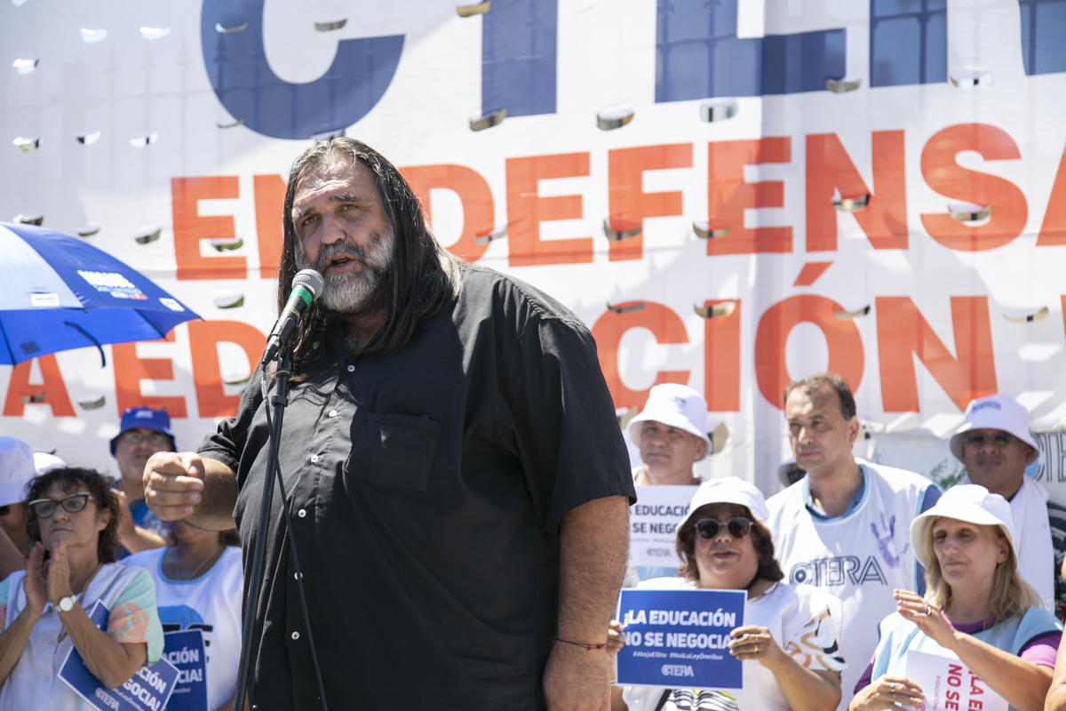 Hugo Yasky, Diputado Nacional y Secretario General de la CTA-T: "Buscan denigrar la tarea de lxs Docentes, la Educación Pública y demostrar que lxs pibxs son analfabetxs aunque vayan a la Escuela. Piensan como Macri, que si alguien quiere progresar no tiene que caer en la Escuela Pública. Esta lucha es muy importante. Hay que respetar a lxs Docentes, a la Escuela Pública y a lxs Estudiantes aunque seas Presidente. Hay que representar al Pueblo argentino con dignidad, no hay que tener miedo de reclamar por lo que es justo. Viva la Escuela Pública y la clase obrera argentina".
