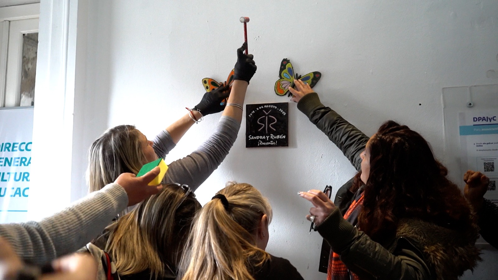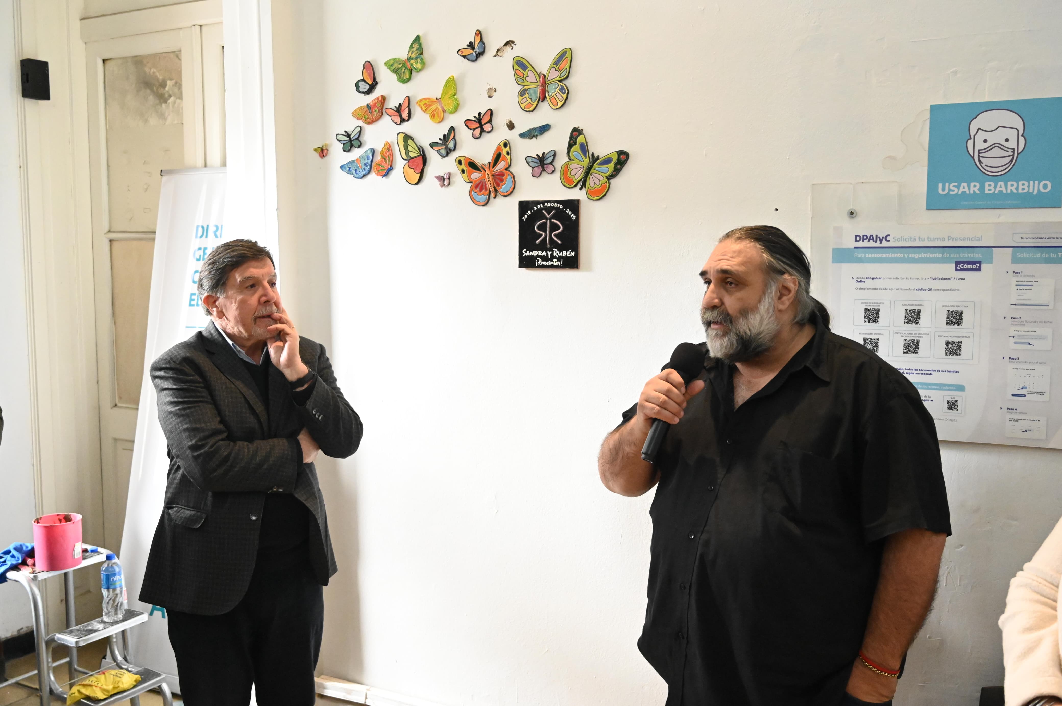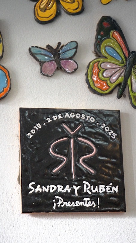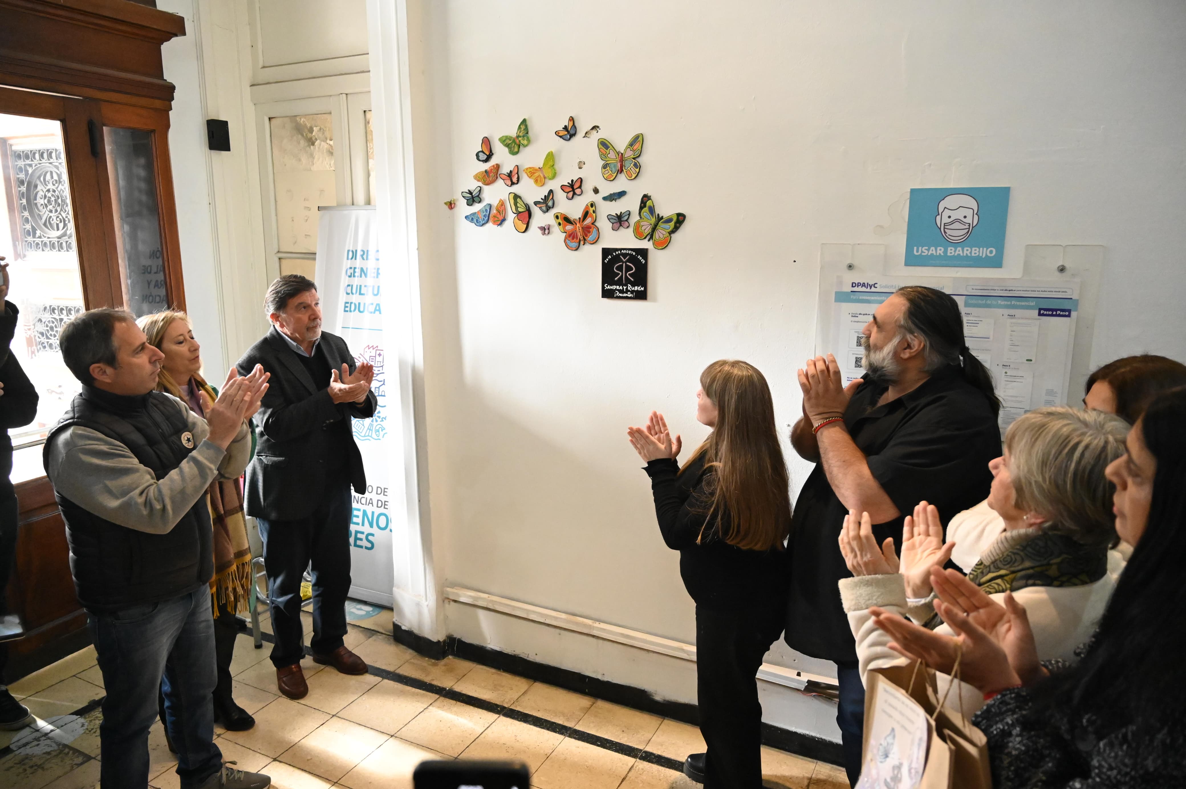 En otro tramo de su mensaje, Baradel se refirió al mural inaugurado durante el emotivo acto, una decena de mariposas de cerámica junto a la leyenda "Sandra y Rubén presentes". "Lo de las mariposas es una belleza y una genialidad", destacó, y comentó que remite a leyendas aztecas y mayas que señalan que el guerrero, cuando fallece, no se olvida, se transforma en mariposas.