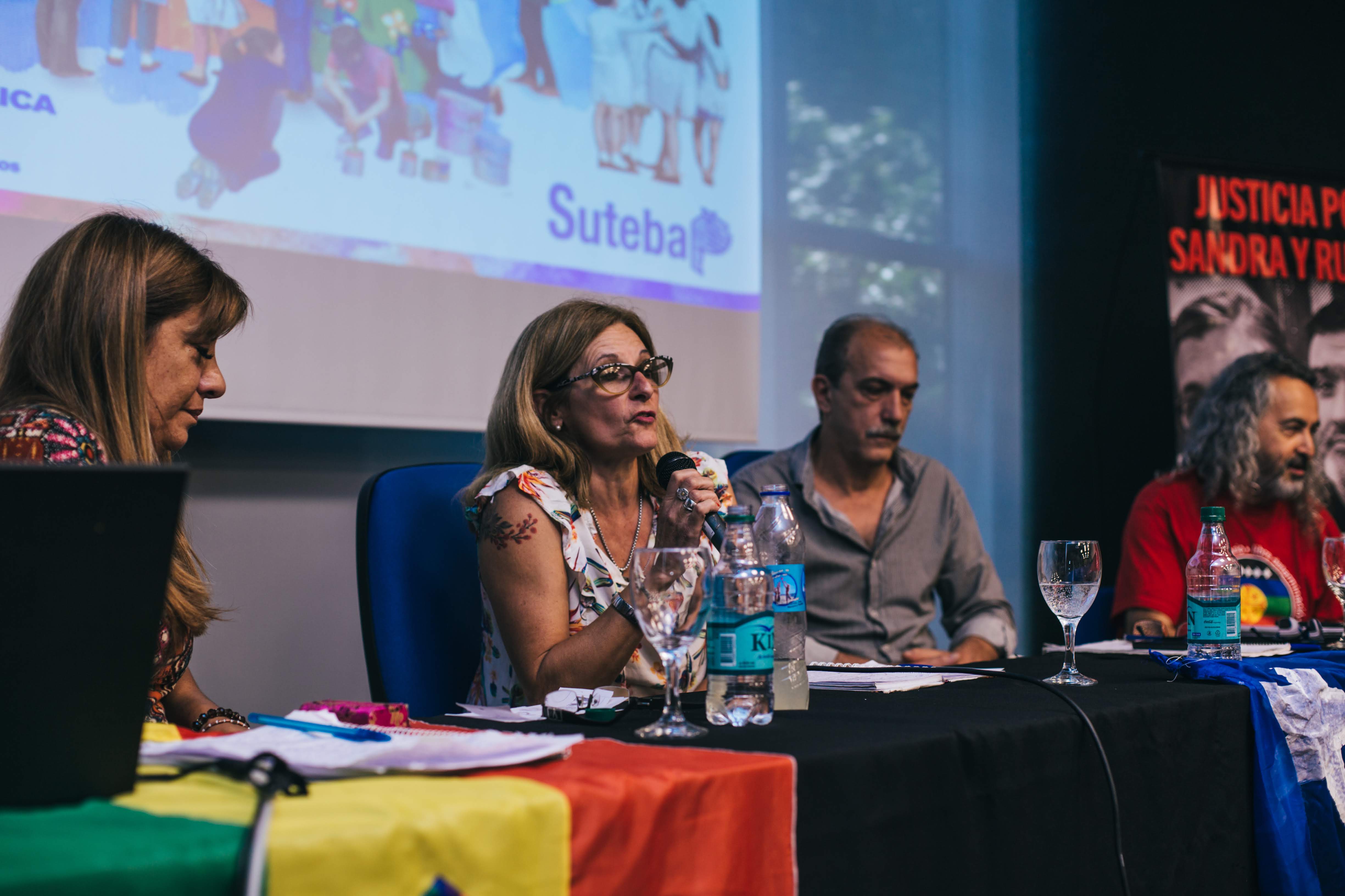 En el inicio, la Secretaria General Adjunta del SUTEBA, María Laura Torre, expresó el dolor por la tragedia de Lezama y la solidaridad con la comunidad educativa de la Escuela Primaria Nº 41 de Benavídez y sostuvo: "Tenemos el desafío inmenso de dar en cada Escuela de la Provincia la batalla cultural, para construir las subjetividades que quisieron acallar y seguir firmes en la defensa de los derechos de lxs Trabajadorxs y lxs Estudiantes. Peleamos por una Educación Pública de calidad y, en homenaje a Sandra y Rubén, exigimos Escuelas seguras en toda la Provincia".
