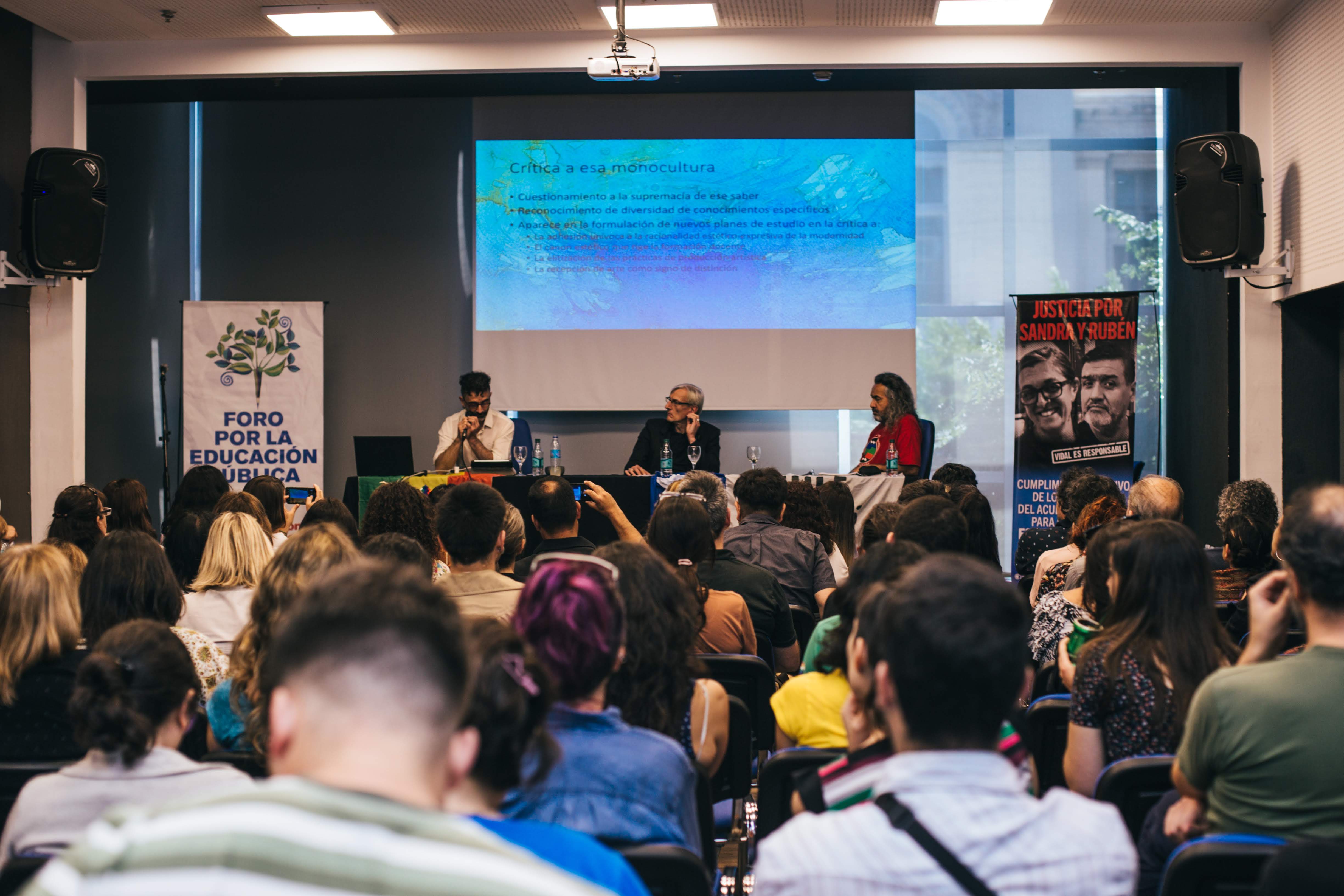 En la misma línea y continuando la jornada, Marcela Escobar, Secretaria Gremial del SUTEBA, manifestó: "Vidal deja una Educación Pública desfinanciada. Y en la Educación Artística todo es peor, la Infraestructura está en un deterioro total. Nos reunimos en este Foro para participar democrática y colectivamente, algo que nos negaron durante estos cuatro años. Es necesario pensar acciones que reparen el estado en el que está la Educación Artística, para transformar esta realidad".