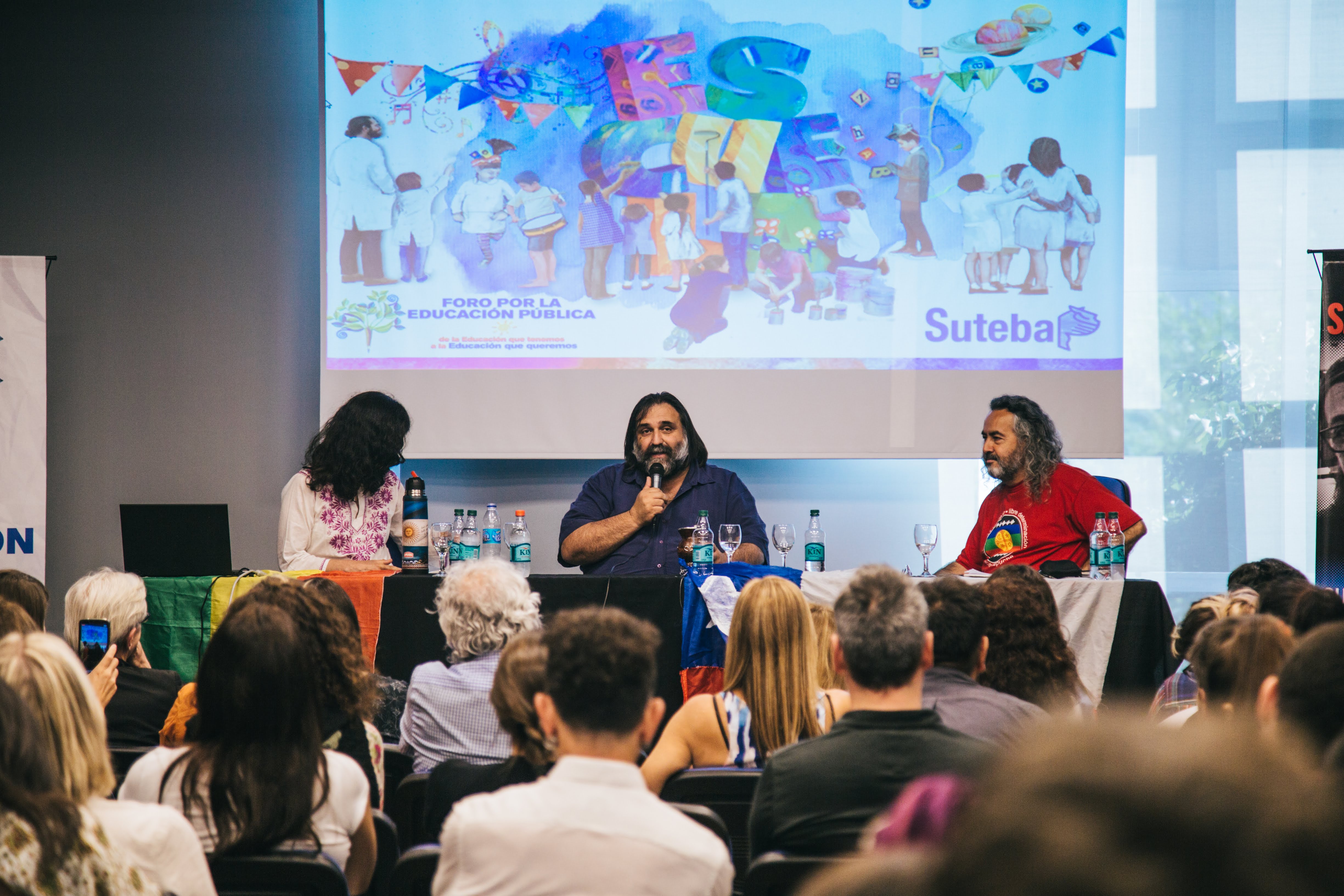Culminando esta primera parte, el Secretario de Educación Artística del SUTEBA, Pedro Ponce, subrayó: "La Educación Artística es un derecho social. En estos últimos años, muchxs compañerxs tuvieron que dejar de estudiar, eso no puede seguir así. Tenemos que recuperar todos nuestros derechos. Por eso estamos acá, construyendo juntxs ese mundo que deseamos".