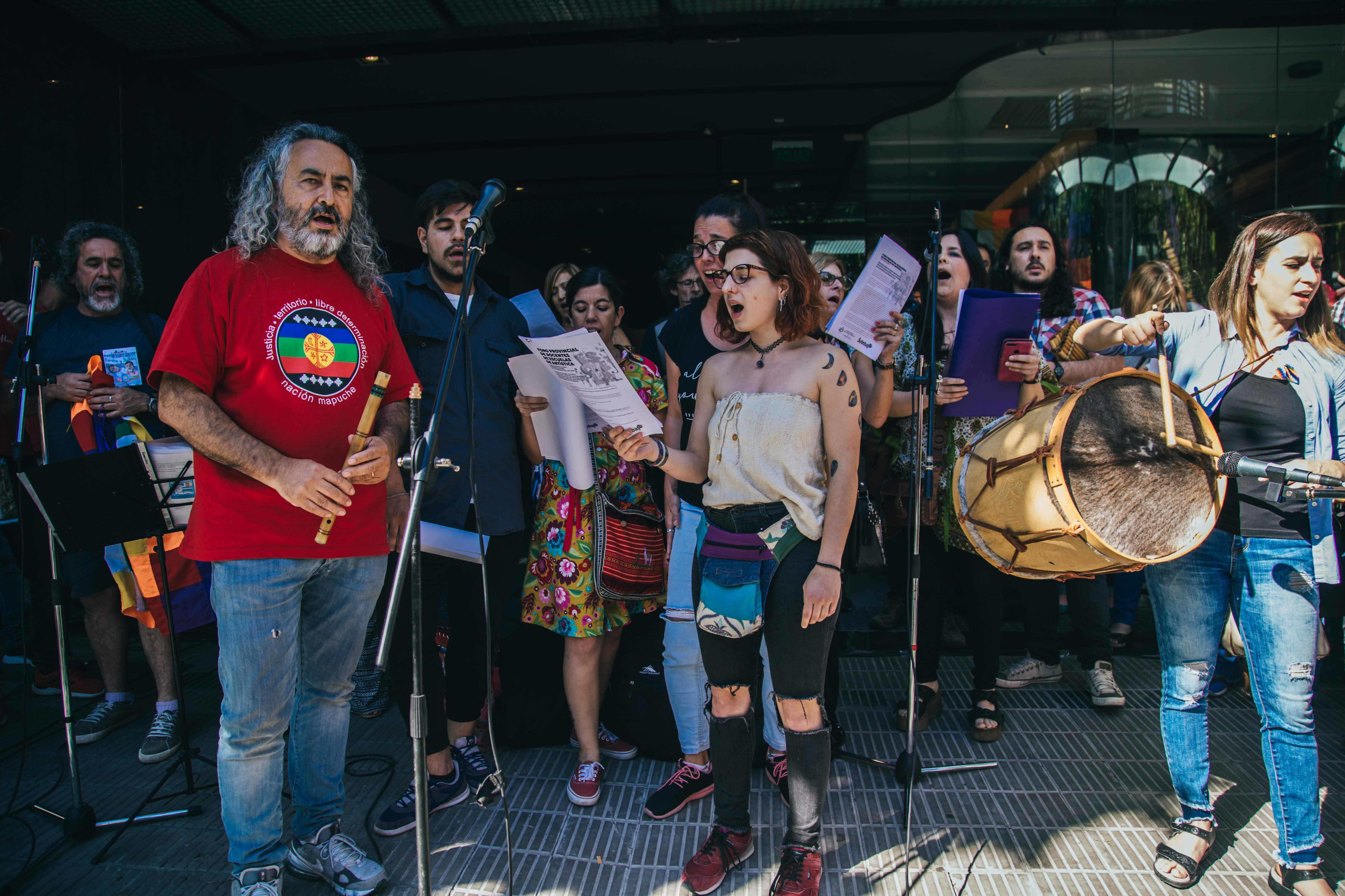 Finalizando, se realizó una emocionante intervención artística en la calle, con la participación de varixs músicxs Docentes, que terminó con una gran bandera Whipala de cara al sol.