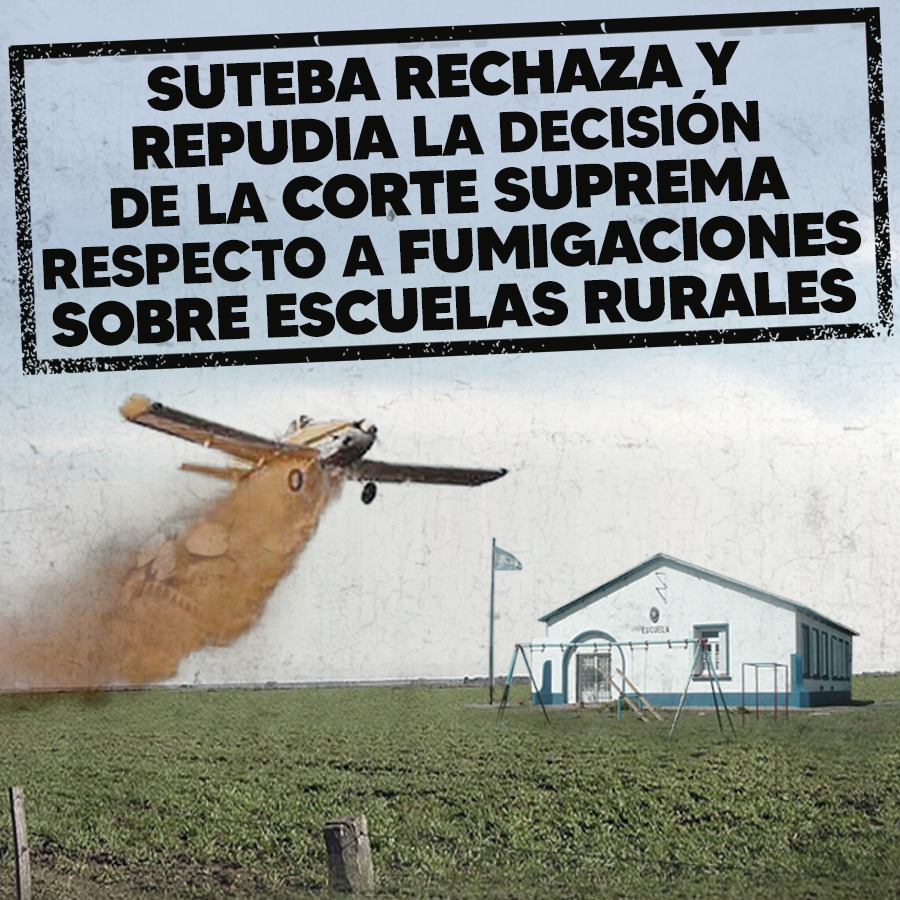 Desde el SUTEBA expresamos nuestro más sincero repudio a la decisión de la Corte Suprema, que después de tres años, consideró "carente de trascendencia" las distancias de fumigaciones sobre Escuelas Rurales de Entre Ríos, que dejaron a miles de niñxs y Trabajadorxs de la Educación "expuestxs a sustancias que afectan gravemente su salud".