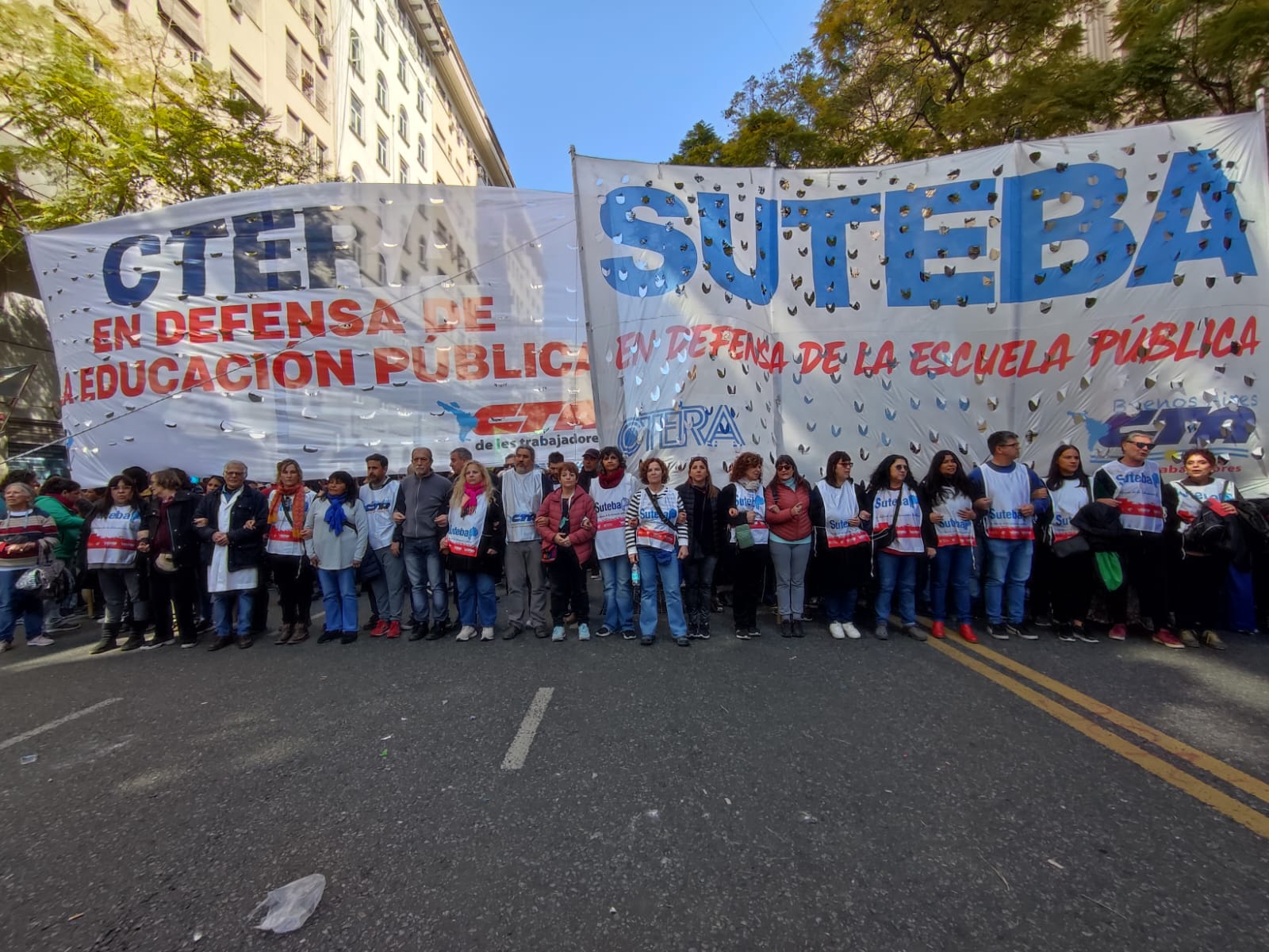 Además de la presencia en Plaza de Mayo, el SUTEBA se movilizó en todos los distritos de la provincia de Buenos Aires en defensa de la democracia.