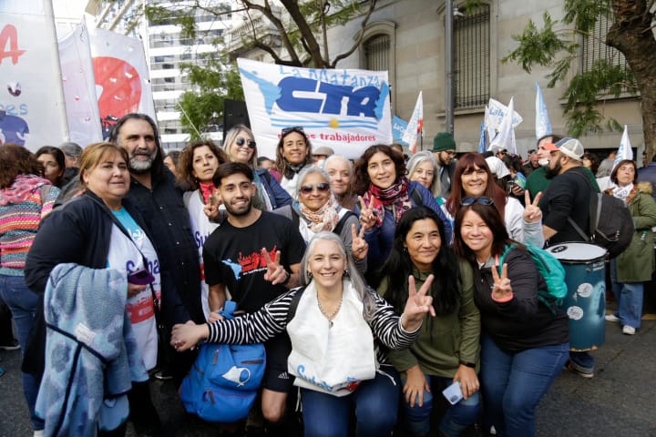 "Estamos acá porque esa bala que no se disparó apuntaba no solo a Cristina: apuntaba a lxs Trabajadorxs, a lxs Docentes, a lxs jubiladxs, a lxs que queremos construir una Argentina con justicia social y con vigencia de los derechos humanos. Tenemos que demostrar que el pueblo argentino, lejos de retroceder y de bajar los brazos, a partir de este intento de magnicidio va a redoblar su esfuerzo para proteger a Cristina y a sus propios derechos", agregó.