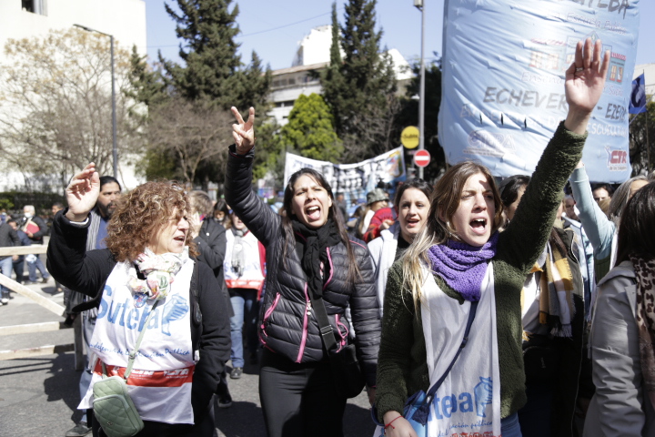 "Y vamos a estar en la calle –amplió-, defendiendo la democracia, que hoy tiene la expresión de decir ¡basta de violencia! Desde todos los lugares, desde los discursos que fomentan y que han fomentado sistemáticamente lxs vocerxs de muchos medios de comunicación, de lxs que encabezaban marchas en las que ponían bolsas mortuorias o guillotinas. A todo eso le decimos ¡basta! Todo tiene un límite y ese límite ya llegó. Y lo tenemos que poner lxs Trabajadorxs organizadxs en la calle. Como Docentes, debemos explicar en cada aula el significado de este hecho gravísimo, y adónde apuntaron".