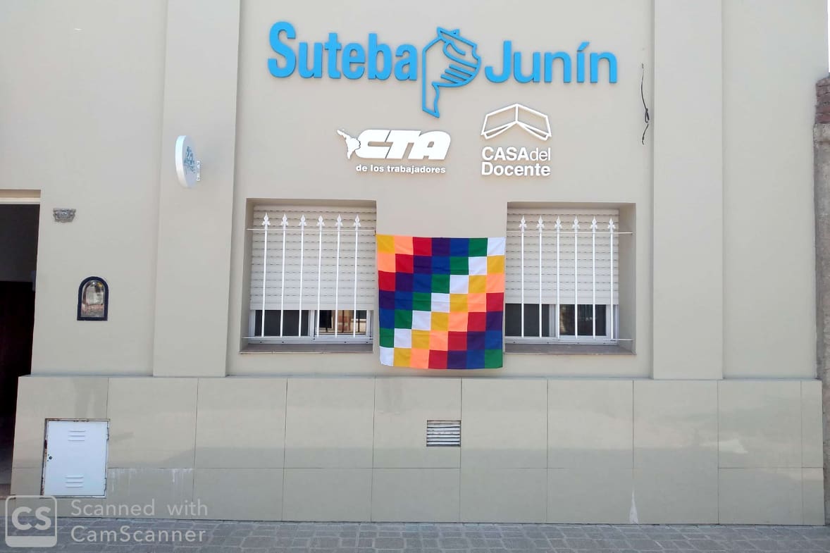En el marco de la campaña en solidaridad con el pueblo boliviano y en repudio al golpe de Estado, hoy en todas nuestras Sedes Sindicales se está colgando la bandera whipala, que simboliza la tierra, la sociedad y la cultura, la energía, el tiempo, según las creencias de los Pueblos Originarios.