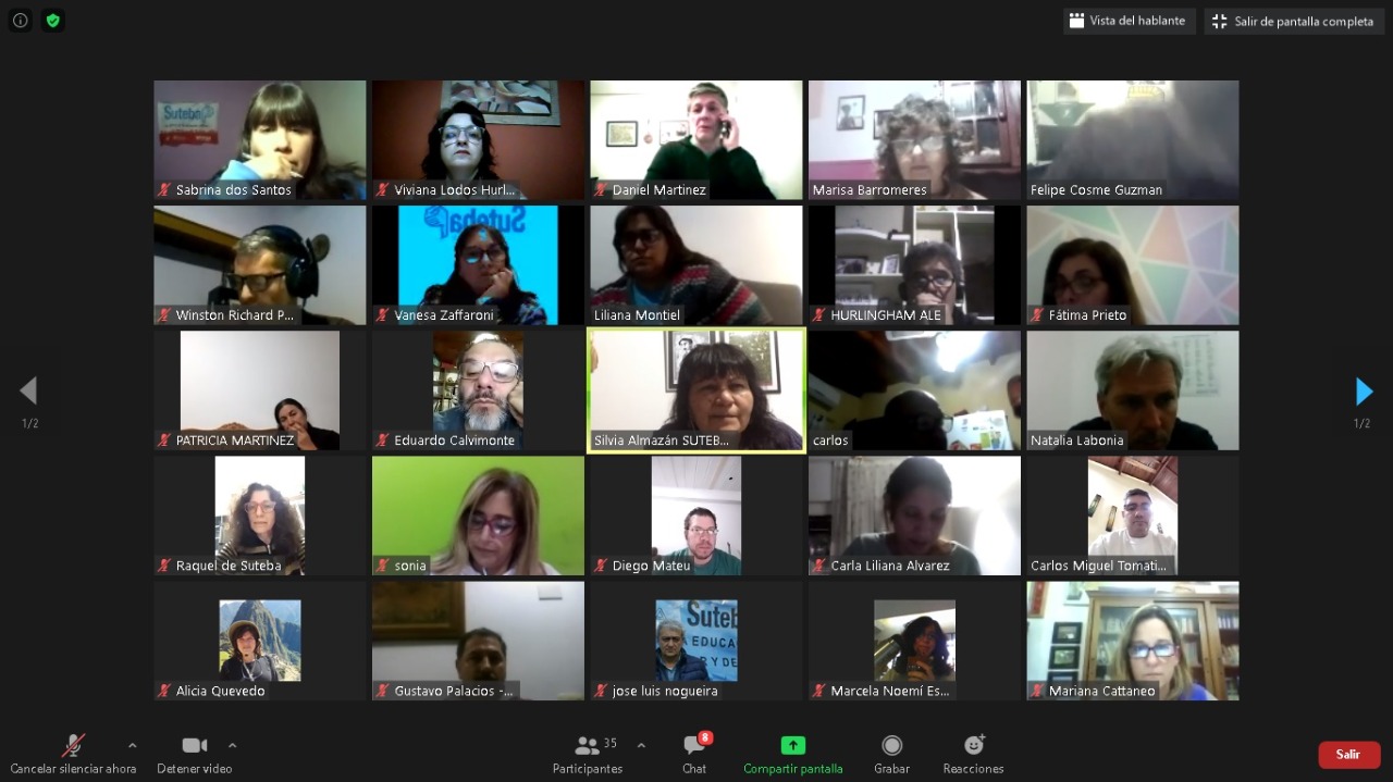 Lxs representantes del SUTEBA, por su parte, plantearon los problemas edilicios de cada uno de los distritos: obras paralizadas, mantenimiento de los edificios escolares (priorizando Agua, Electricidad, Gas y Sanitarios), ampliaciones y/o construcciones y mobiliario escolar. Por último, manifestaron la necesidad de tener en cuenta a las Cooperativas para muchos de estos trabajos.