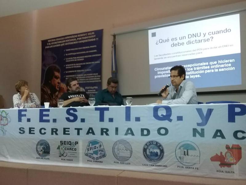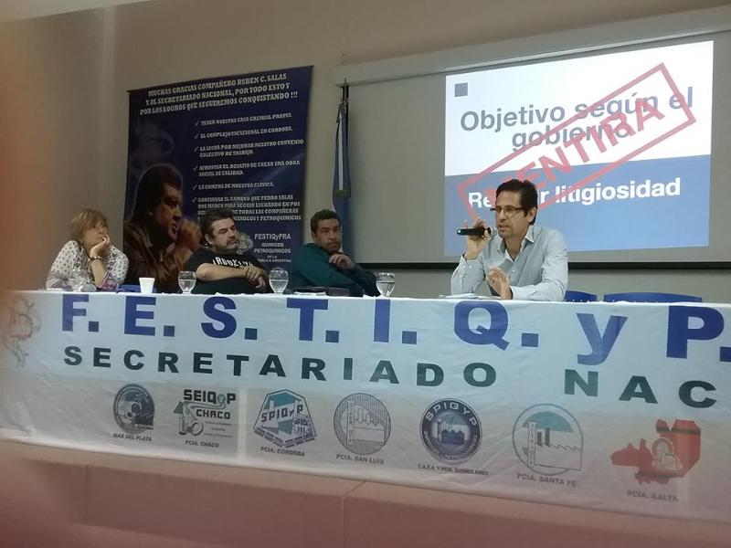 SUTEBA y CTERA participaron el pasado 10 de febrero en el Encuentro de Organizaciones Sindicales que asistieron al Seminario Internacional sobre Salud Laboral en septiembre de 2016. En ese ratificamos nuestro más enérgico rechazo al Decreto de Necesidad y Urgencia (DNU) que firmó el Poder Ejecutivo Nacional en Enero de este año para reformar la Ley 24557. Bajo el pretexto de disminuir la litigiosidad, y con ello bajar costos laborales, nos enfrentamos a la punta de un iceberg: "La litigiosidad es el correlato de la siniestralidad y ésta tiene que ver con la ausencia de dispositivos de prevención y la mejora de las condiciones de trabajo en muchos ámbitos laborales", decía Stella Maldonado en 2012.