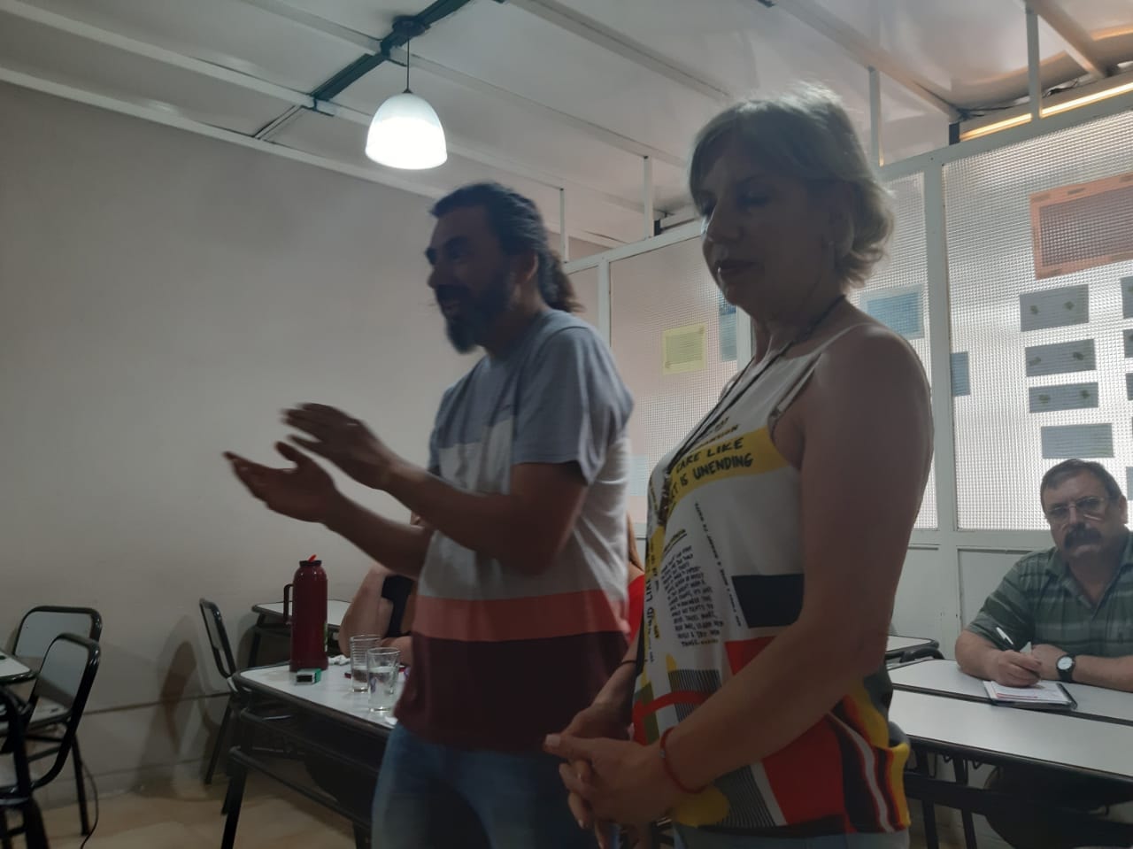 La capacitación estuvo a cargo de lxs representantes de la Comisión Jurisdiccional Mixta de Educación, en el que José Correa participó por el SUTEBA y Cilda Ramonino, Secretaria de la CJM, por SUETRA.
