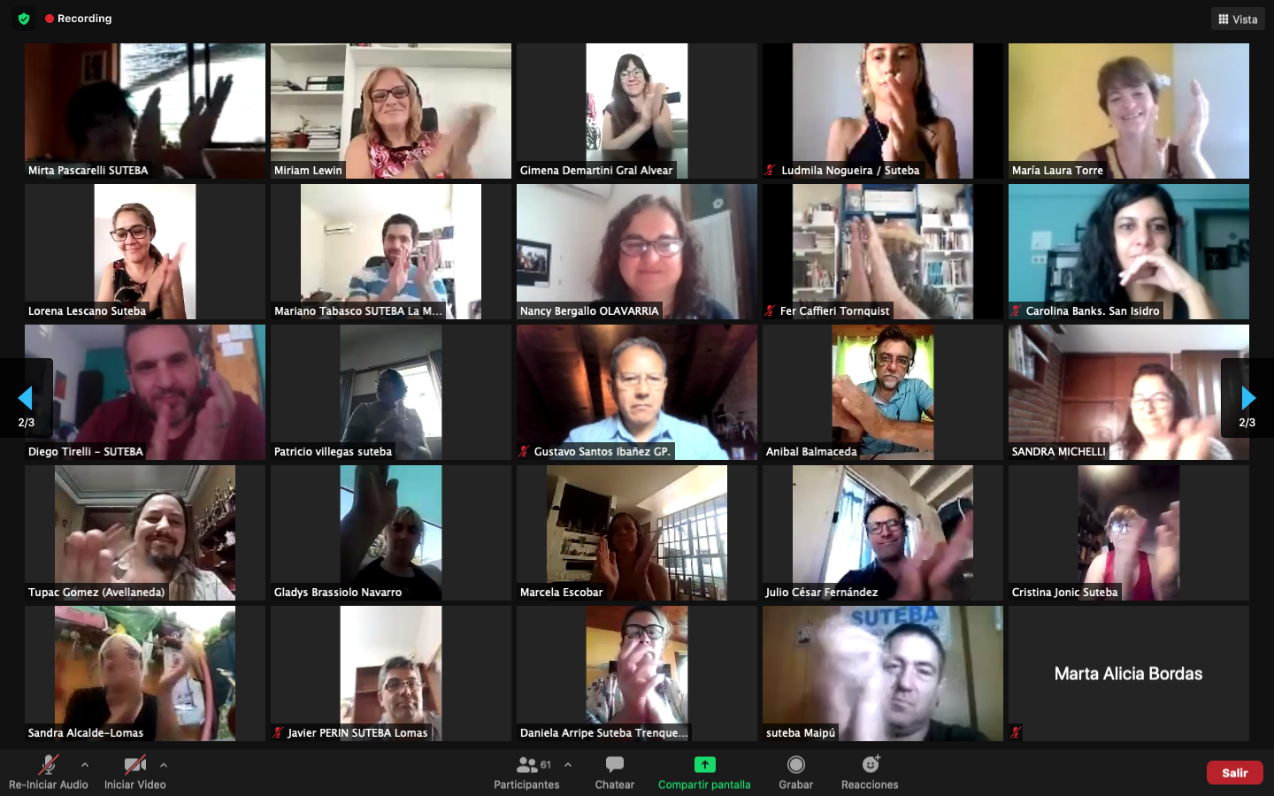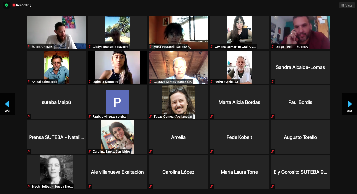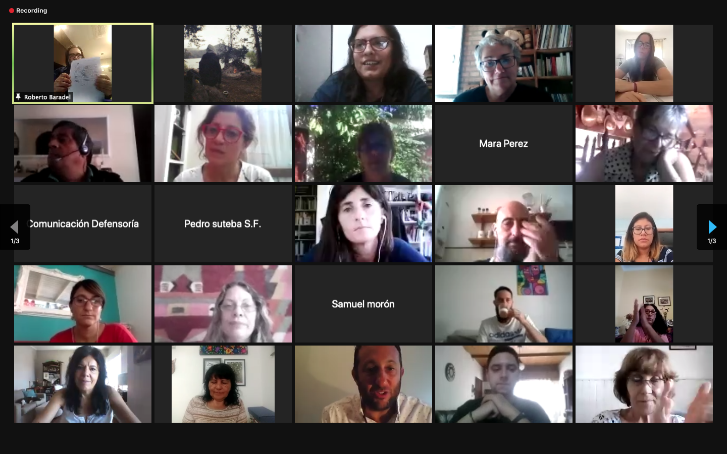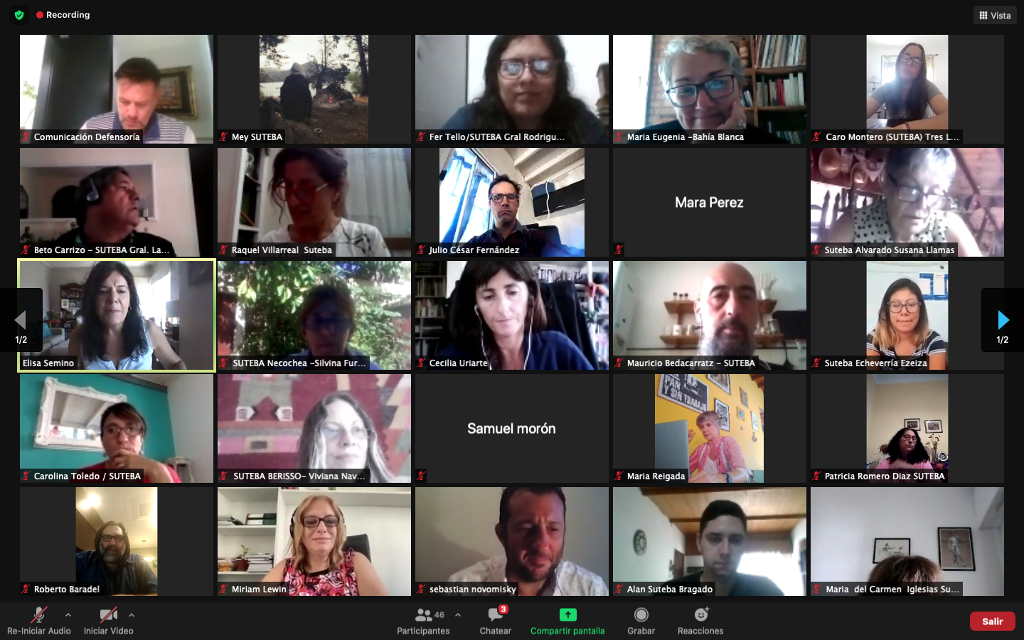 Moderó el encuentro virtual Sebastián Novomisky, Director de Capacitación y Promoción, quien ponderó al SUTEBA como lugar de resistencia de la comunicación popular. Participaron además Trabajadorxs de la Defensoría; las Secretarias Generales Adjuntas del SUTEBA, María Laura Torre y Silvia Almazán; la dirigente del SUTEBA y ahora Senadora, María Reigada; y representantes sindicales de nuestra Organización a nivel provincial.