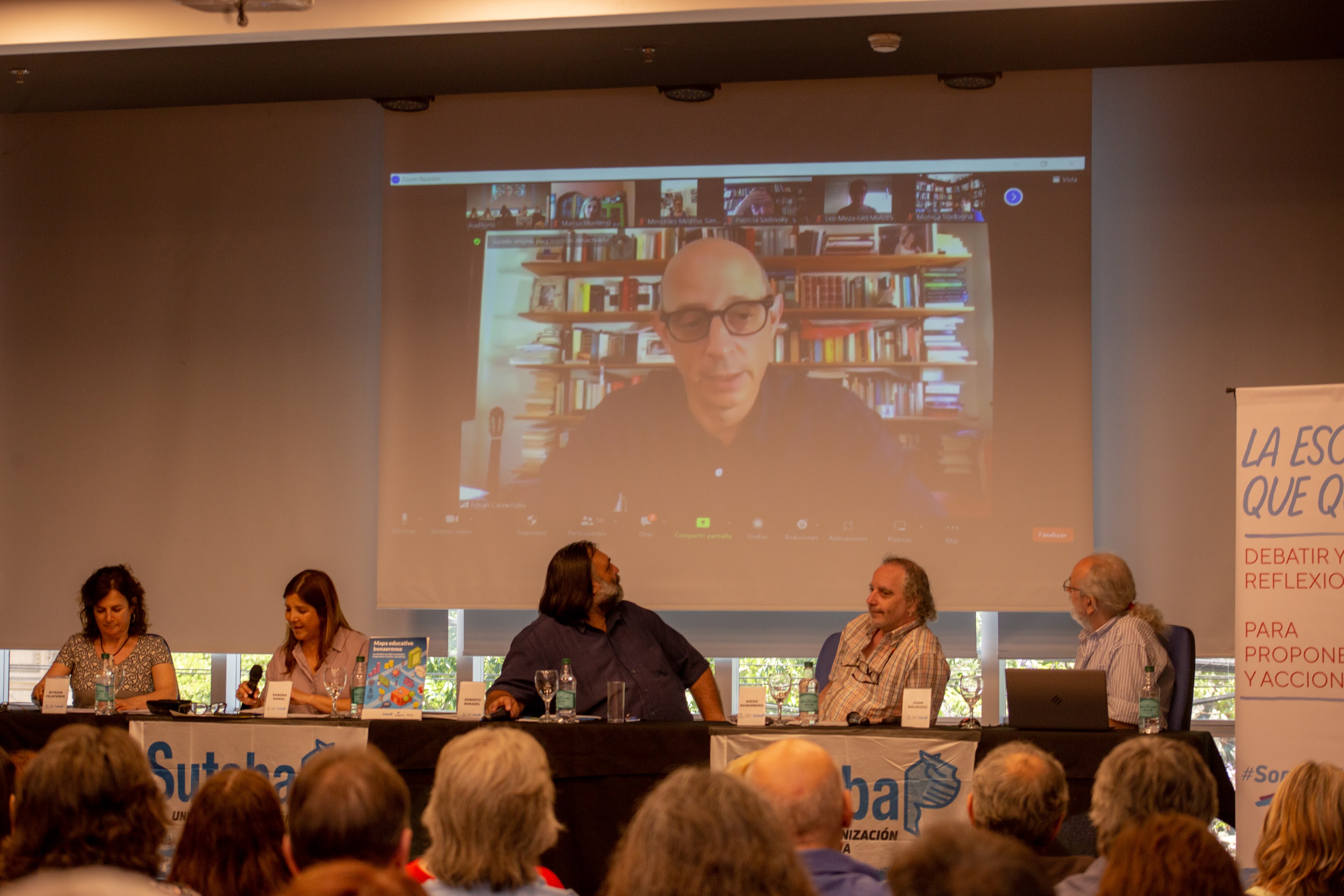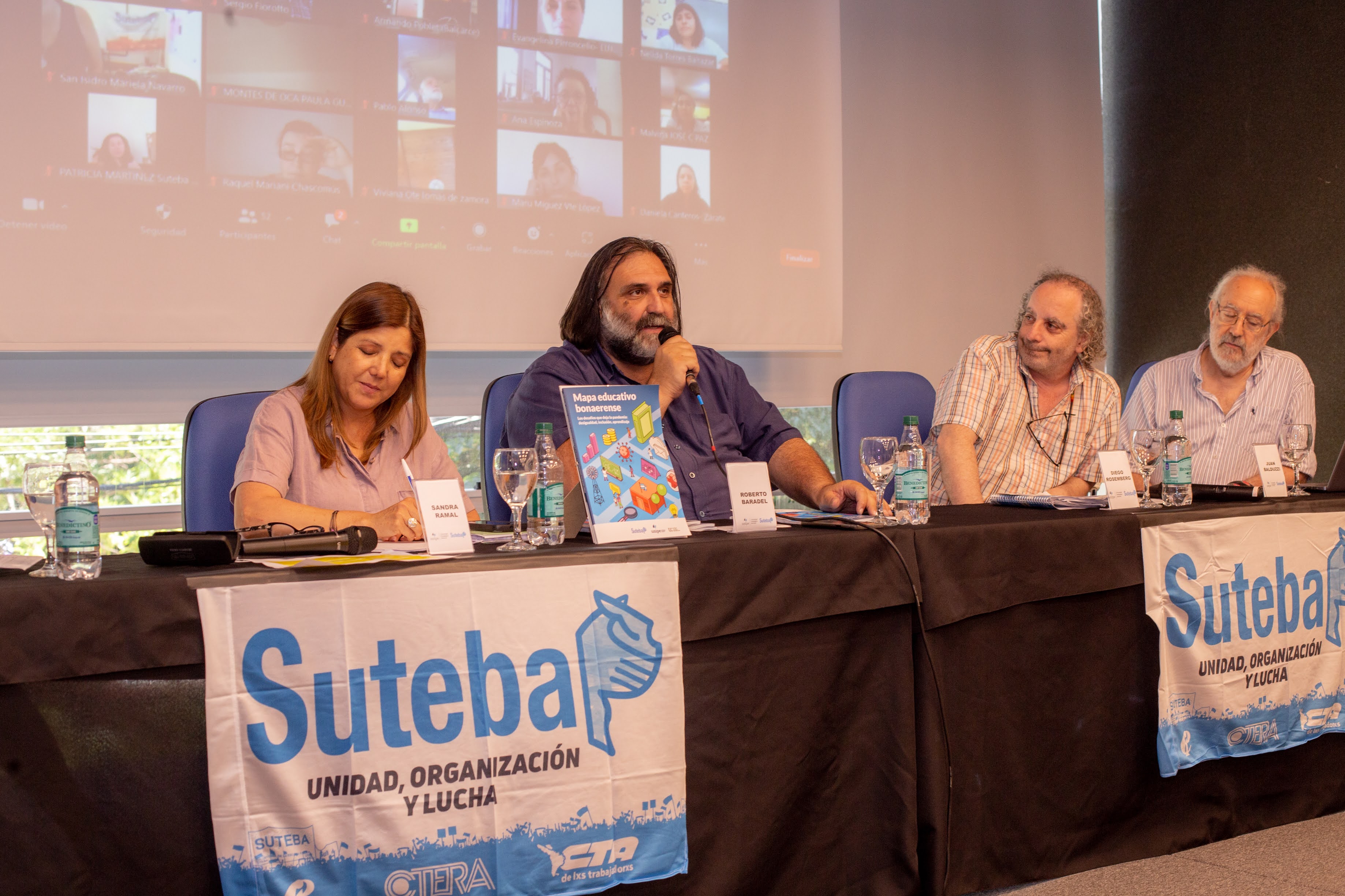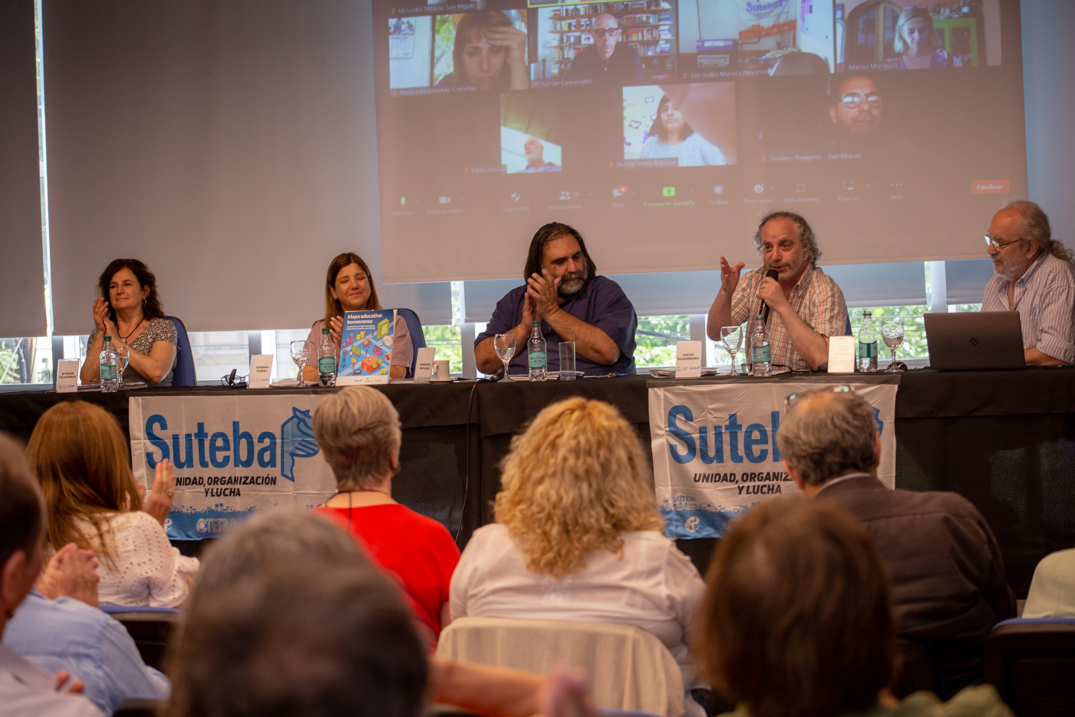 Sandra Ramal, Secretaria de Educación del SUTEBA, abrió el encuentro agradeciendo "la voluntad política de las instituciones que participaron para realizar este libro", mencionando en especial a Adrián Canellotto, Rector de la Unipe; Diego Rosemberg, del Equipo Editor de Unipe; y Juan Balduzzi, Profesor de Historia Social de la Educación, UNLu, integrante del equipo de la Secretaría de Educación del SUTEBA. Por el lado de nuestro Sindicato, valoró también la participación de Roberto Baradel, Secretario General; de María Laura Torre y Silvia Almazán, Secretarias Generales Adjuntas; y de Florencia Riccheri y Marta Suárez, de la Secretaría de Educación.