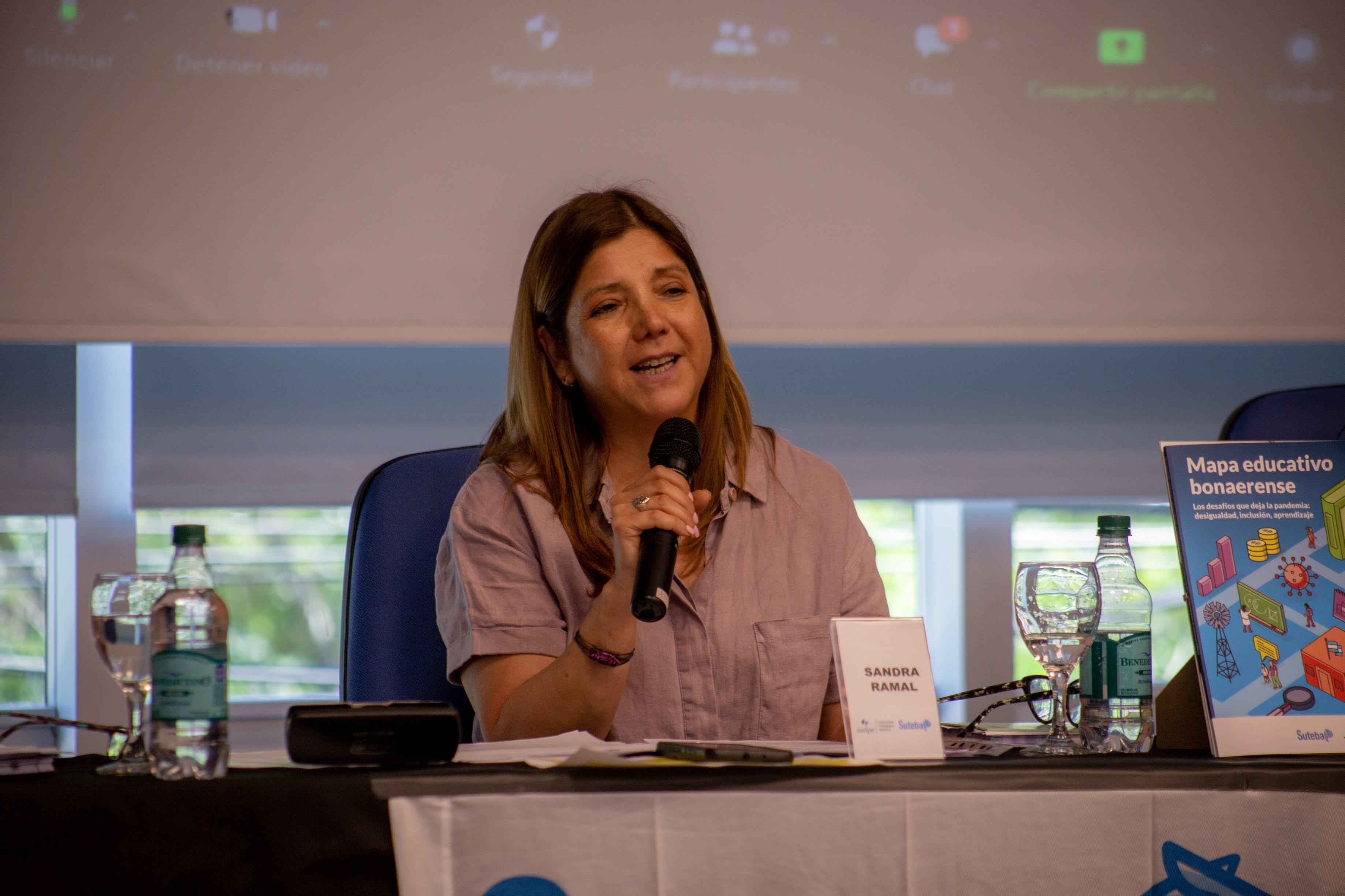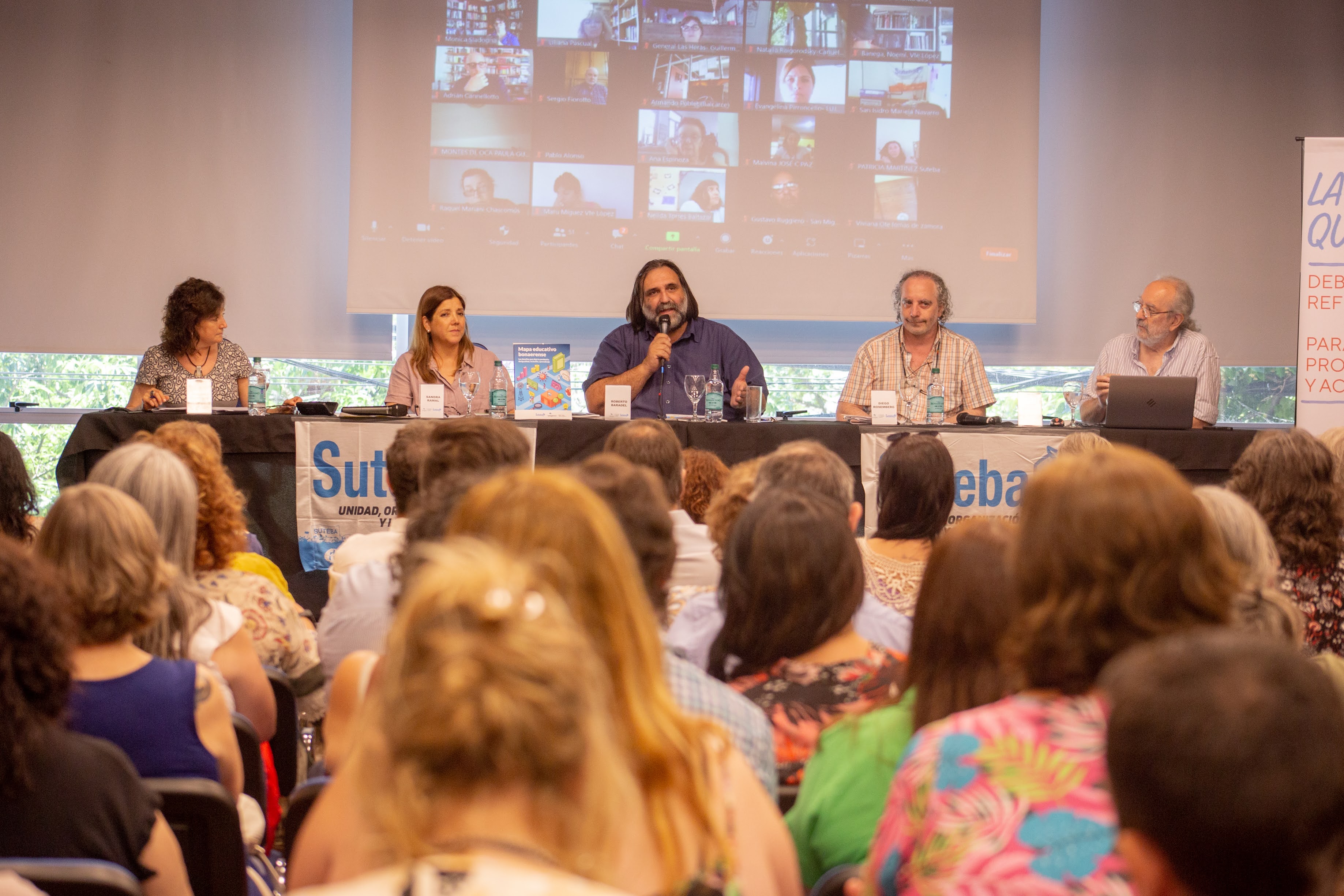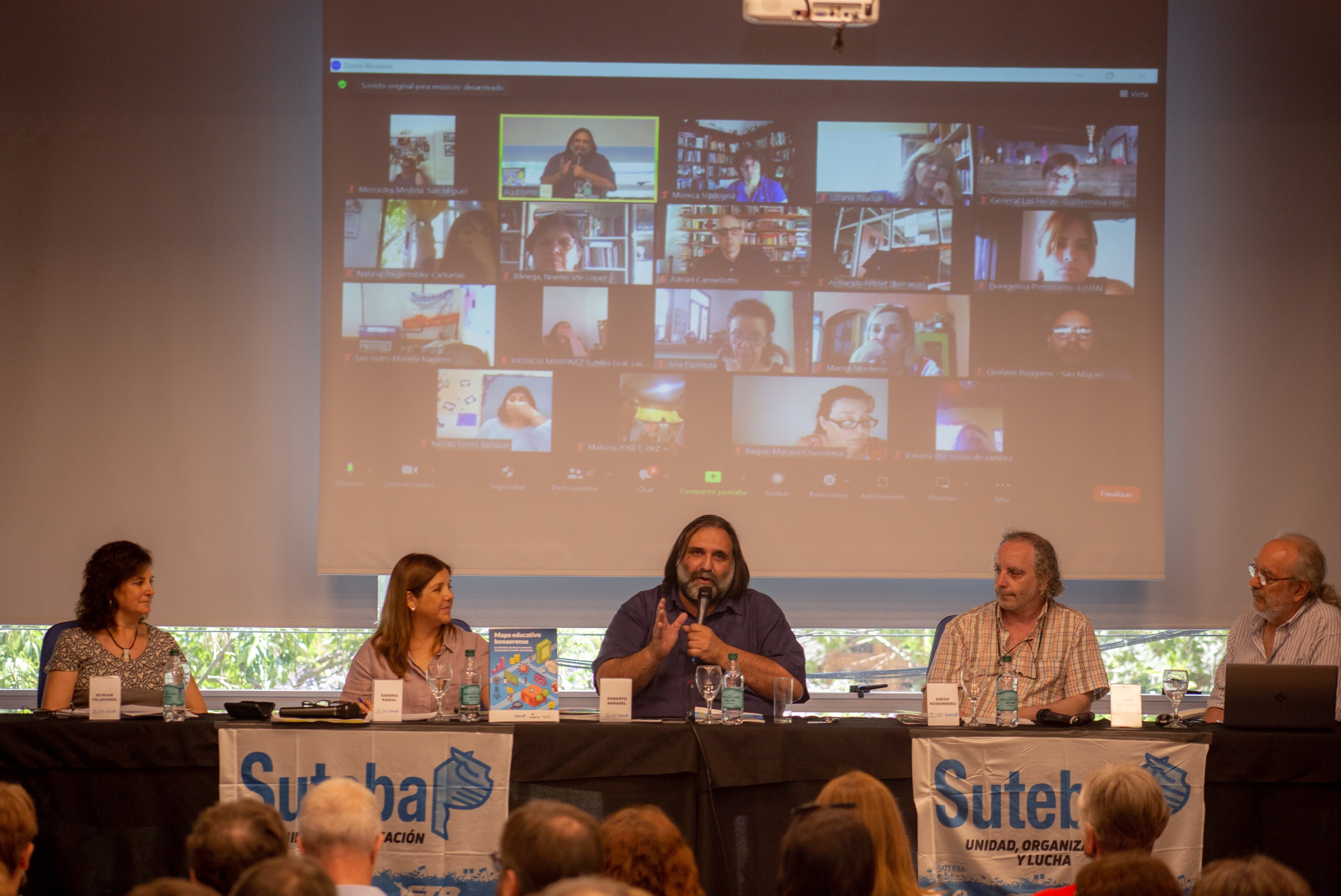 Sandra Ramal, Secretaria de Educación del SUTEBA, abrió el encuentro agradeciendo "la voluntad política de las instituciones que participaron para realizar este libro", mencionando en especial a Adrián Canellotto, Rector de la Unipe; Diego Rosemberg, del Equipo Editor de Unipe; y Juan Balduzzi, Profesor de Historia Social de la Educación, UNLu, integrante del equipo de la Secretaría de Educación del SUTEBA. Por el lado de nuestro Sindicato, valoró también la participación de Roberto Baradel, Secretario General; de María Laura Torre y Silvia Almazán, Secretarias Generales Adjuntas; y de Florencia Riccheri y Marta Suárez, de la Secretaría de Educación.