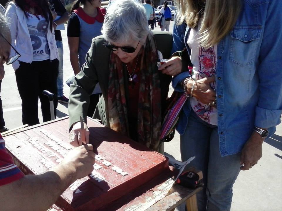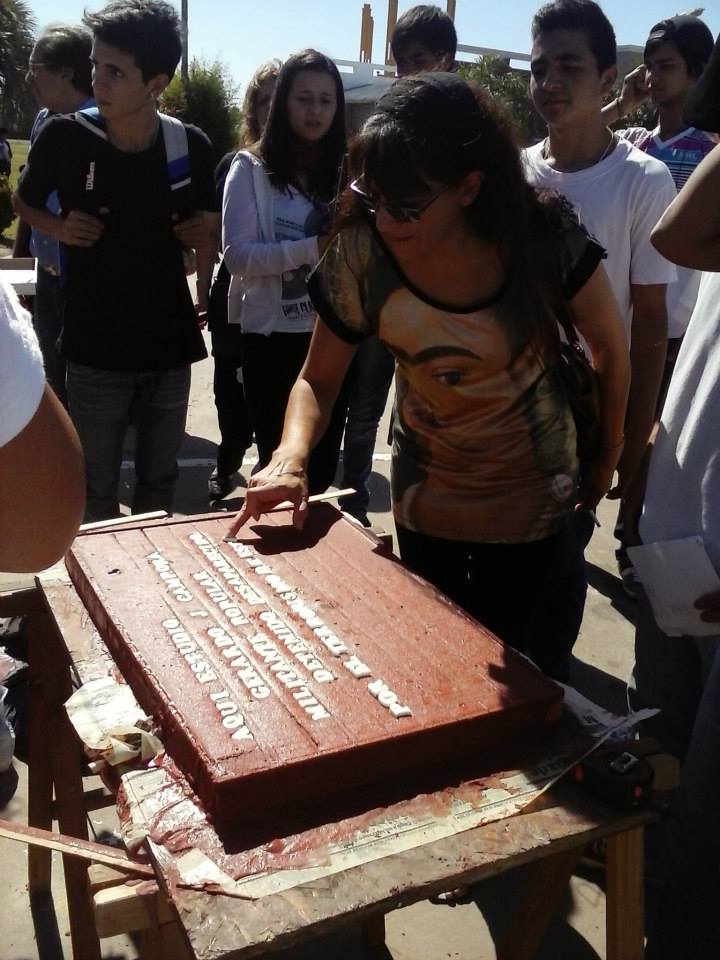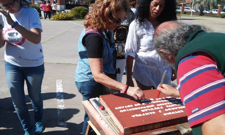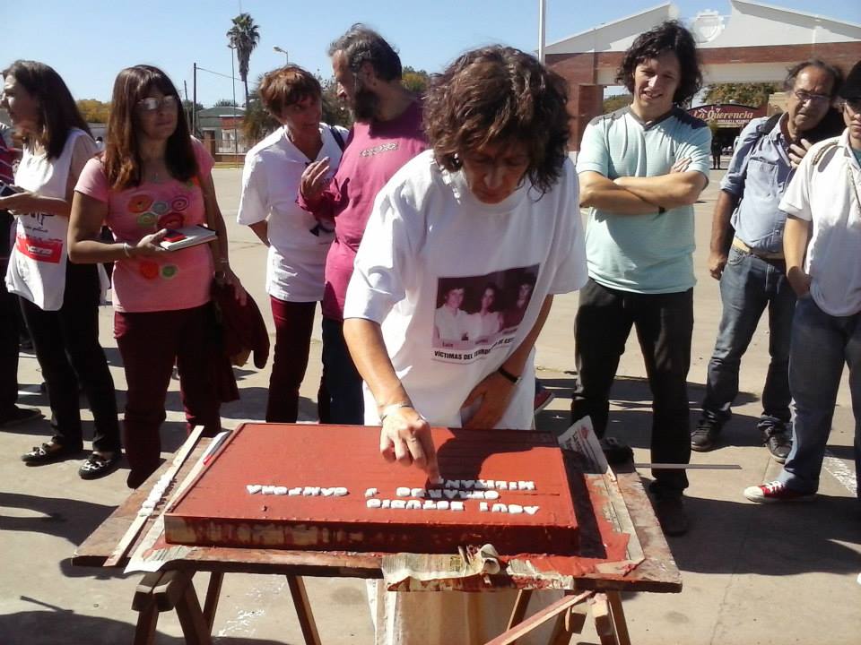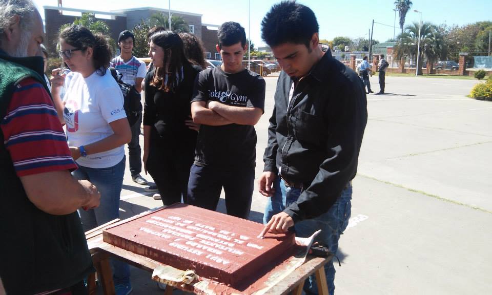 Se confeccionó en el transcurso de la jornada la primera baldosa recordando a uno de los ex-alumnos del Colegio Don Bosco desaparecidos en 1977, Gerardo Cámpora. Resta la construcción que se hará próximamente de la baldosa de Carlos Farayi para luego proceder a la colocación de ambas. Estuvieron presentes los familiares de los detenidos desaparecidos: Oscar Farayi y las hermanas de Gerardo Cámpora.