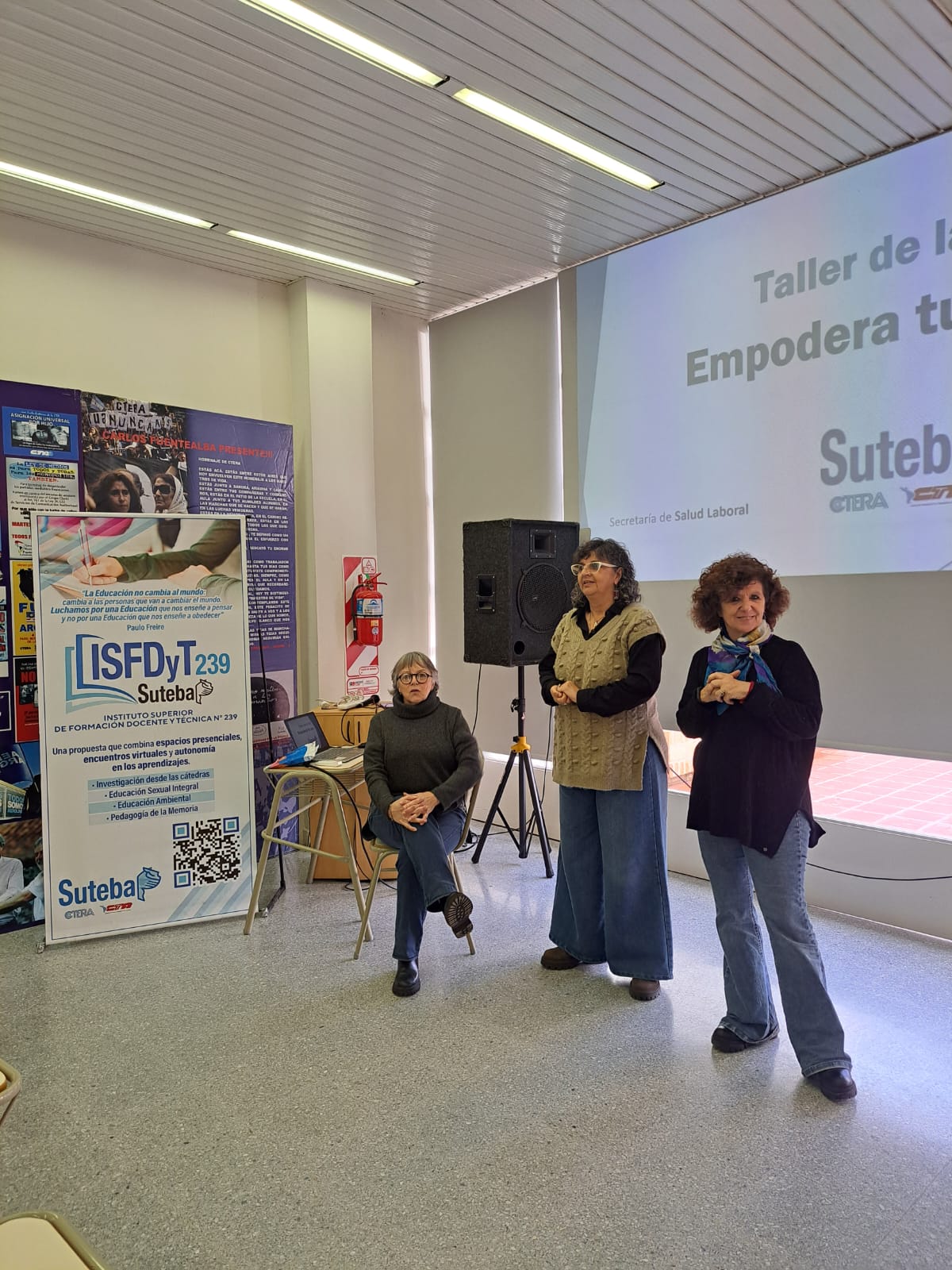 En el marco de las actividades que realiza el SUTEBA con el objetivo de formar a lxs Estudiantes de los Profesorados y futurxs Docentes; se realizó un Taller de la Voz en el ISFDyT para promover actividades de prevención.