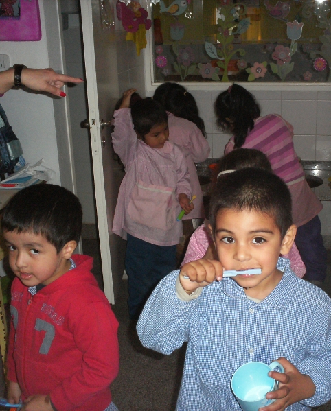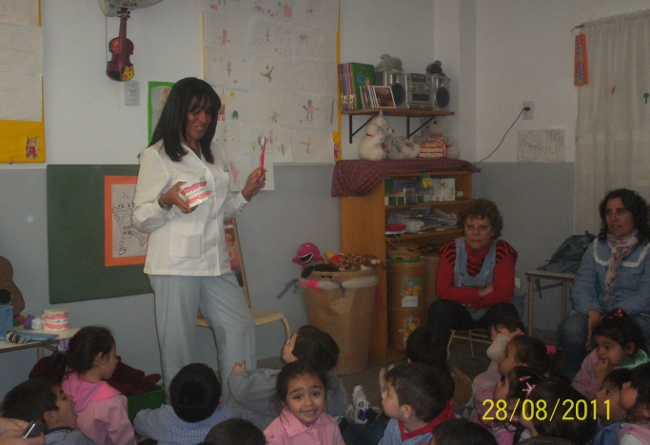 La actividad comenzó con una charla sobre prevención de la salud bucal, ilustrando el taller con láminas y un macromodelo enseñando las técnicas de cepillado, resaltando los momentos en que deben hacerlo. Luego, el equipo de SUTEBA conversó con los niños sobre los alimentos que deben consumir para fortalecer la dentición, poniendo el acento en los que no deben comer, porque perjudica los dientes. Cabe destacar este punto, dado que los niños que asistieron están en edad de recambio de los dientes y es sumamente importante mantenerlos sanos.