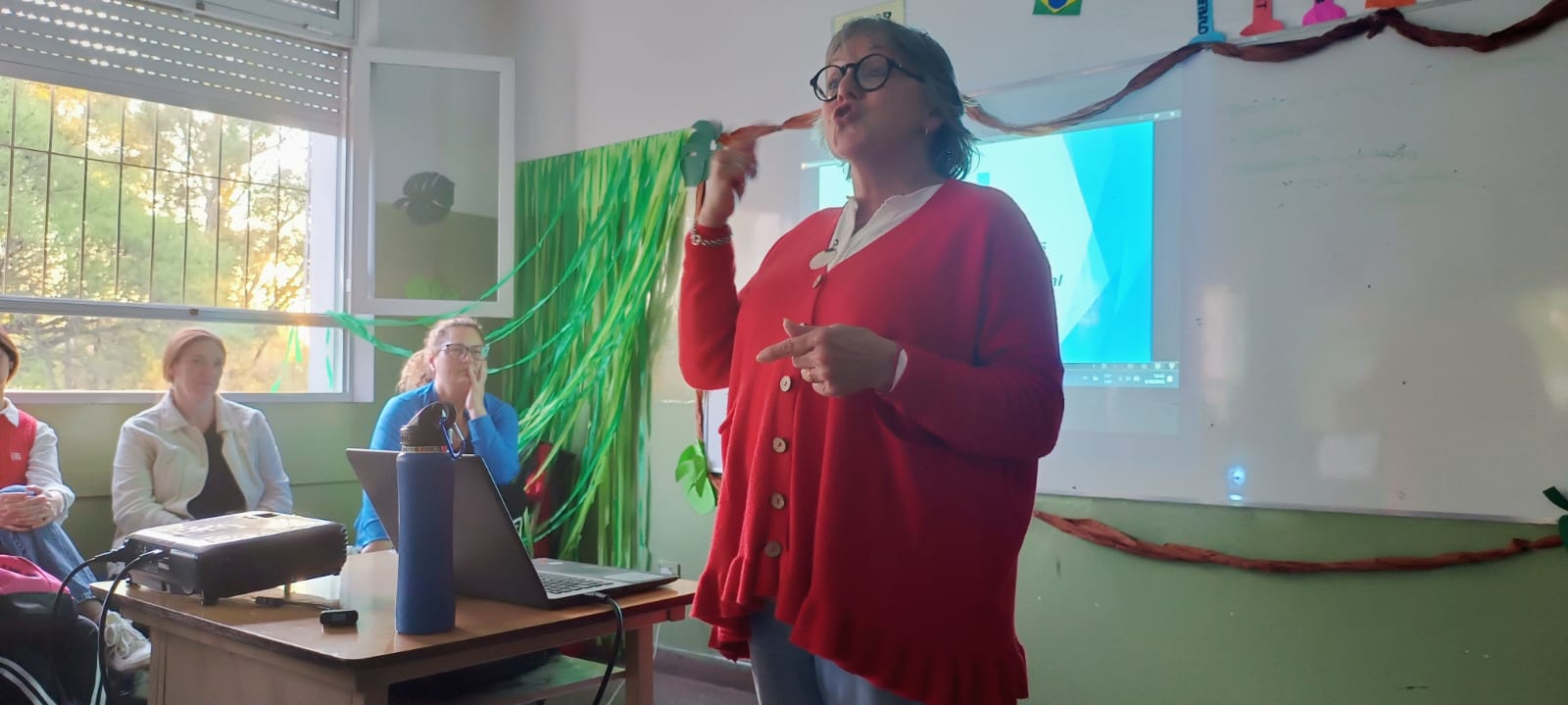 Posteriormente, se explicó la fisiología de la fonación con la respiración, la resonancia, la coordinación fonorespiratoria y la fonoarticulatoria. Asimismo, se informó sobre las posibles dificultades que pueden aparecer en la voz y su detección, se dieron pautas de higiene vocal y del manejo de la voz en el aula, en espacios amplios y/o abiertos y con mucho ruido, recreos, etc.