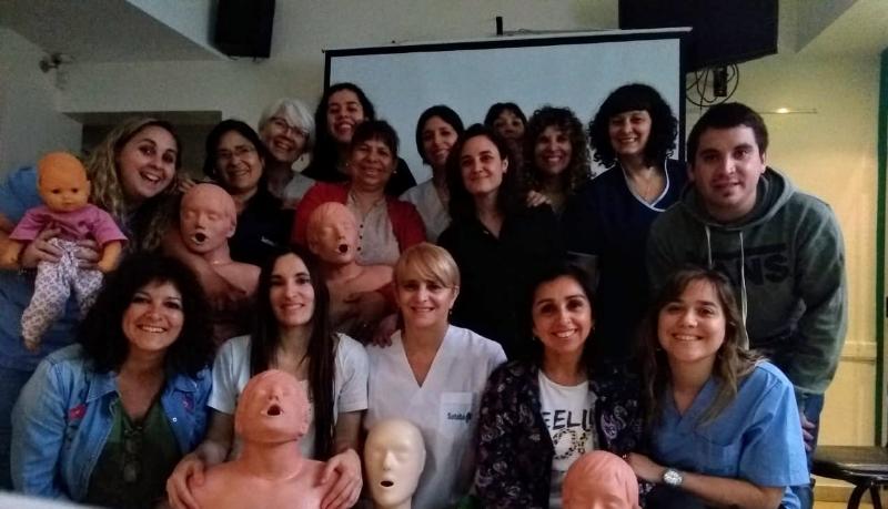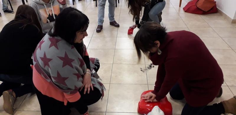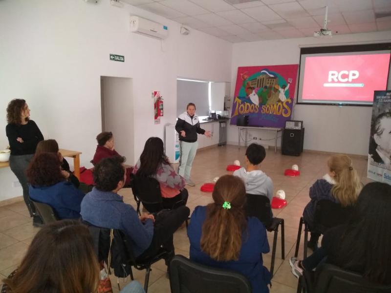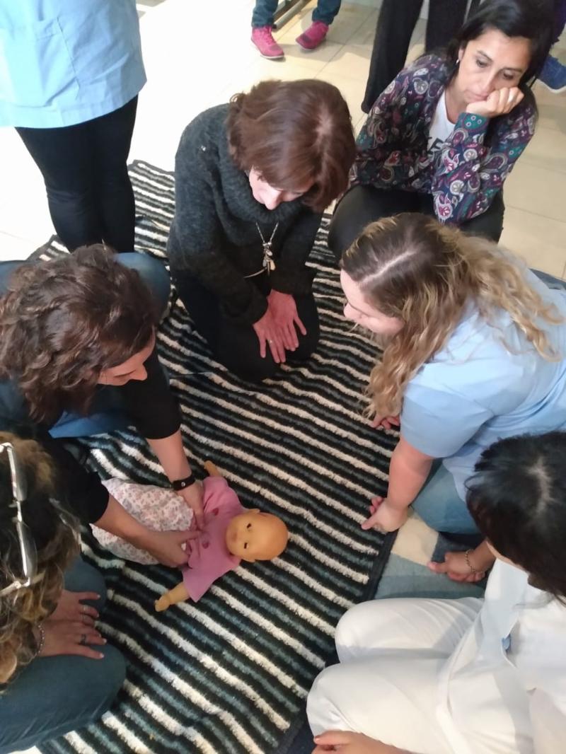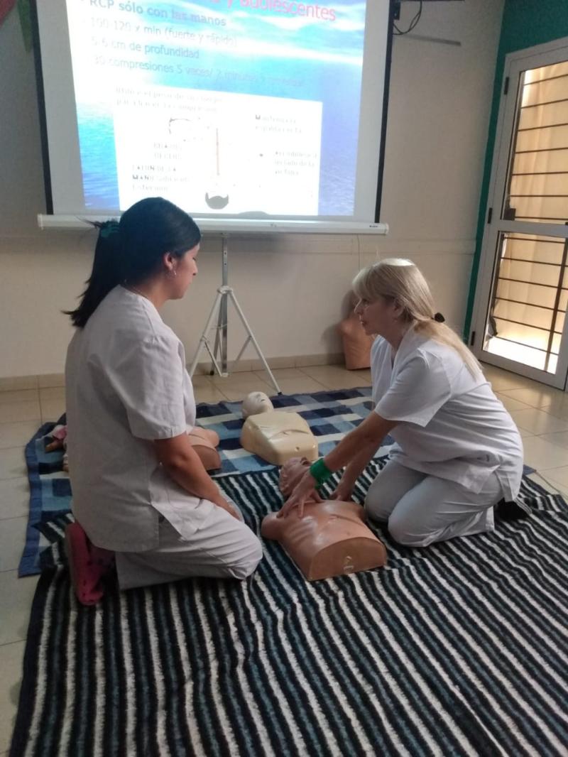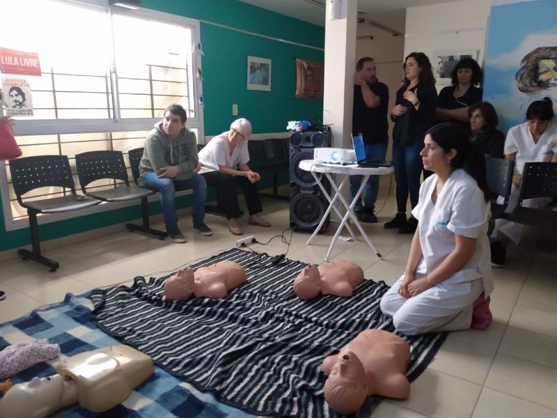 Por último, el 4 de octubre, se realizó la jornada de capacitación en RCP en el Centro de Salud "Eva Perón" de Mar del Plata. En ella se realizó una proyección de videos sobre muerte súbita por paro cardiorrespiratorio y una charla para concienciar sobre la importancia de conocer y poner en práctica las técnicas de RCP ante una eventual situación en el área del Centro de Salud. La experiencia fue muy productiva, ya que cada participante pudo expresar sus dudas sobre la implementación de la técnica y practicar con muñecos, bajo la supervisión de la Lic. Pita, Enfermera y Médicxs.
