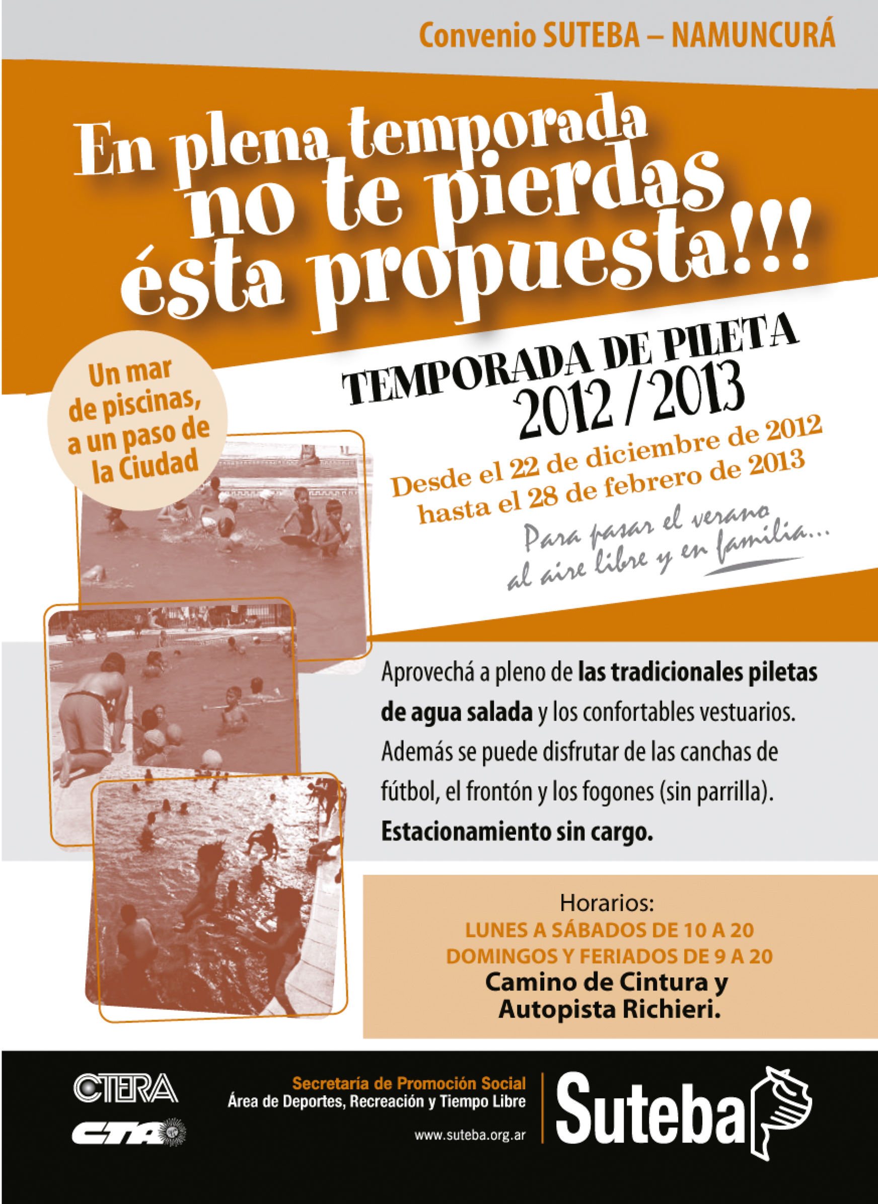 Para los afiliados de SUTEBA, Namuncurá funcionará desde el 22 de diciembre hasta el 28 de febrero.
