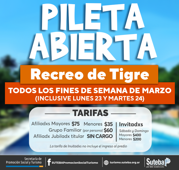 TARIFAS: Temporada de Pileta 2020